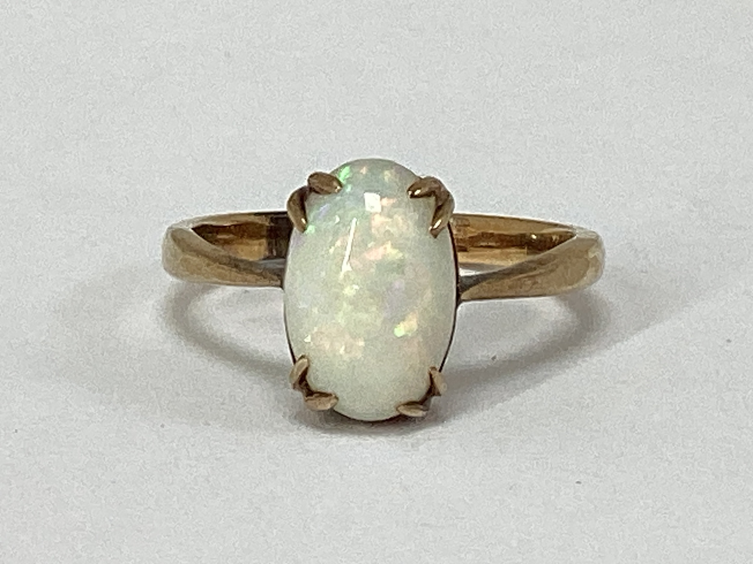 An Opal Single Stone Dress Ring, oval cabochon claw set, stamped "9" (finger size J).