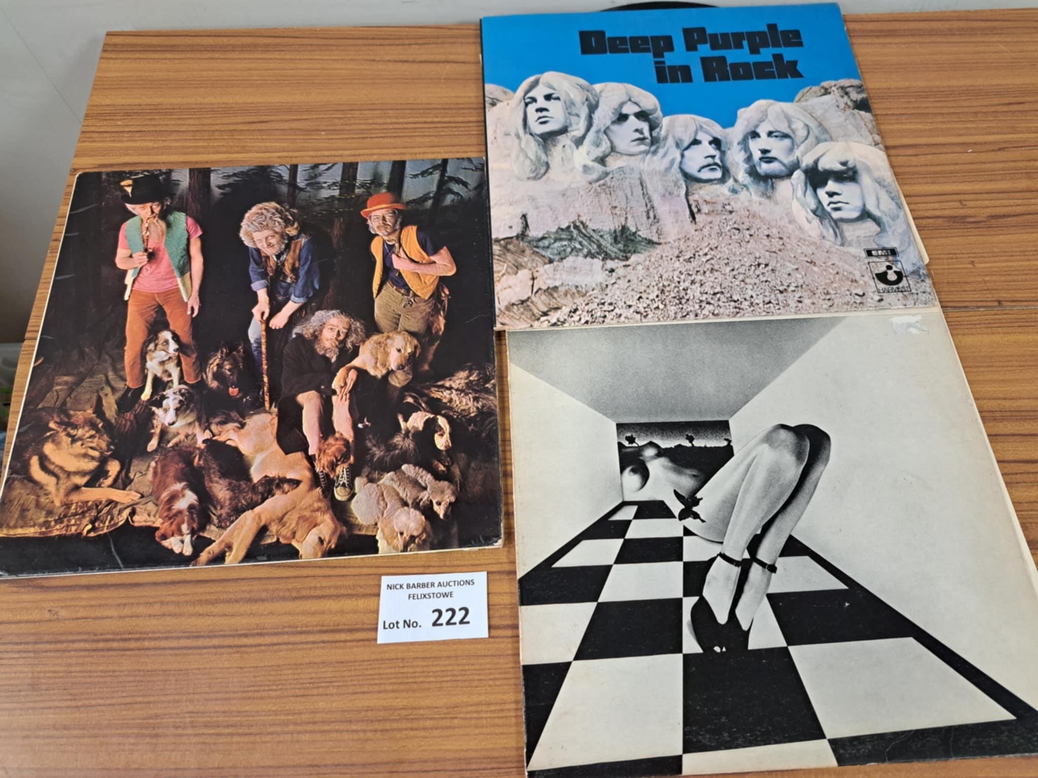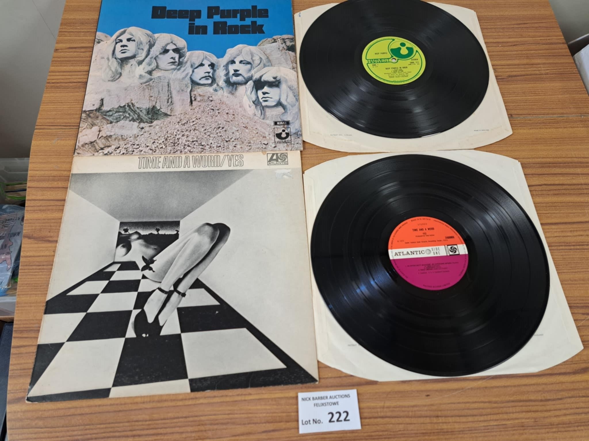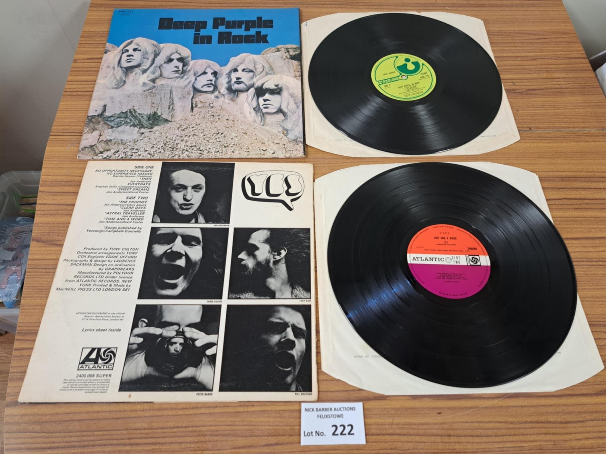 Records; Prog: 3x LPs Jethro Tull/This Was (Island Block) Yes/Time and a Word (red/plum) and Deep Purple in Rock; some minor blemishes with seemingly Excellent condition vinyls.
