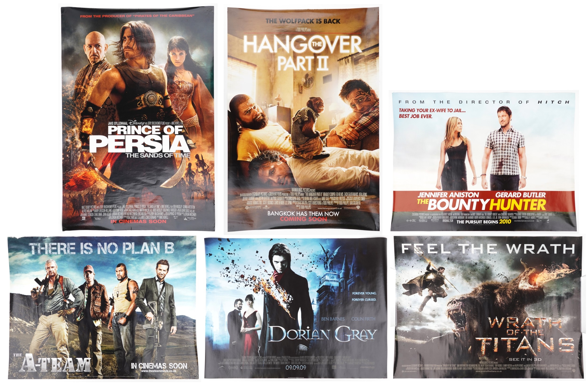 Six film release posters, comprising Hangover Part 2, A Team, Dorian Grey, The Bounty Hunter, Wrath of the Titans and Prince of Persia, 101cm x 68.5cm.