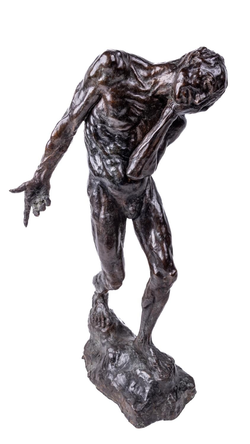 "Judas," bronze, signed, depicting forlorn figure in nude pose with head hanging on naturalistic base, approx. 61cms (24") high. (1)