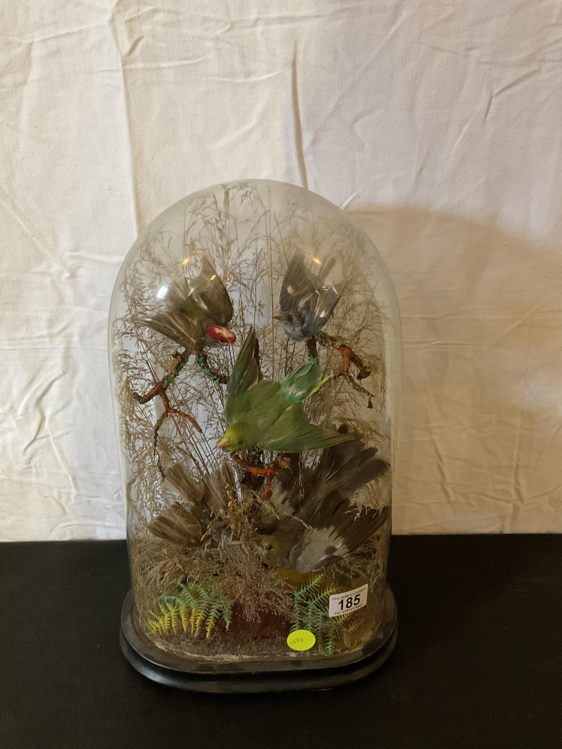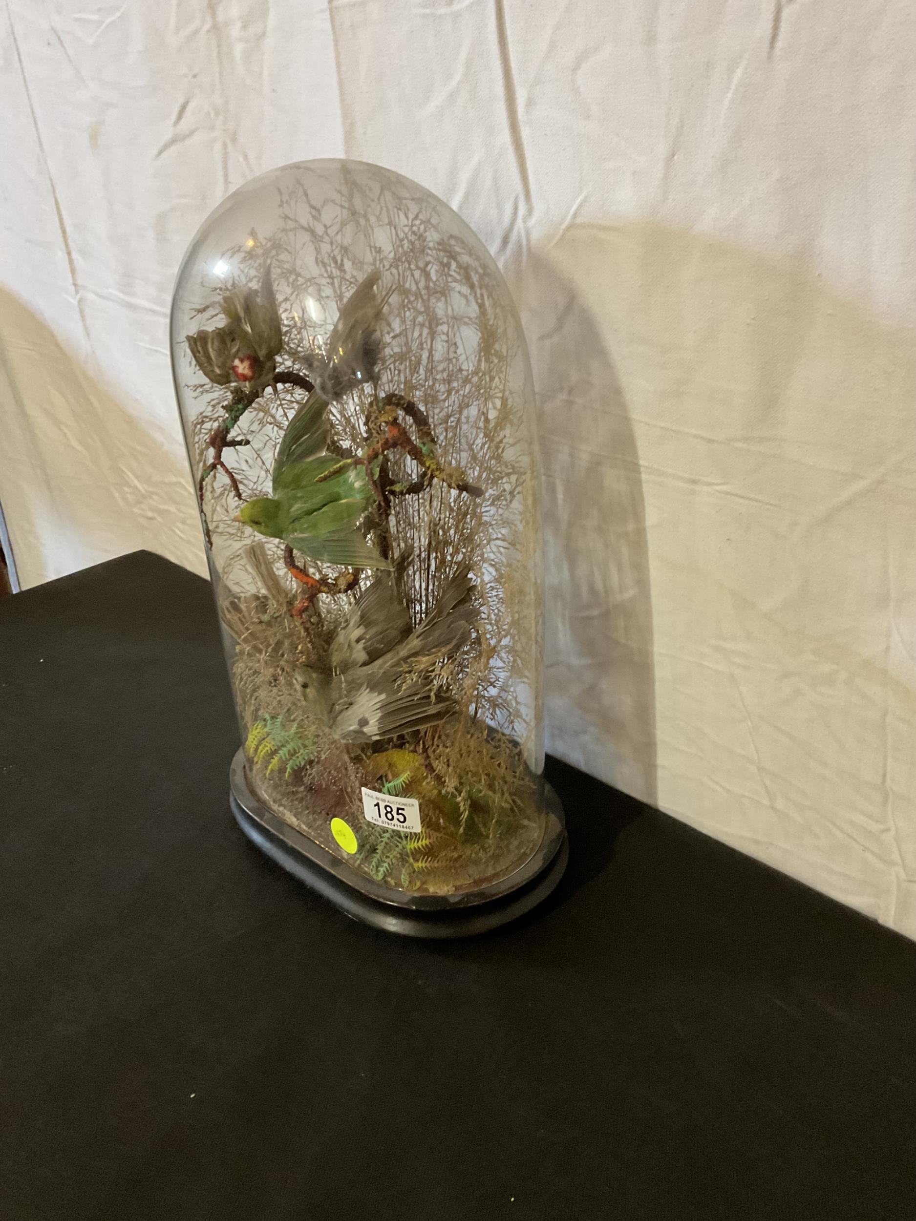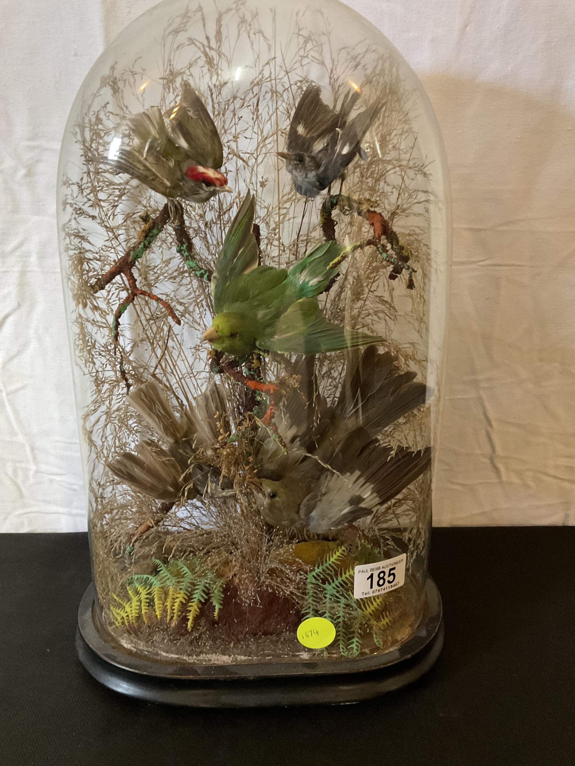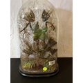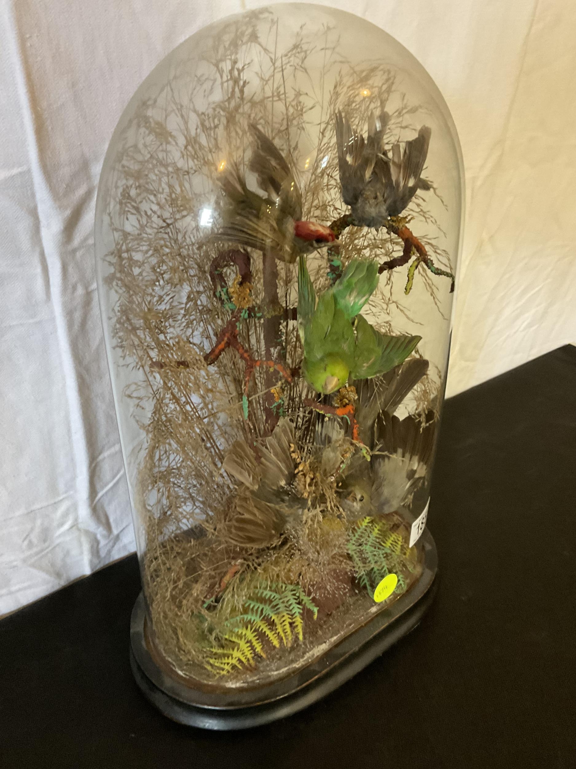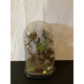 VICTORIAN TAXIDERMY BIRDS UNDER GLASS DOME H 18"