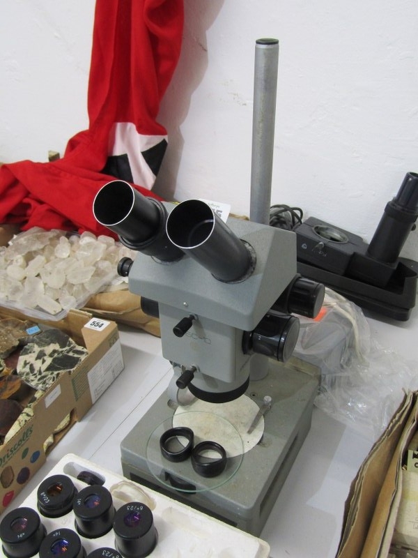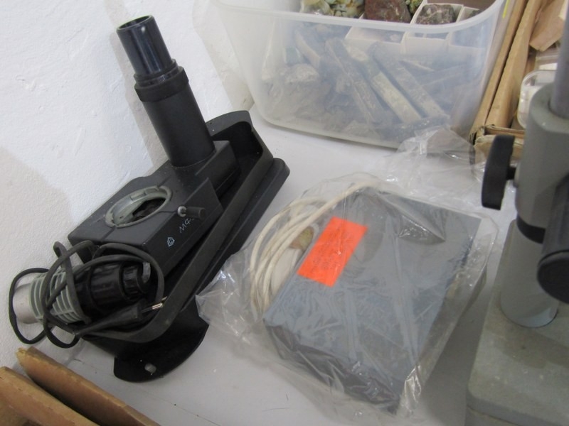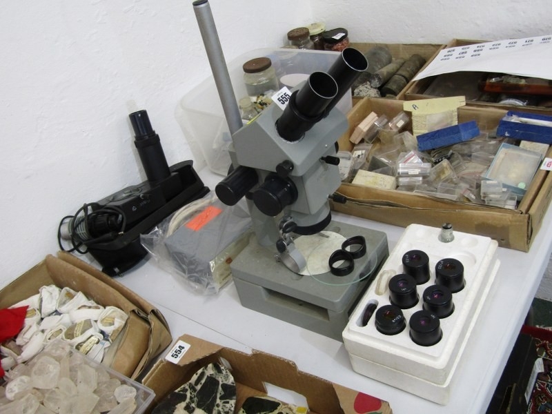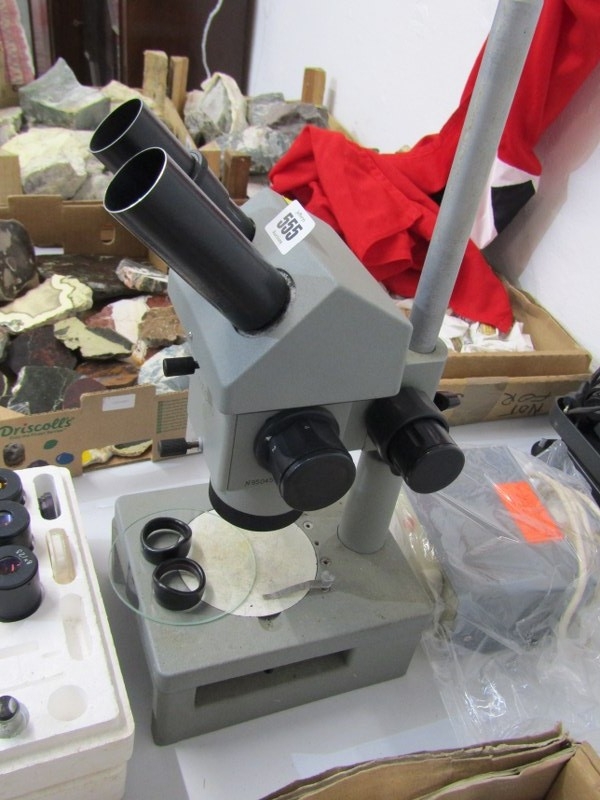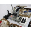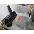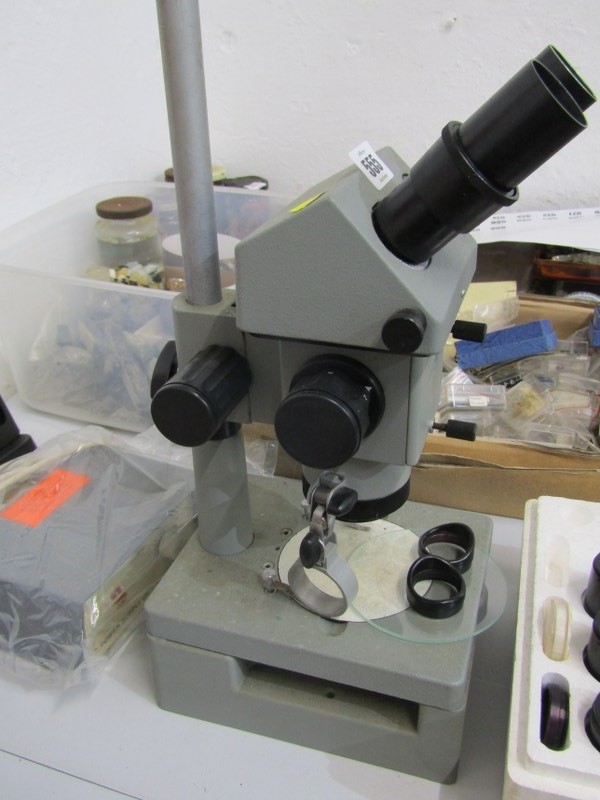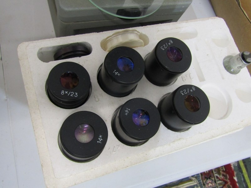 TABLE MICROSCOPE, a table microscope, together with various lenses and other equipment, 46cm height