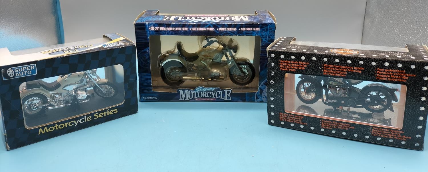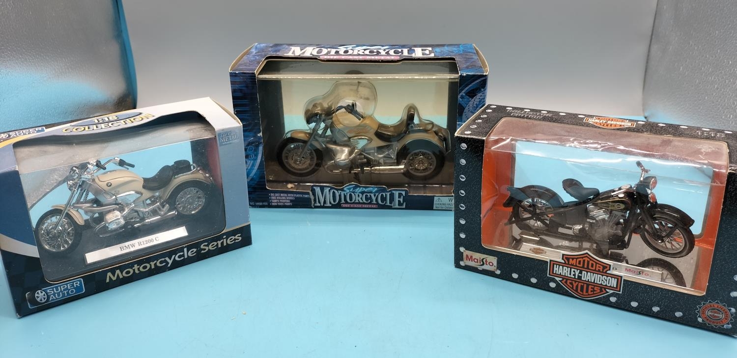 3 x Boxed Die-Cast Motorcycles to include Harley Davidson.