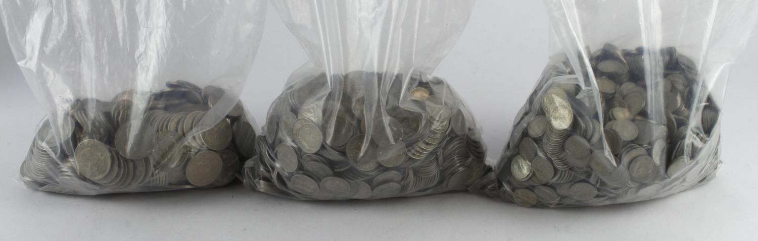 GB Predecimal Cupro-Nickel, bags of 7.8KG Sixpences, 6.8KG Shillings,and 5.3KG Halfcrowns. 19.9KG total.