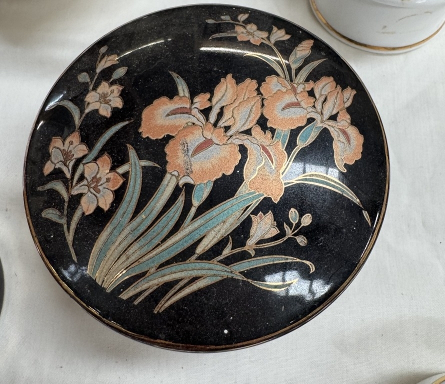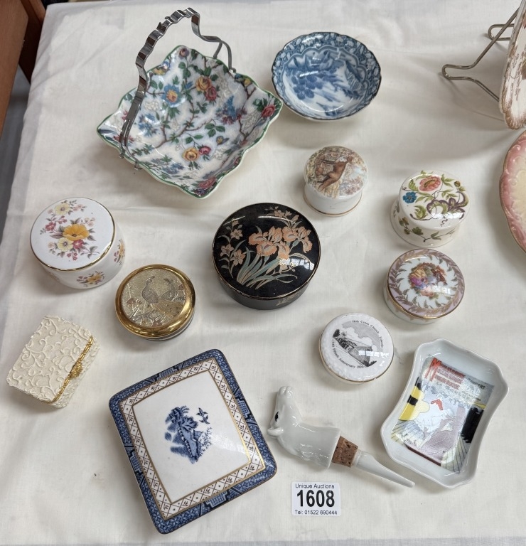 A selection of vintage ceramic lidded trinket pots
