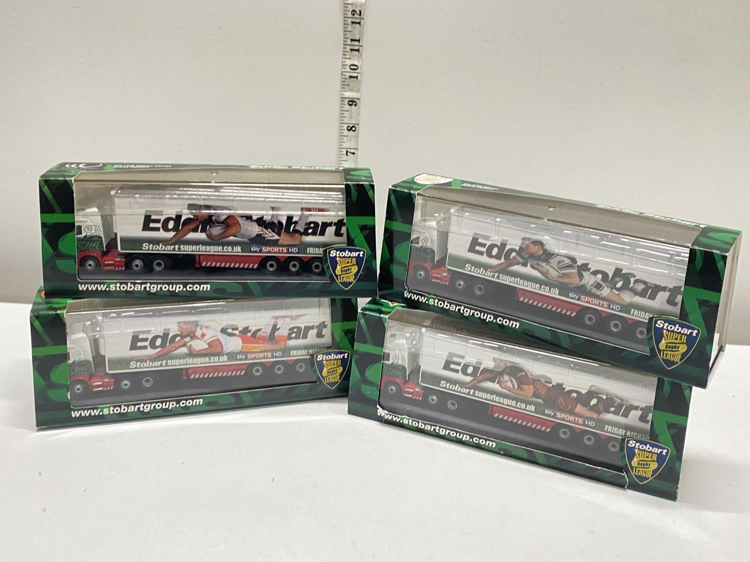 Four Stobart boxed Rugby League themed die-cast truck models