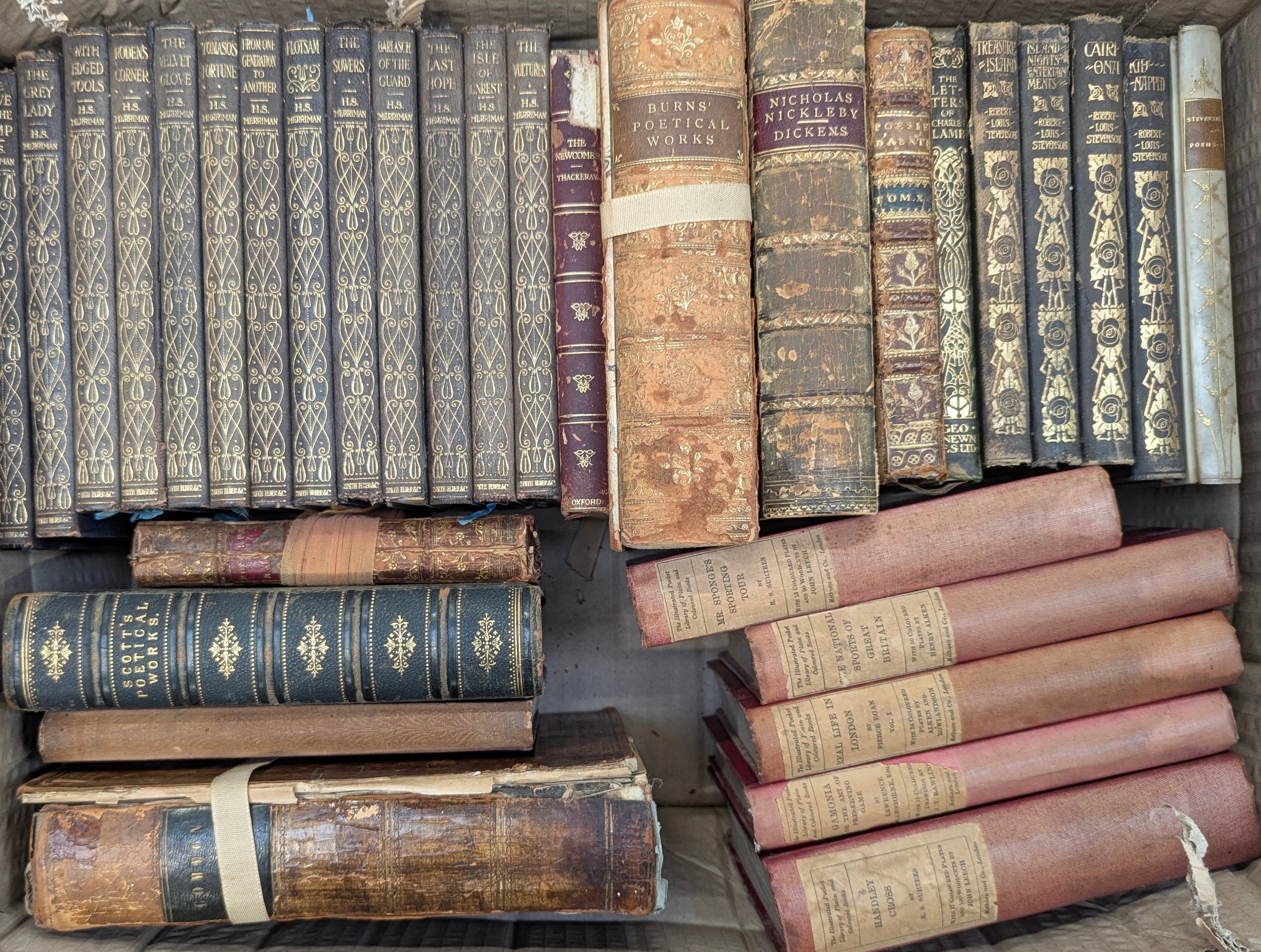 BIINDINGS and VINTAGE EDITIONS. c. 30 volumes including 'pocket classics' and larger items. Some boards detached. Others, sound or better.