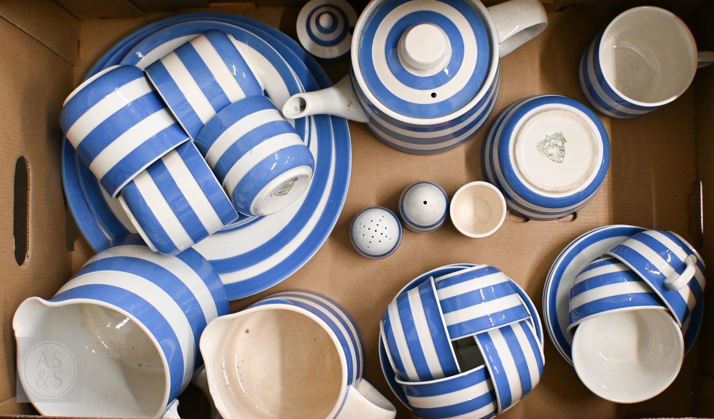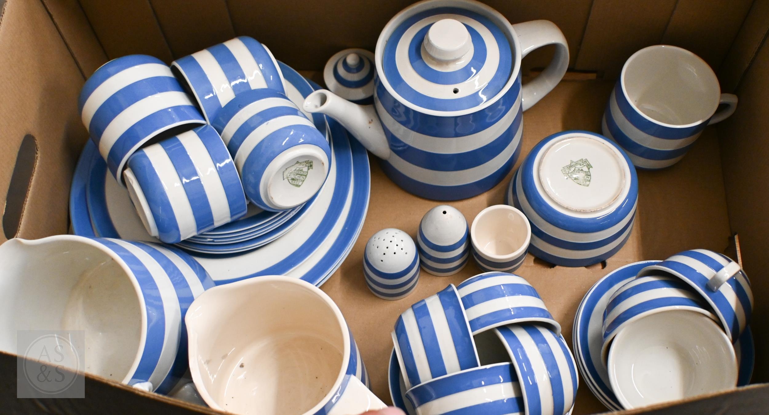 A quantity of T G Green & Co blue-striped Cornish ware (box)