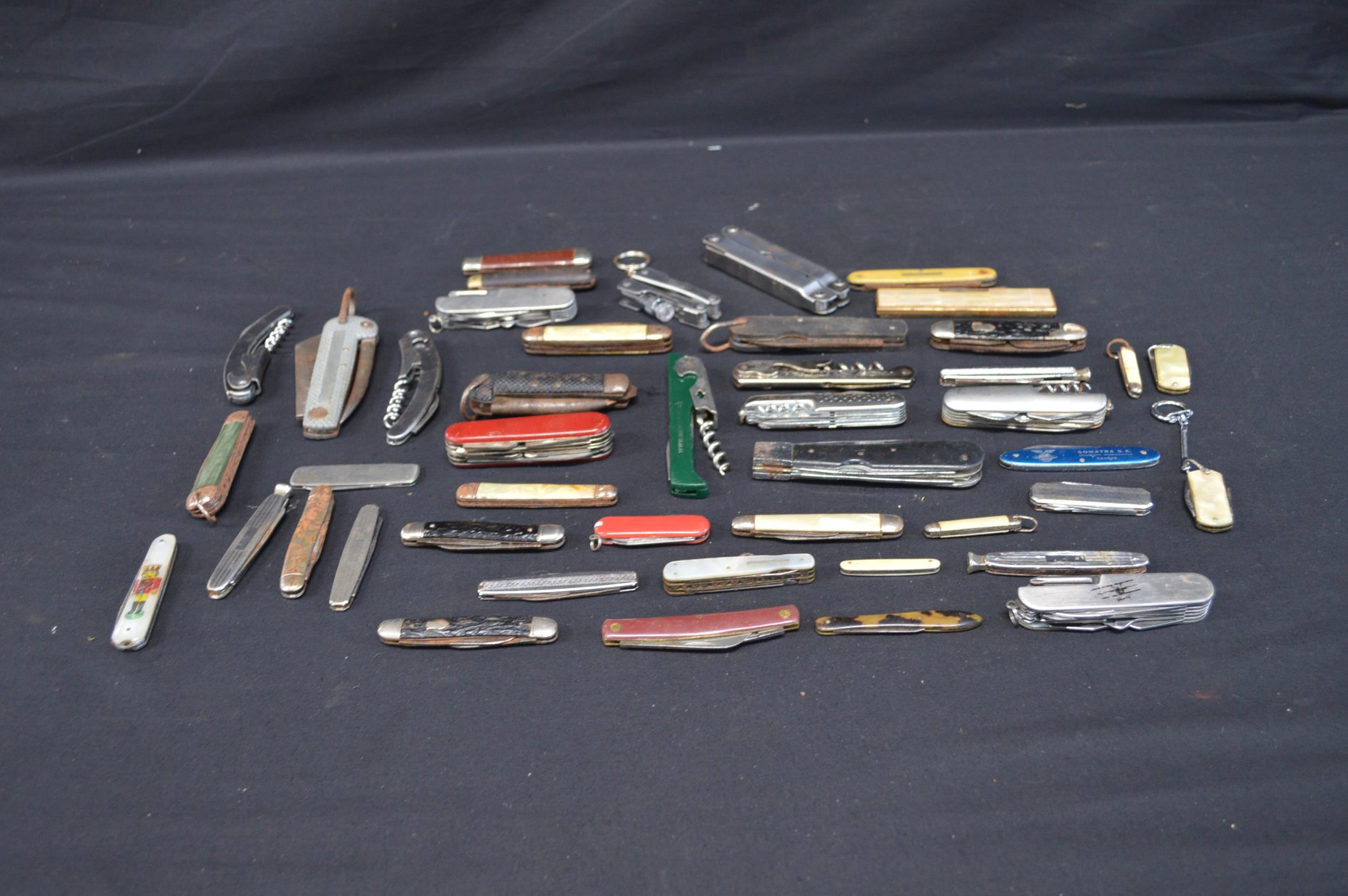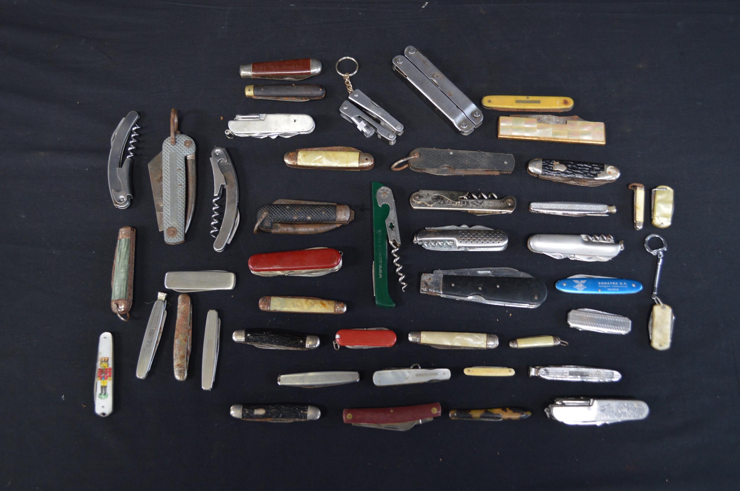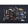 Collection of forty various folding pocket, fruit and other knives together with two pocket multi-tools and three corkscrews