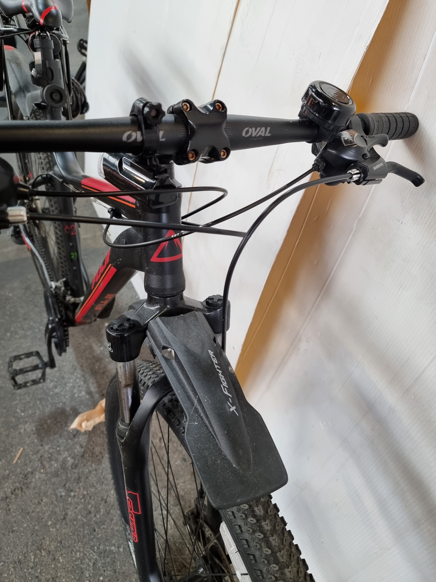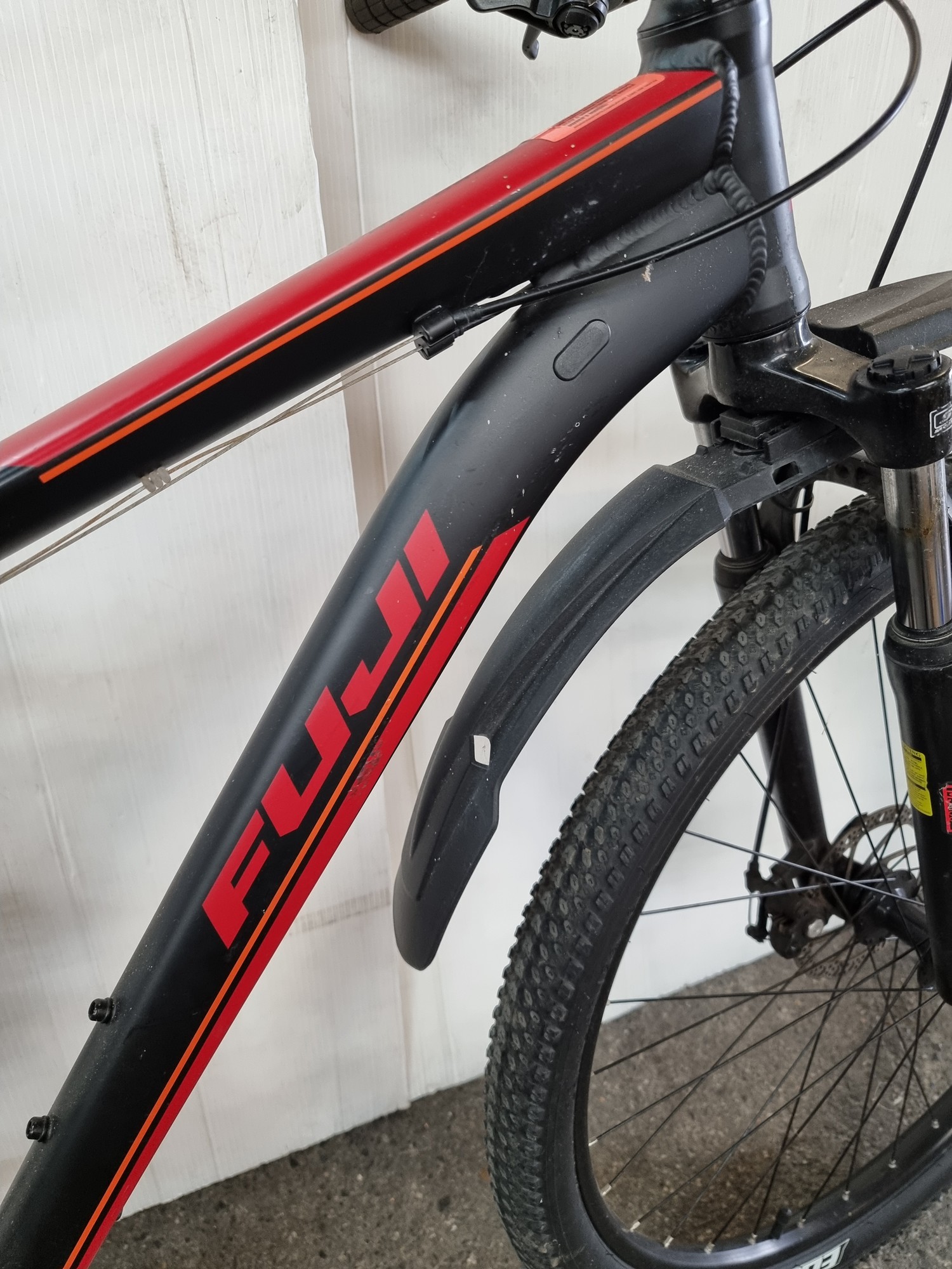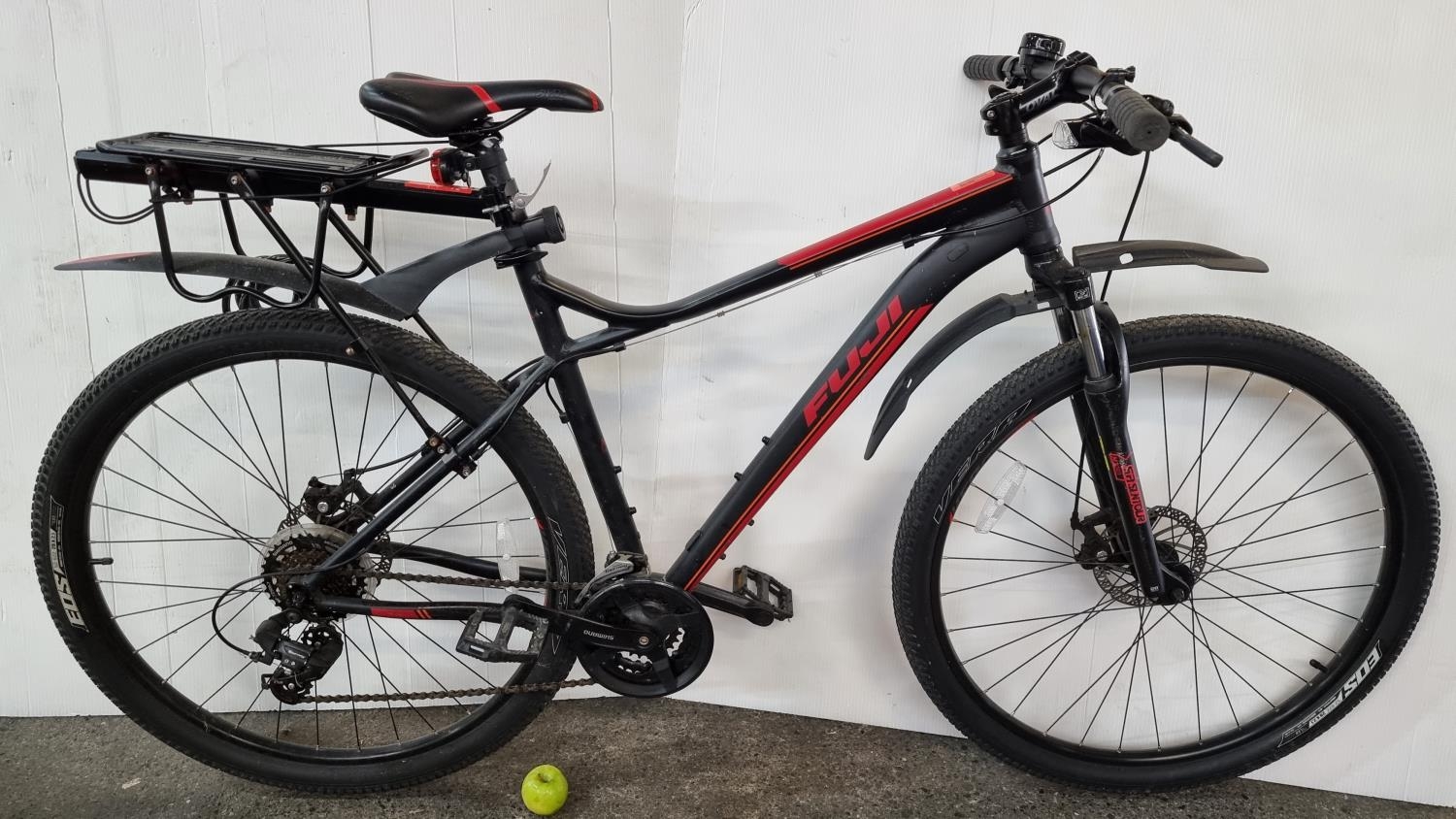 Star Lot : A Fuji Nevada 21 One.9 Hard Tail Full Suspension Mountain Bike, 2018 Black and Red Edition. `super Condition. Its a large bike and would suit a tall person. Aprox €600 new.