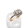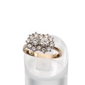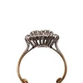 An 18ct gold (tested as 18ct) diamond cluster ring with two central diamonds, each approx 0.33ct, surrounded by twelve diamonds, each approx 0.05ct, size N, weight 4.8 grams.