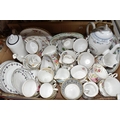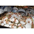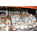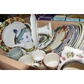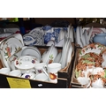 SIX BOXES OF CERAMICS to include a box of Royal Worcester 'Evesham' and 'Evesham Vale' tea and dinnerware comprising dishes, mugs, plates, souffle dish, etc, a box of blue and white ceramics to include a group of Johnson Brothers 'Danish' plates, a group of Spode 'Italian' items to include coffee pot, cream jug, dishes, etc, a box of part tea sets to include manufacturers Shelley, Royal Albert, Minton, Wedgwood, etc comprising cups, saucers coffee pots, etc, a box of part dinner sets to include manufacturers Denby for James Martin, Spode, Wedgwood, Poole, etc, an Aynsley 'Cottage Garden' cake stand, etc (6 boxes) (s.d)