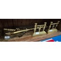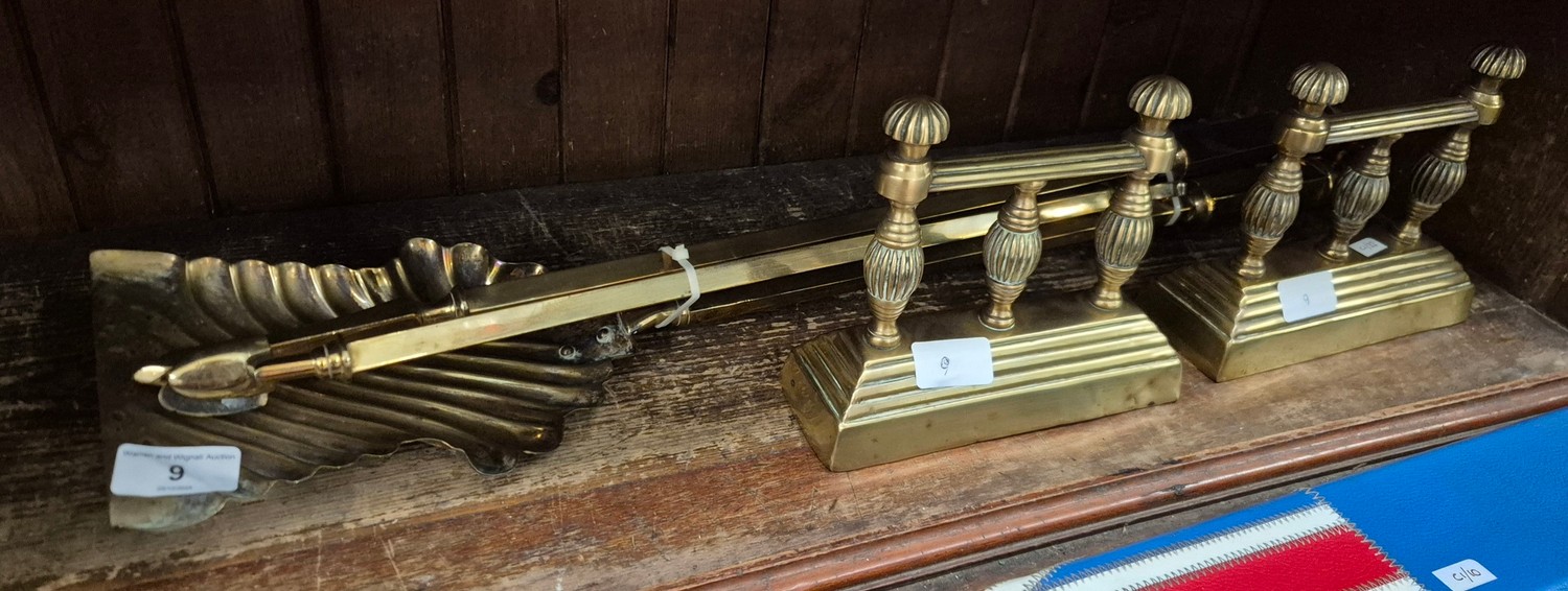 A st of 3 Victorian fire irons and a pair of brass fire dogs