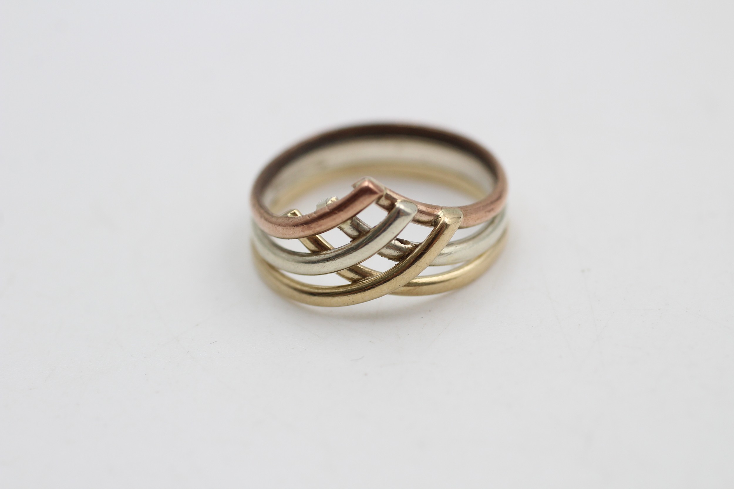9ct Yellow White & Rose Gold Vintage Crossover Wishbone Ring (3.5g) 5850