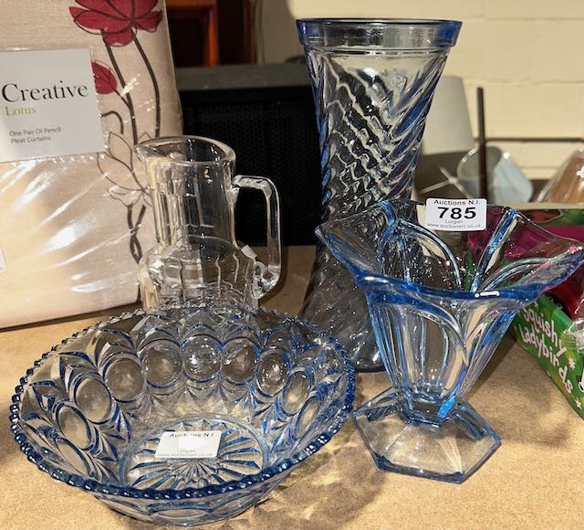 3pc Blue Glass + Cavan Crystal Jug
