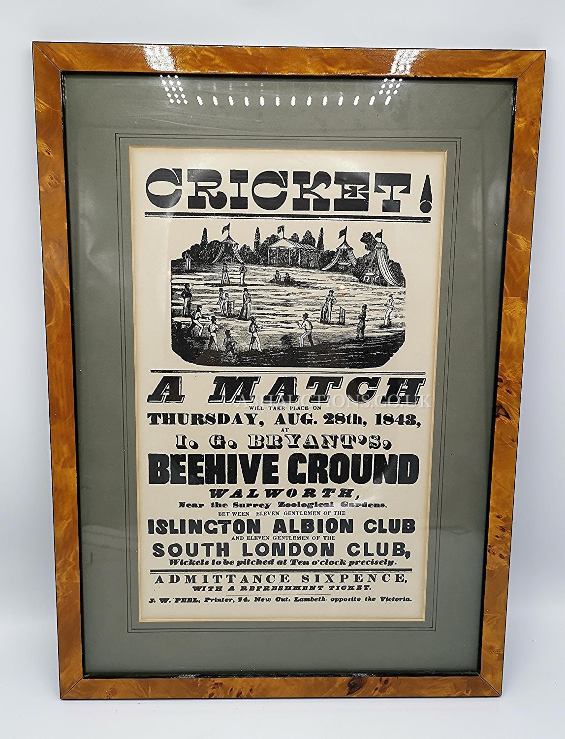 FRAMED And GLAZED CRICKET SCENE PICTURE (Please Note This Lot WILL NOT BE PACKED OR SHIPPED...PICK UP ONLY!!!)