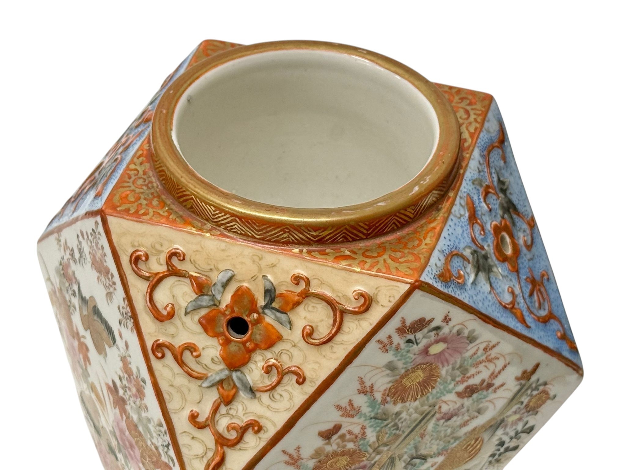 A Pair of Japanese Kutani Cubooctahedron Form Vases. Meiji Period (1868-1912) Late 19th Century. 21x21x15cm.