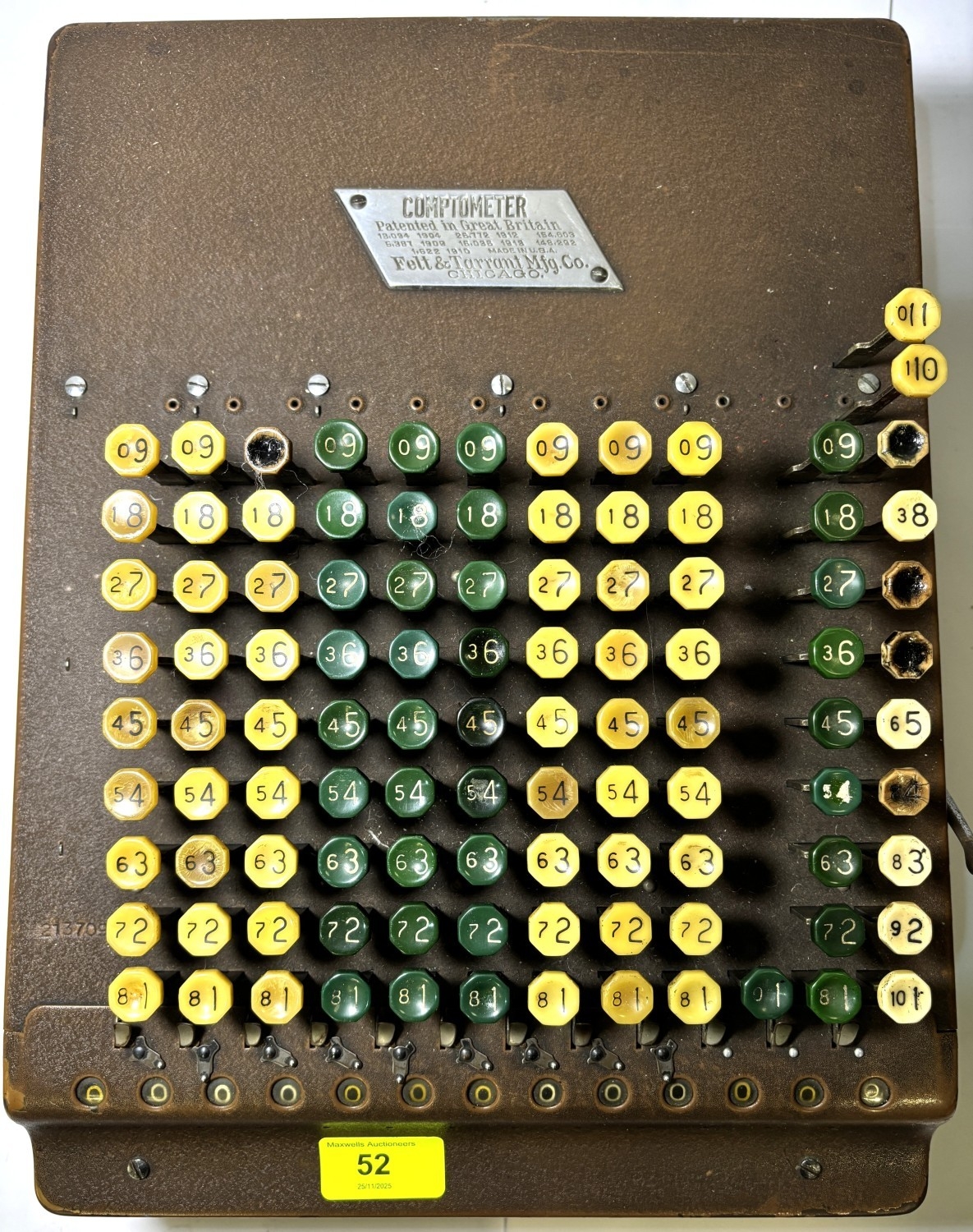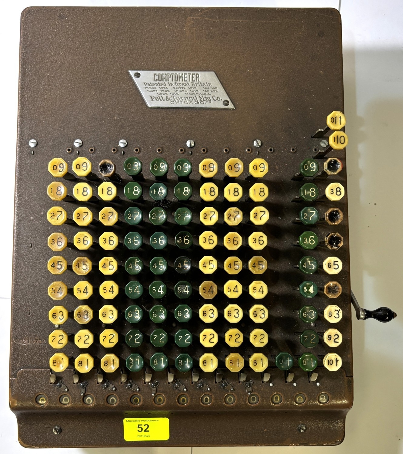 A COMPTOMETER mechanical calculator by Felt & Tarrant, CHICAGO.