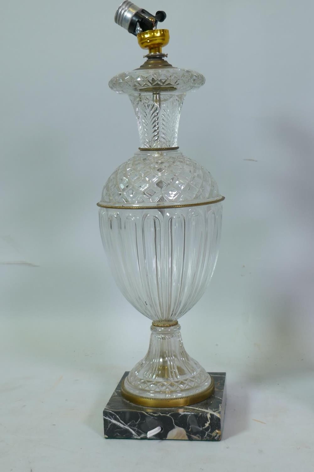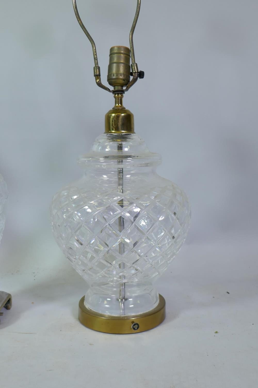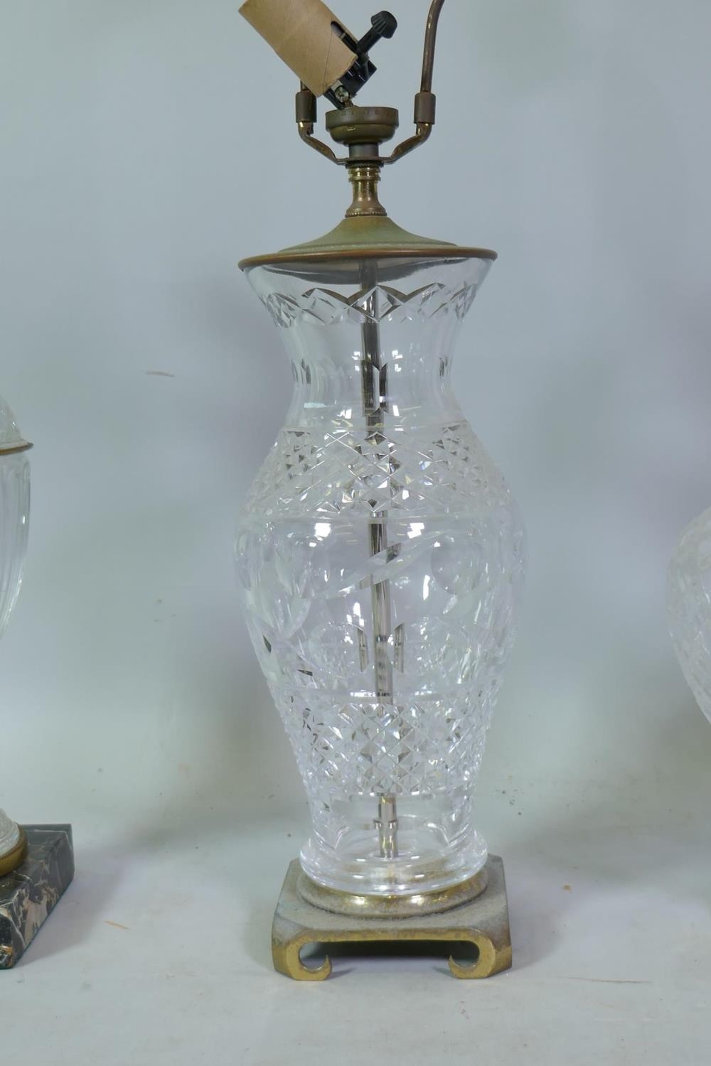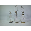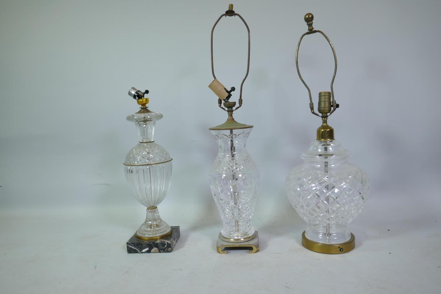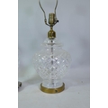 Three cut crystal glass table lamps, largest 67cm high