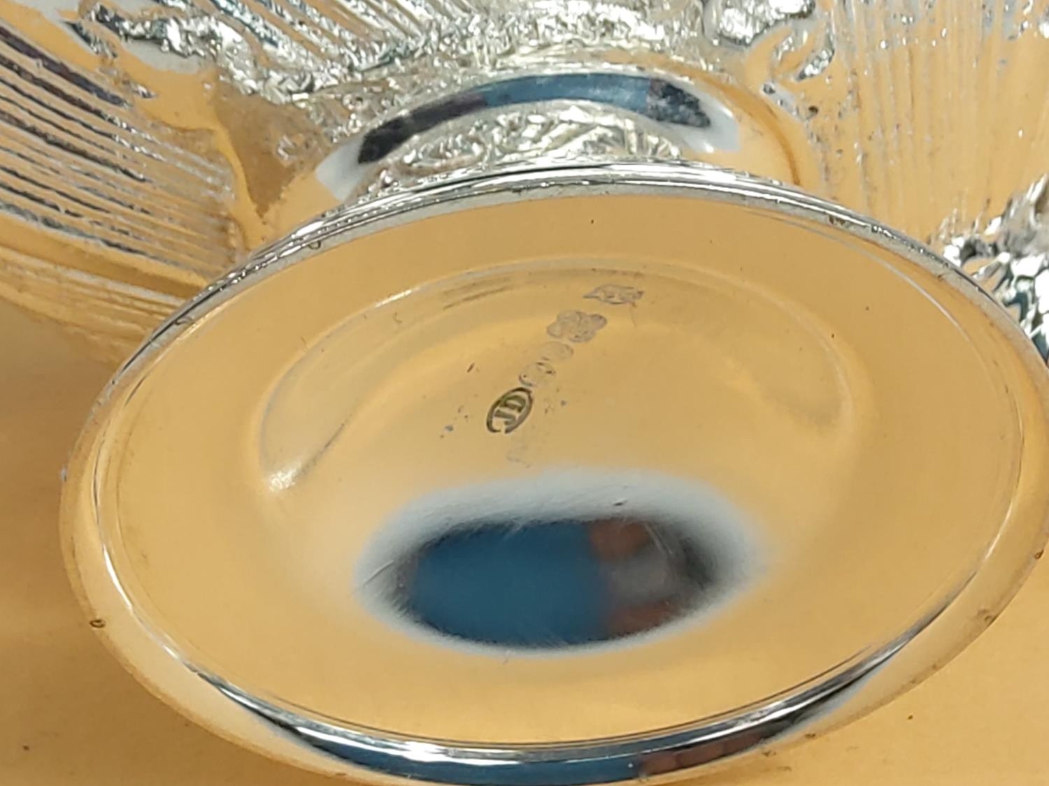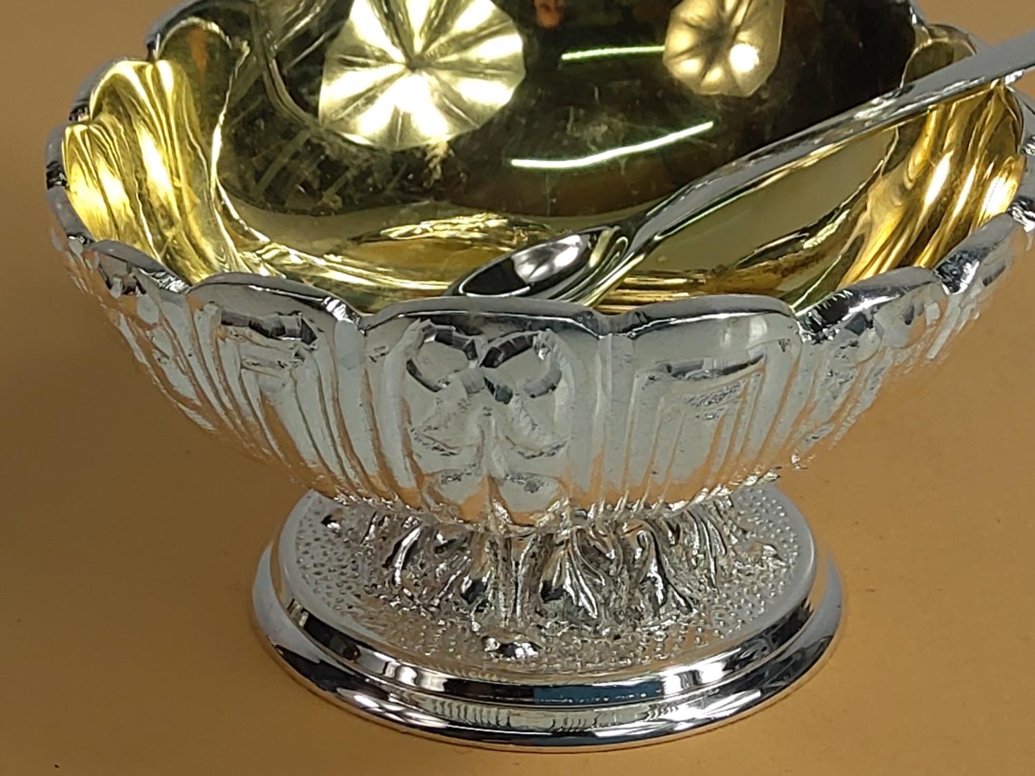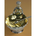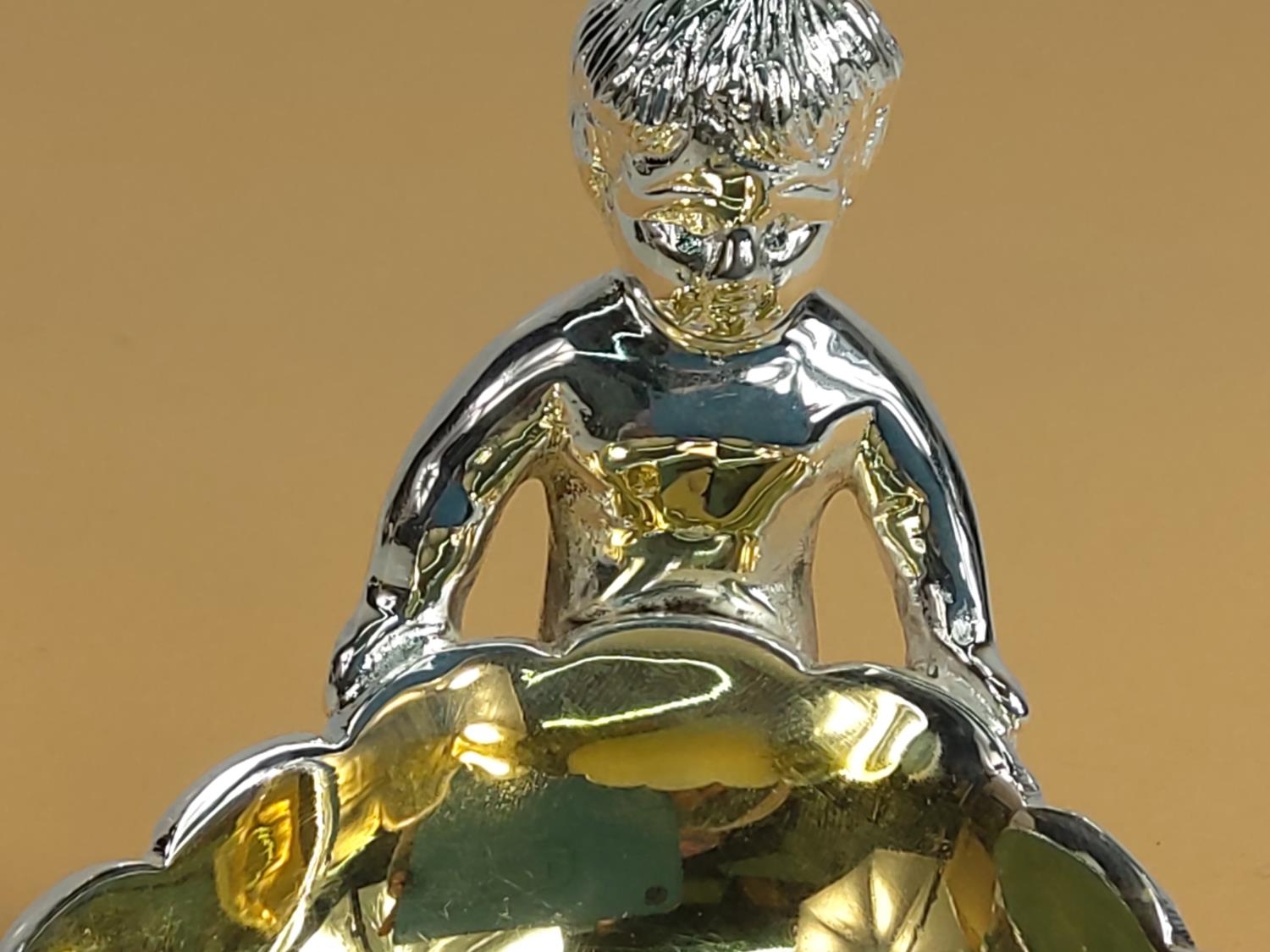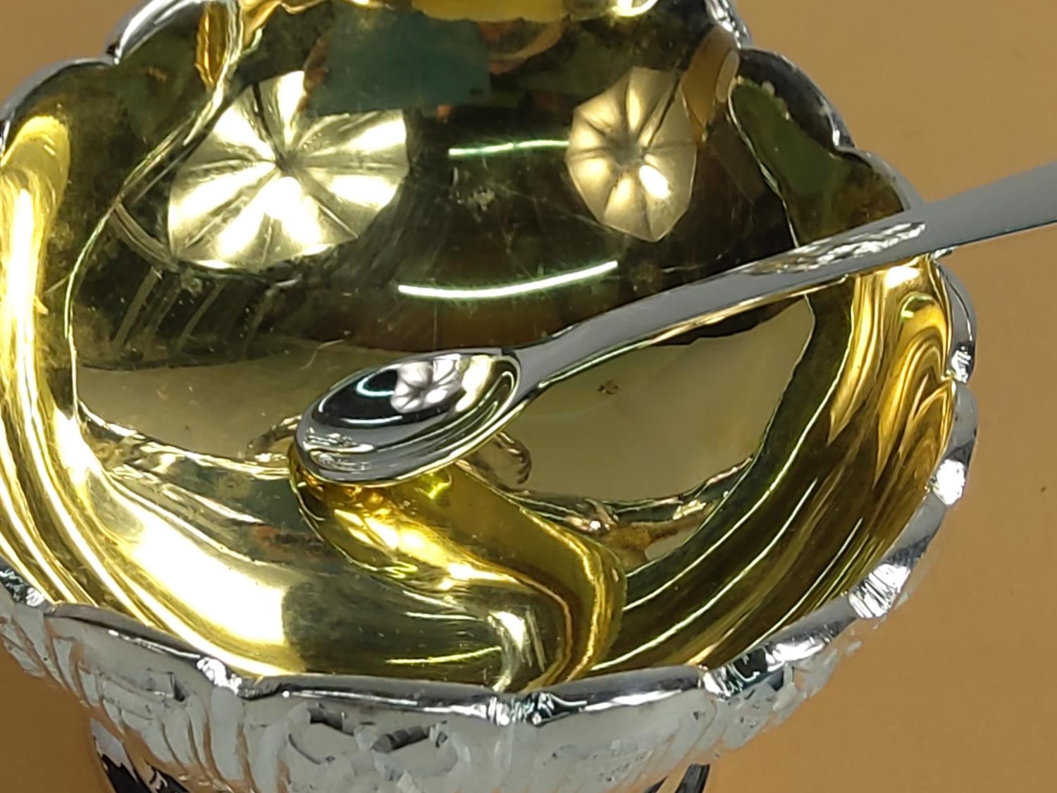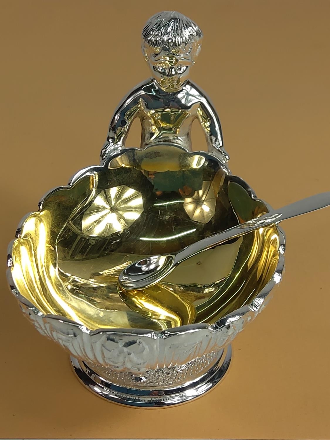 Plated cherub salt pot with spoon, 12 x 9 x 10cms