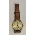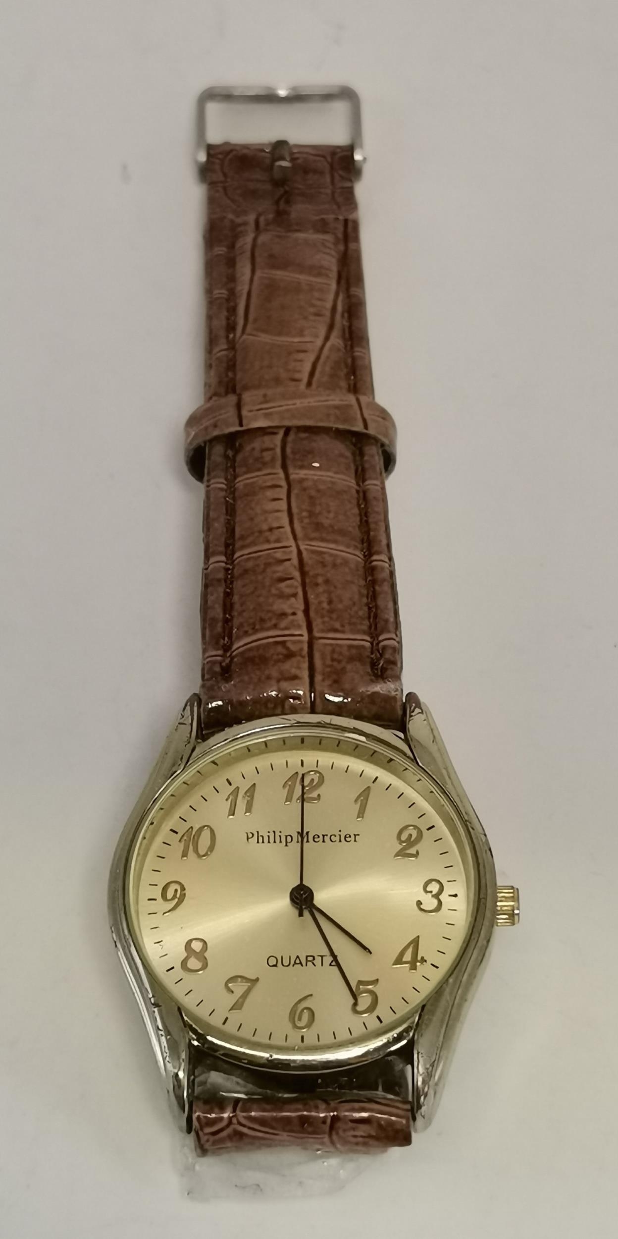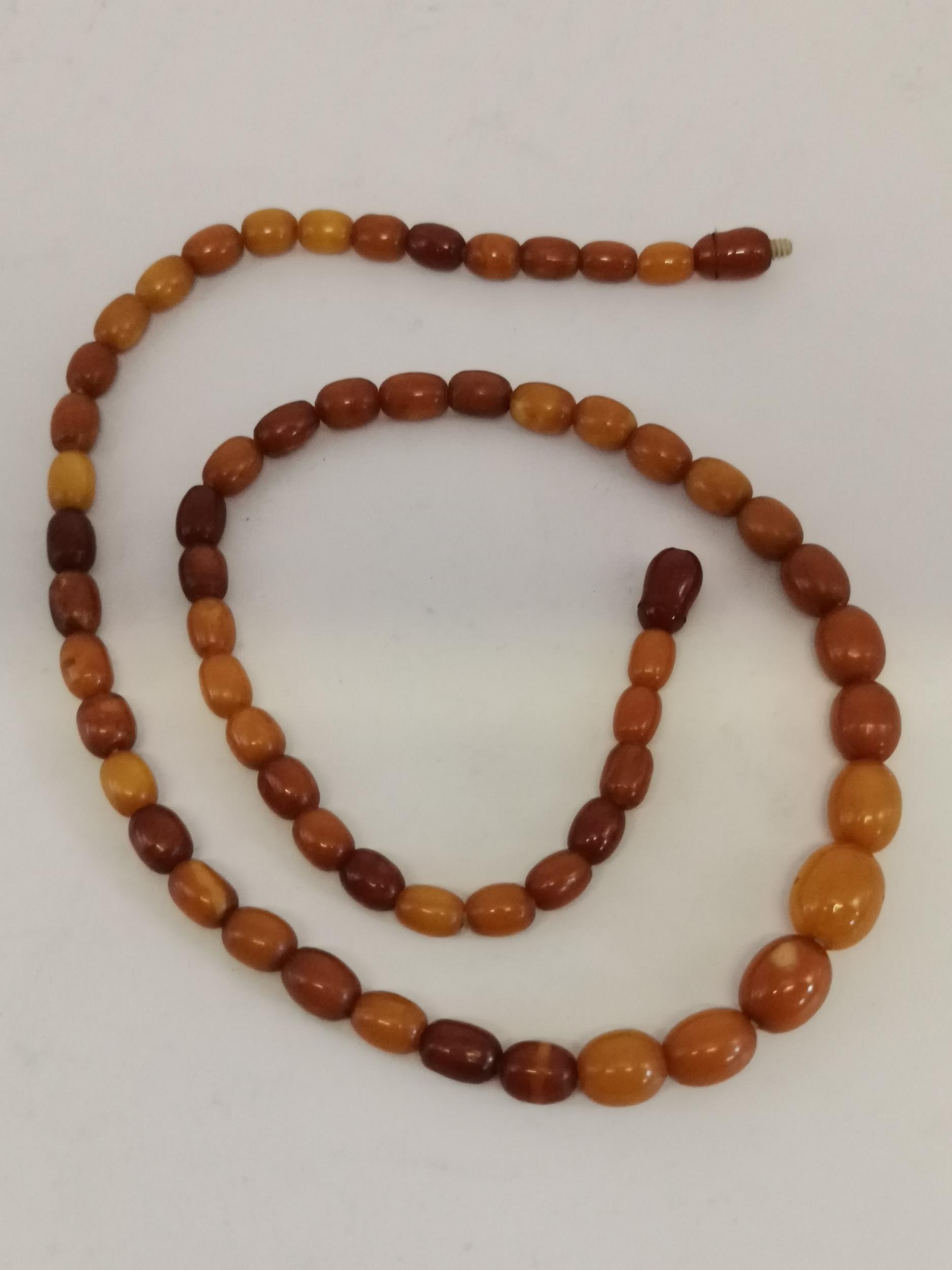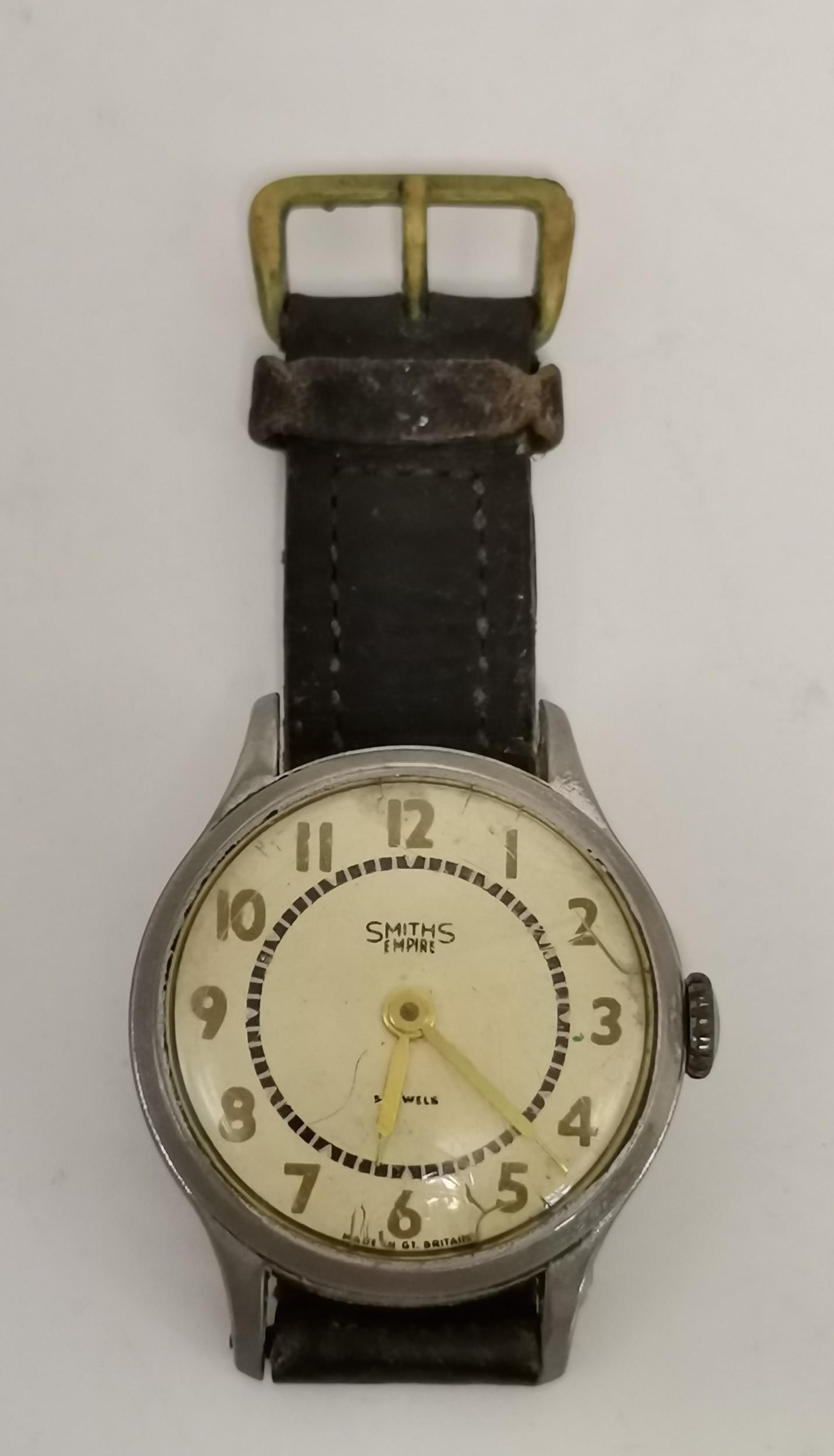 A lady's 9 carat gold wristwatch, the white circular dial unsigned, with Arabic numerals, blued steel hands, subsidiary seconds dial at 6 o'clock, the movement marked 15 Jewels, hinged caseback hallmarked 375 and numbered 50240 inside, to an expanding bracelet marked Britannia Patent 9ct, case 25mm diameter, 20.4g gross; together with two other gent's leather strap wristwatches, and a string of graduated amber type beads. (4)