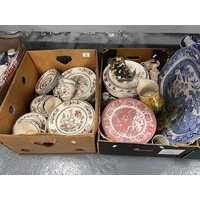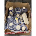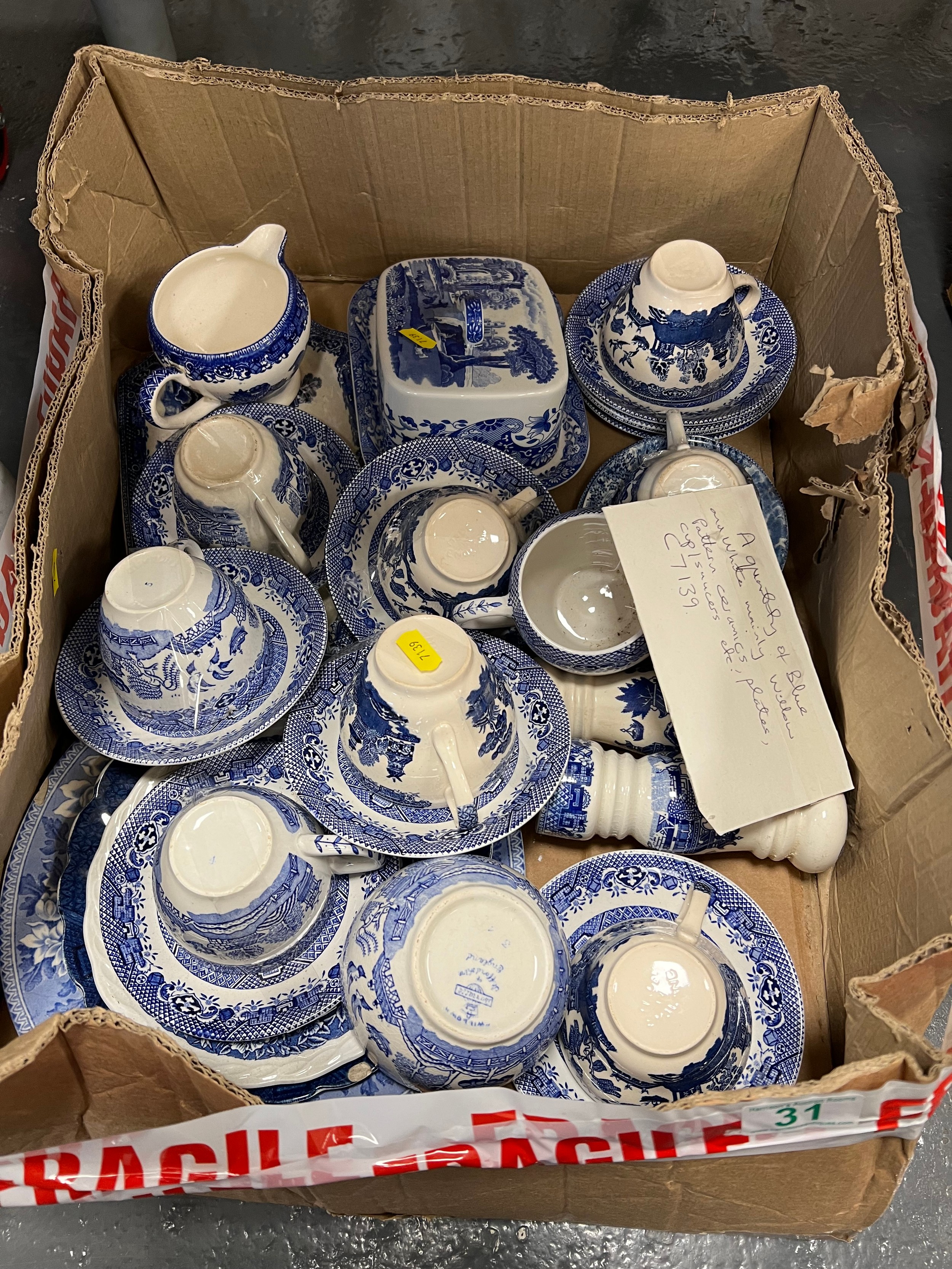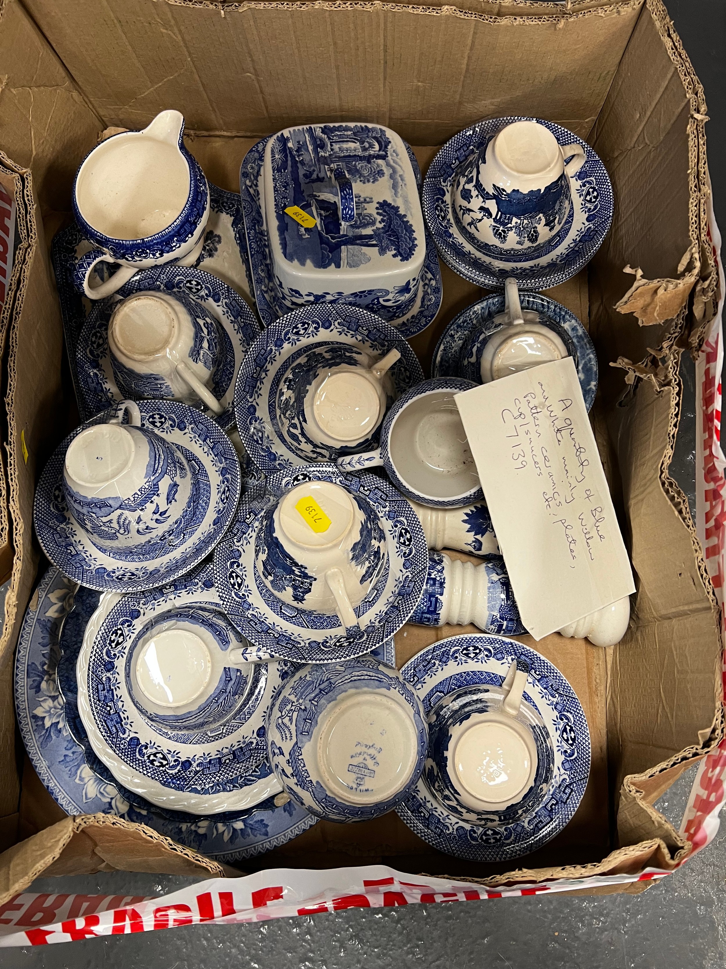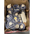 Box of b&w willow pattern pottery