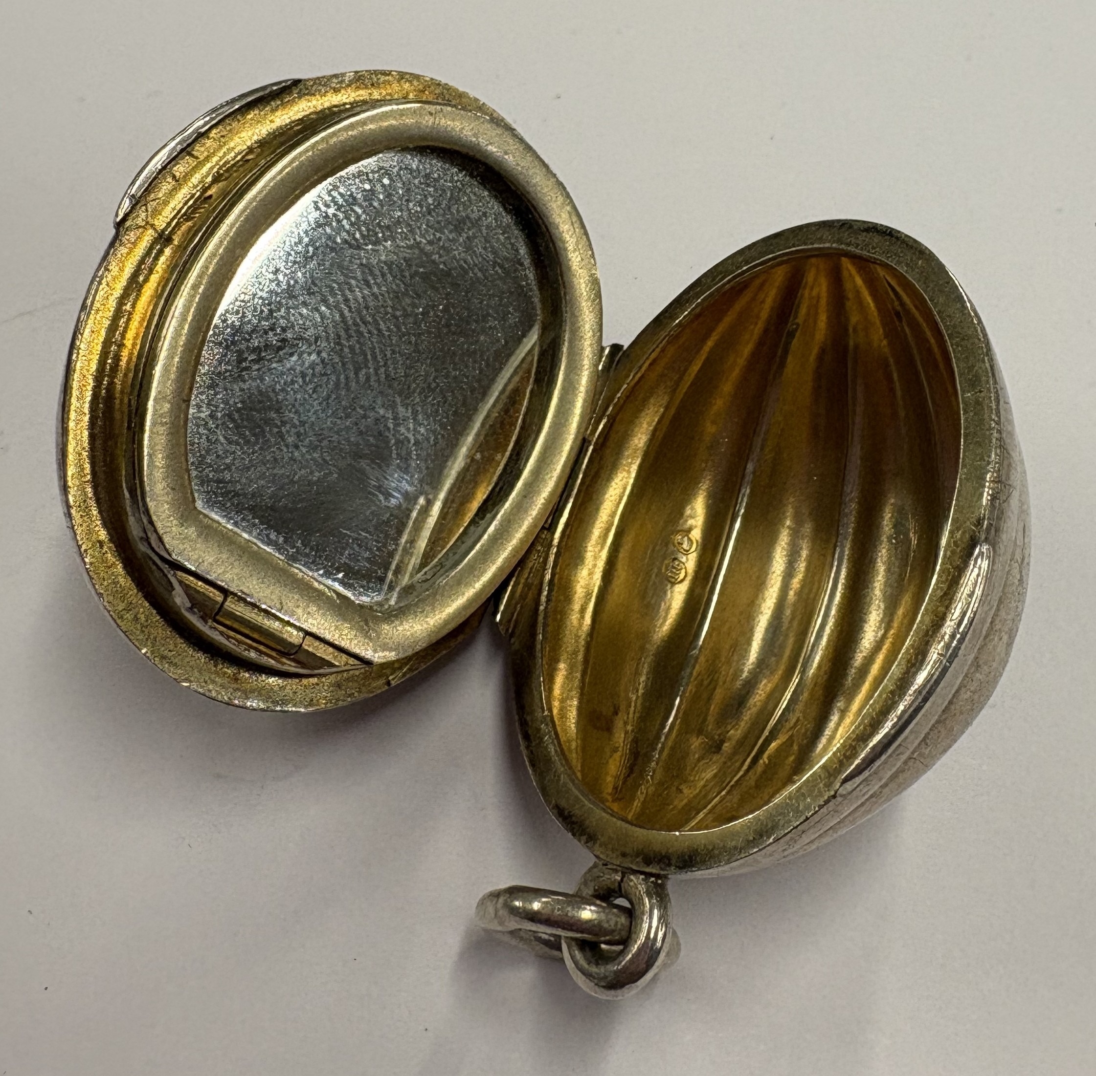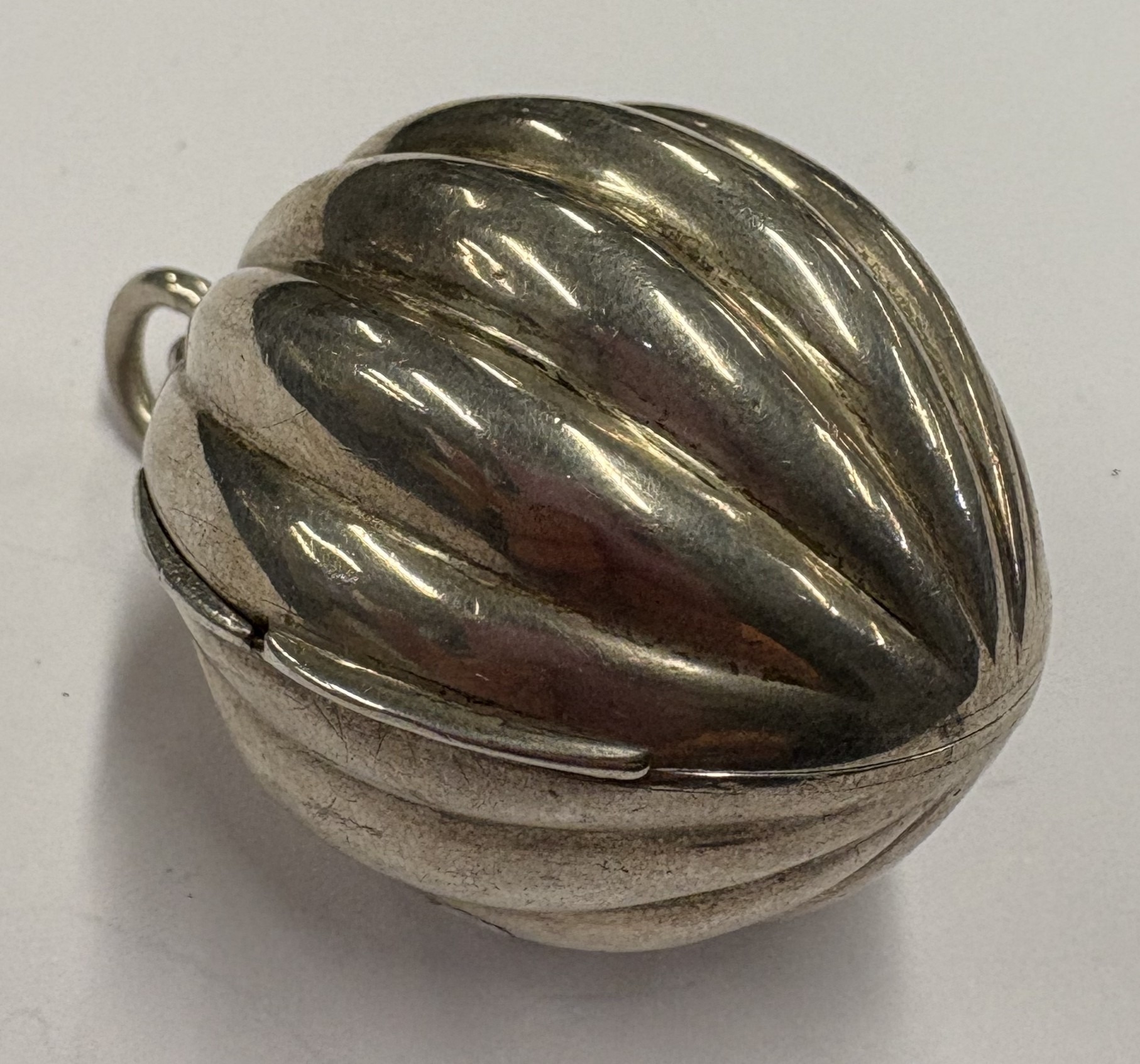 A novelty nutmeg-shaped Victorian silver box. Birmingham 1886. By George Unite. Approx. 33 grams. Est. £300 - £400.