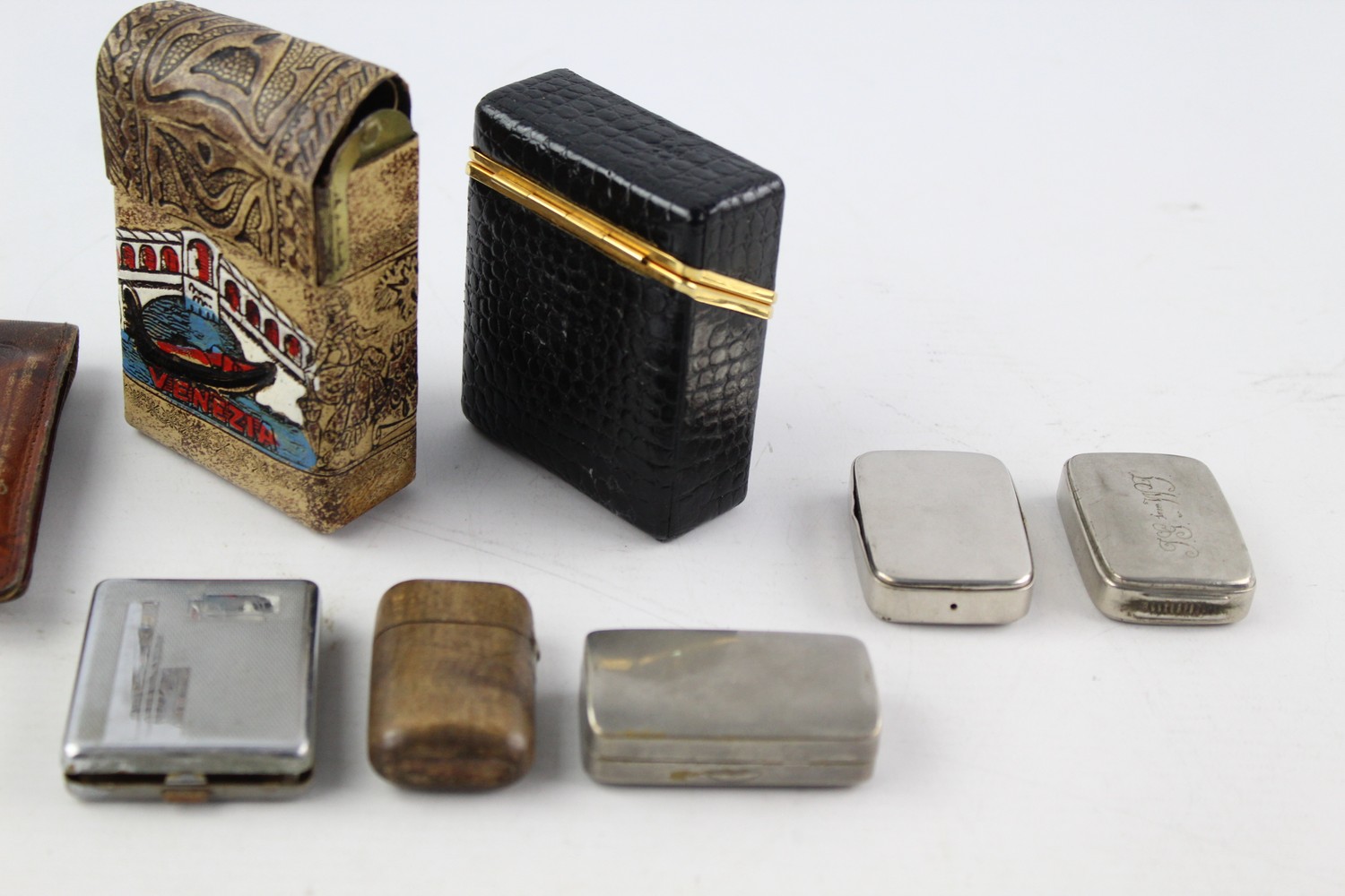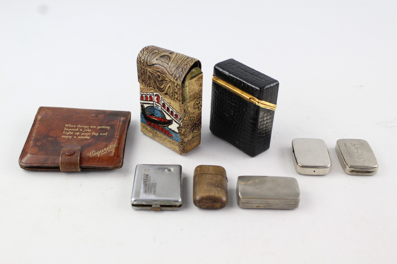 8 x Assorted Vintage TOBACCIANA Inc Snuff, Vestas, Silver Plate, Leather Etc