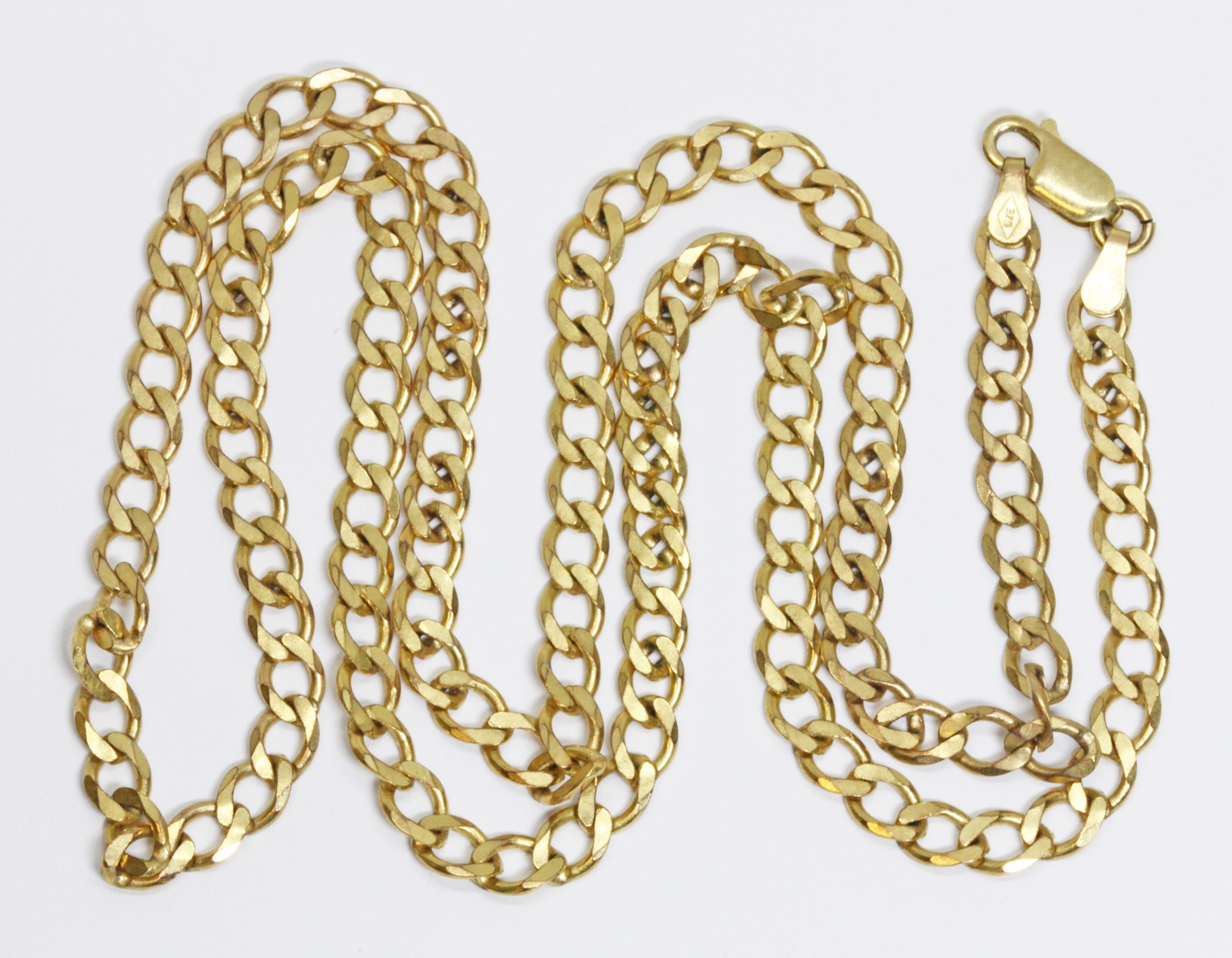 A 9ct gold flat curb chain, import marks, length 60cm, weight 15.7g, 10% buyer's premium (inclusive of VAT), normal online bidding fees apply.