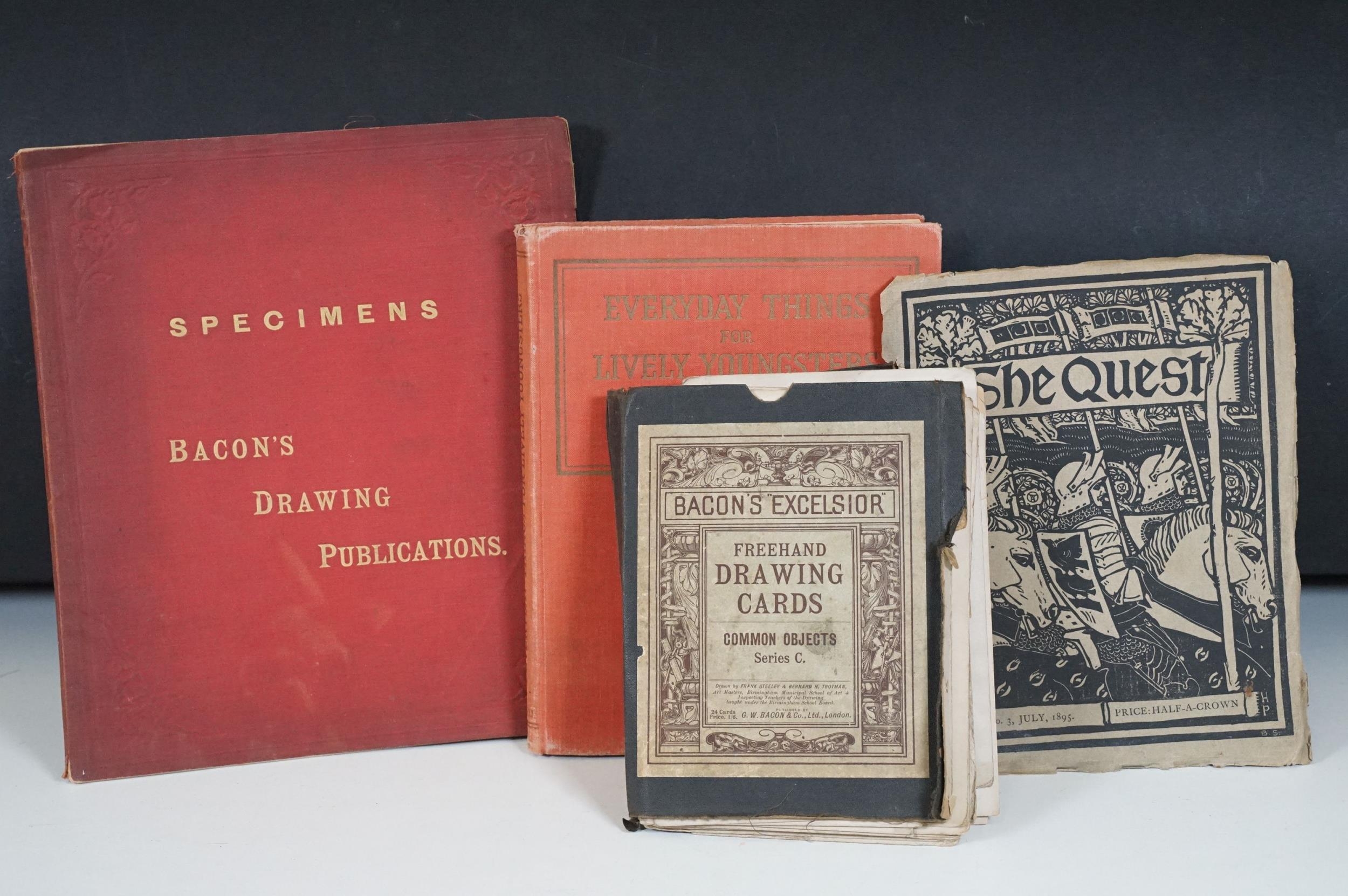 A collection of four vintage books to include Bacon's Excelsior Freehand Drawing Cards, The Quest No.3 (1895), Everyday Things for Lively Youngsters and Bacon's Drawing Publications.