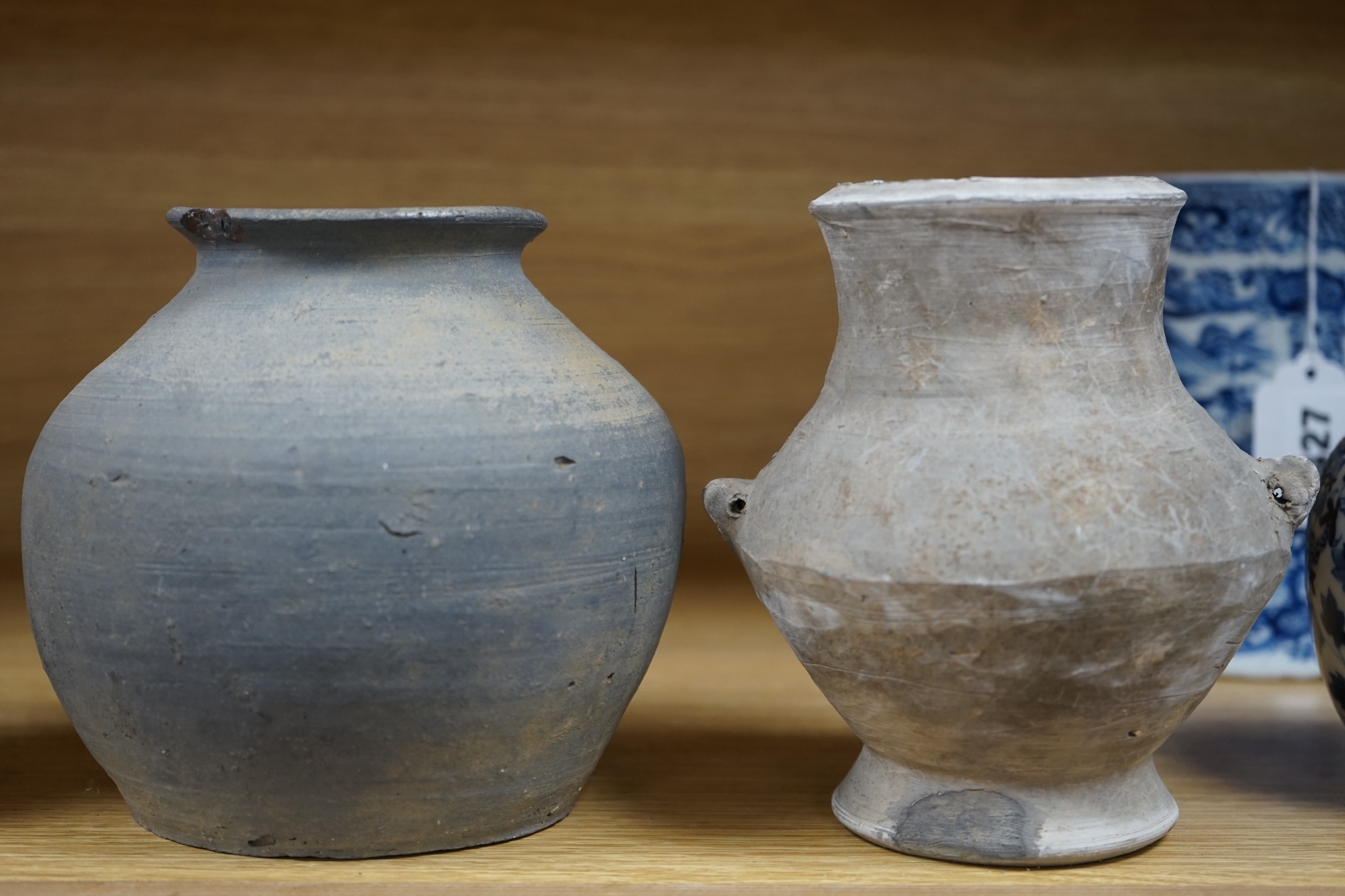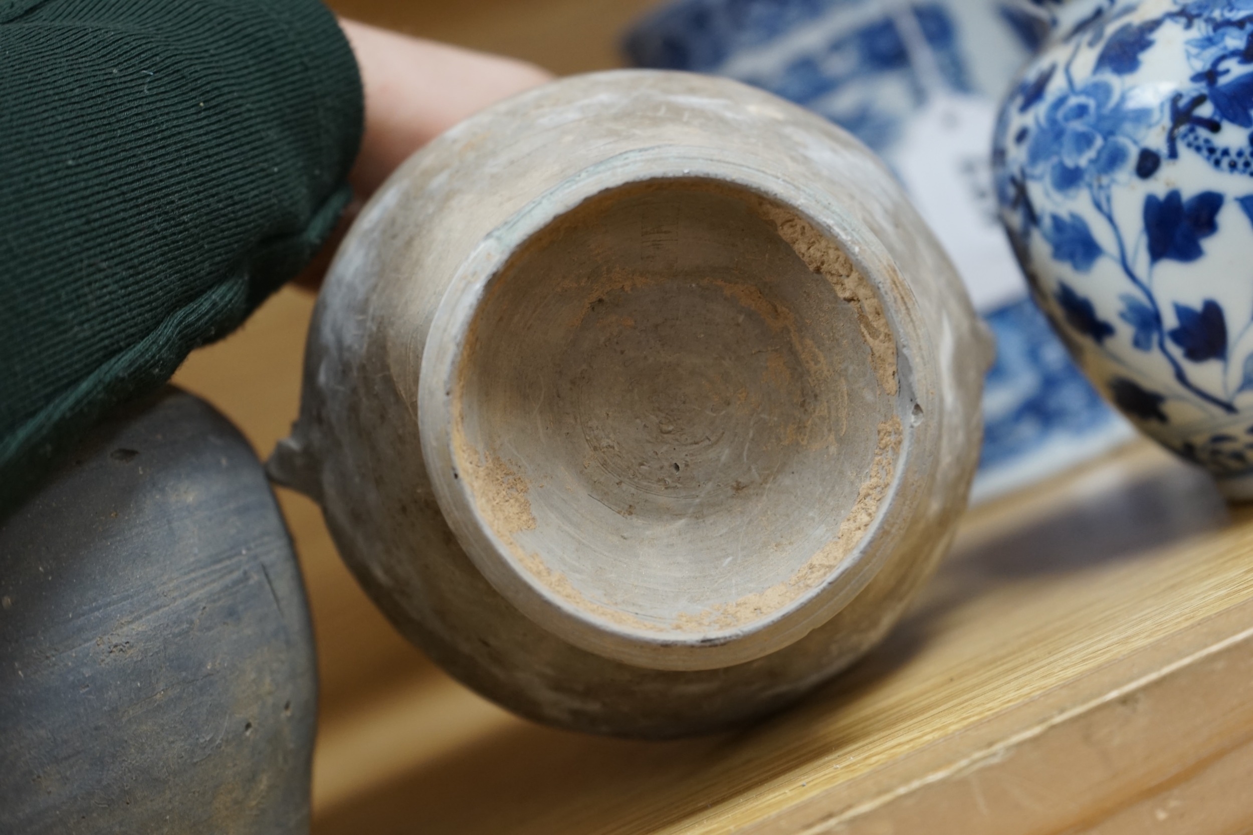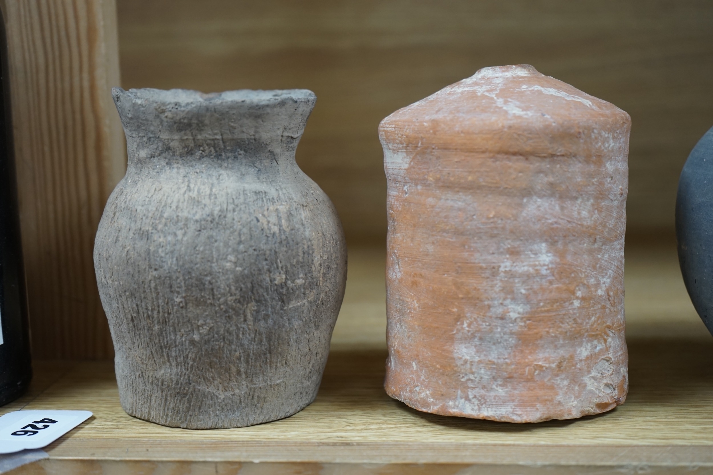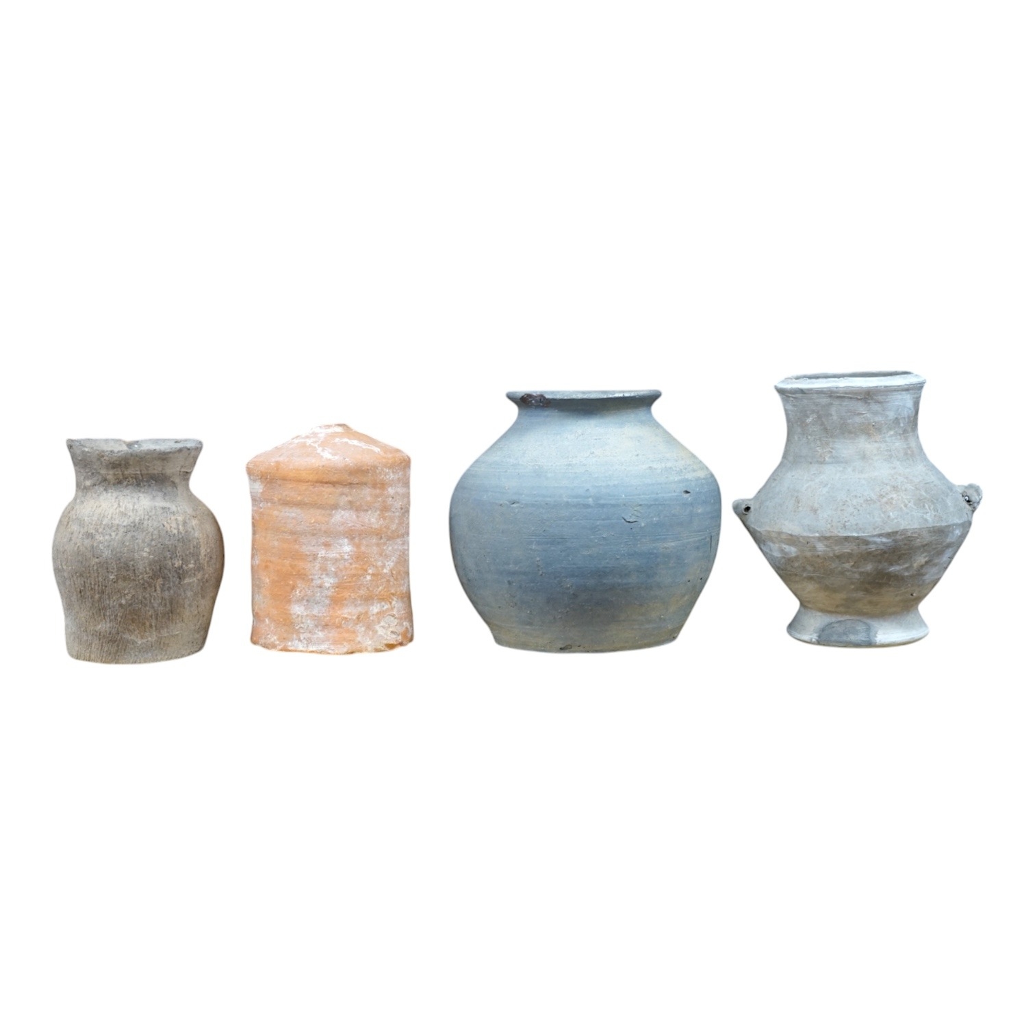 Four Chinese archaic pottery vessels, Neolithic to Han Dynasty, largest 16cm high. Condition - fair, antique condition