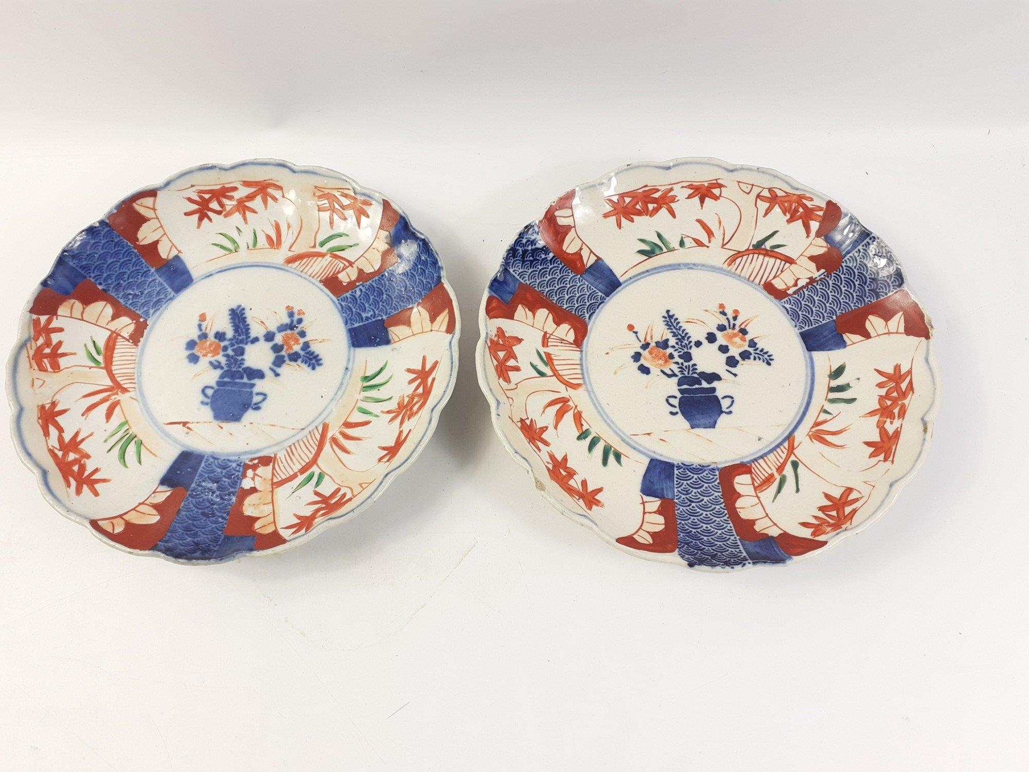 A pair of Imari style Oriental plates each 21cm across and in good order.