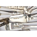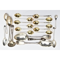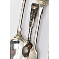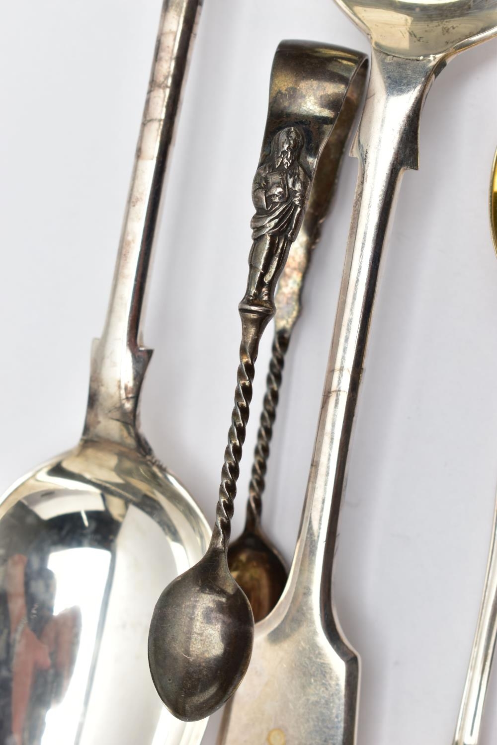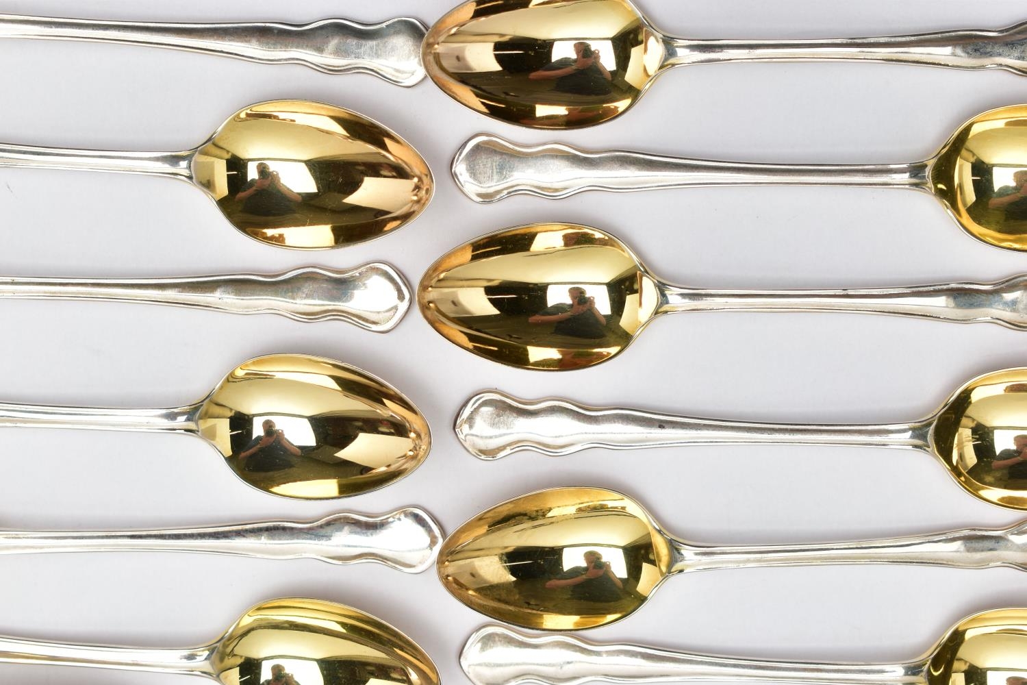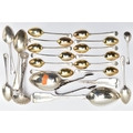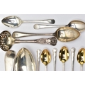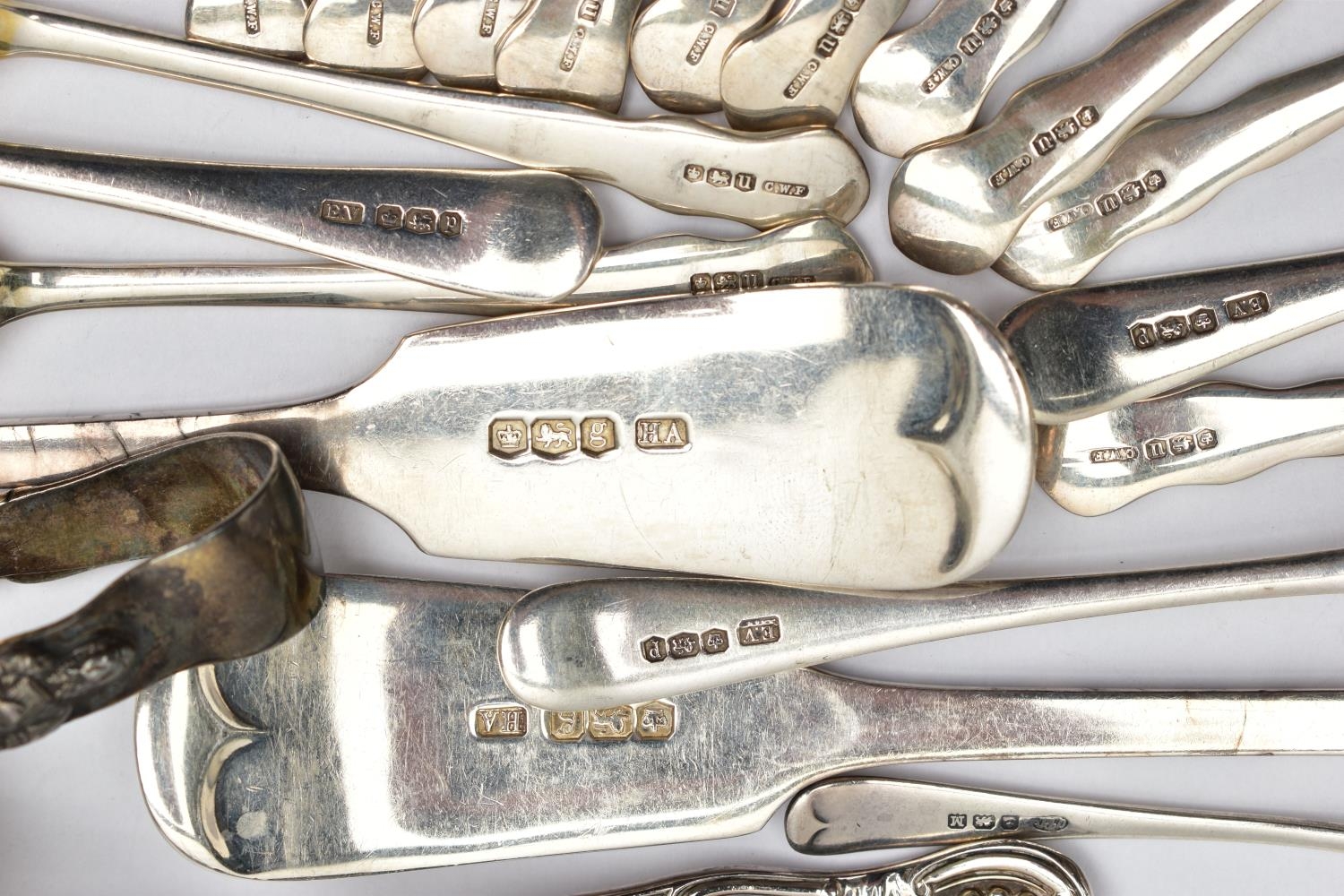 A PARCEL OF 19TH AND 20TH CENTURY SILVER FLATWARE, including a pair of George V Fiddle pattern tablespoons, makers Atkin Brothers, Sheffield 1924, a Victorian Kings pattern sugar caster spoon, gilt bowl, maker William Robert Smily, London 1853, a set of twelve George VI coffee spoons with gilt bowls, makers C W Fletcher & Son Ltd, Sheffield 1937, a set of three George V Old English pattern teaspoons, engraved initial 'B', Sheffield 1932, etc, gross weight 17.10ozt, 531.8 grams (Parcel) (Condition report: generally in useable condition, signs of light to moderate use)