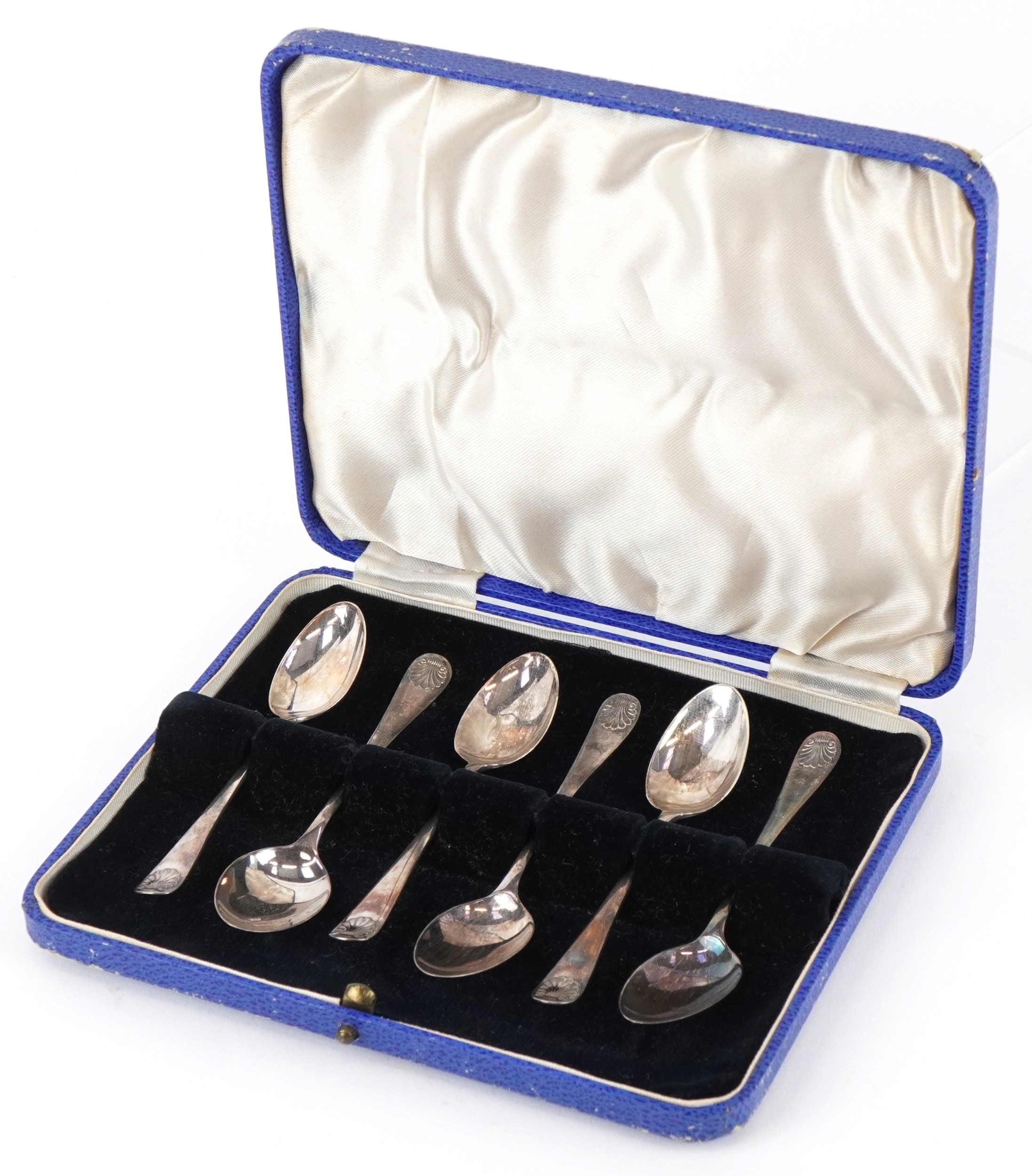 Cooper Brothers & Sons Ltd., a set of six silver teaspoons with shell design terminals, Sheffield 1932, 10cm in length, total 59.0g.