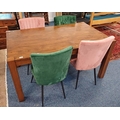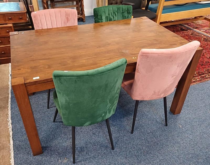 HARDWOOD RECTANGULAR DINING TABLE & SET OF 4 OVERSTUFFED DINING CHAIRS - TABLE 150 CM LONG