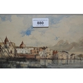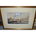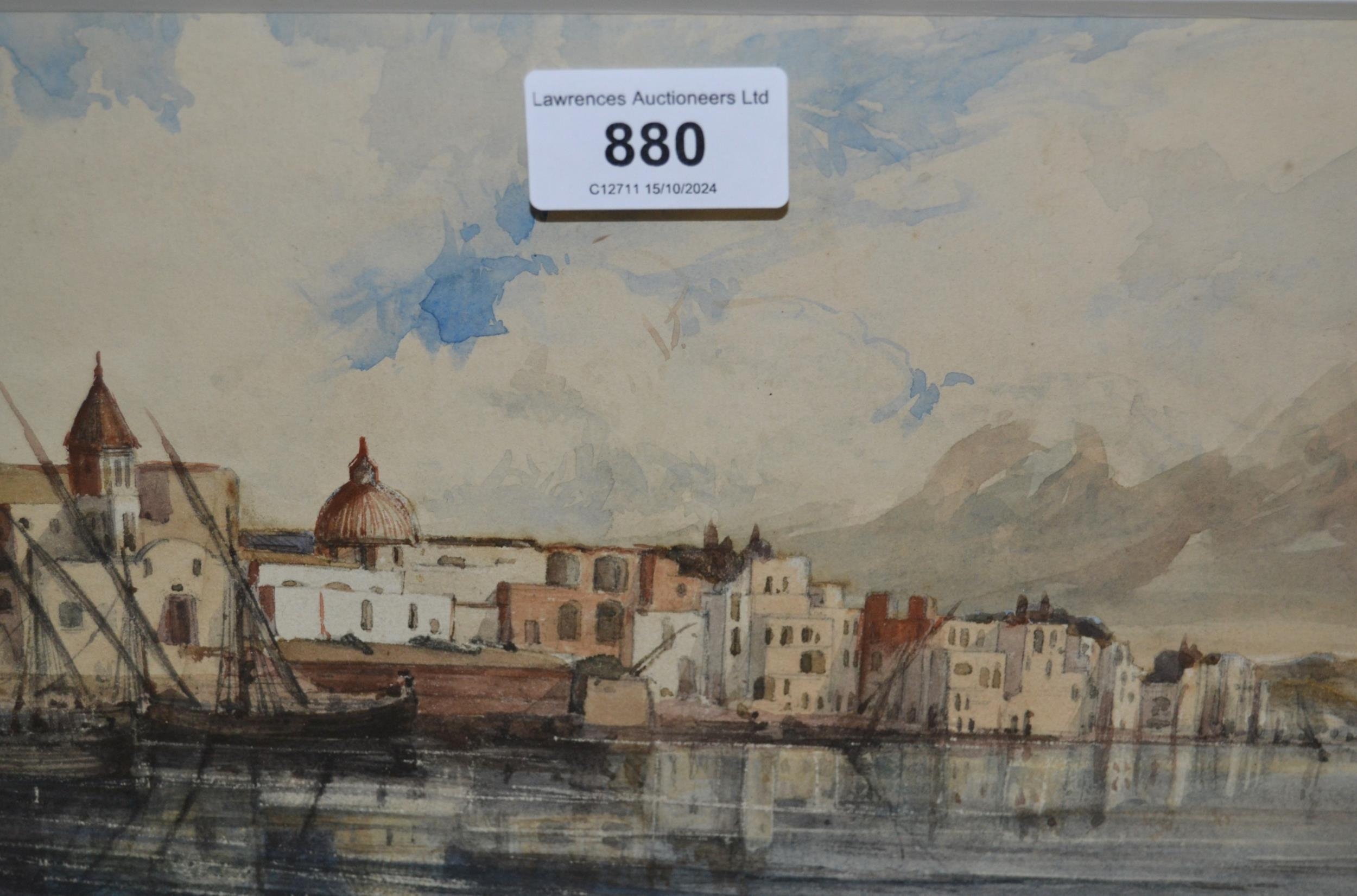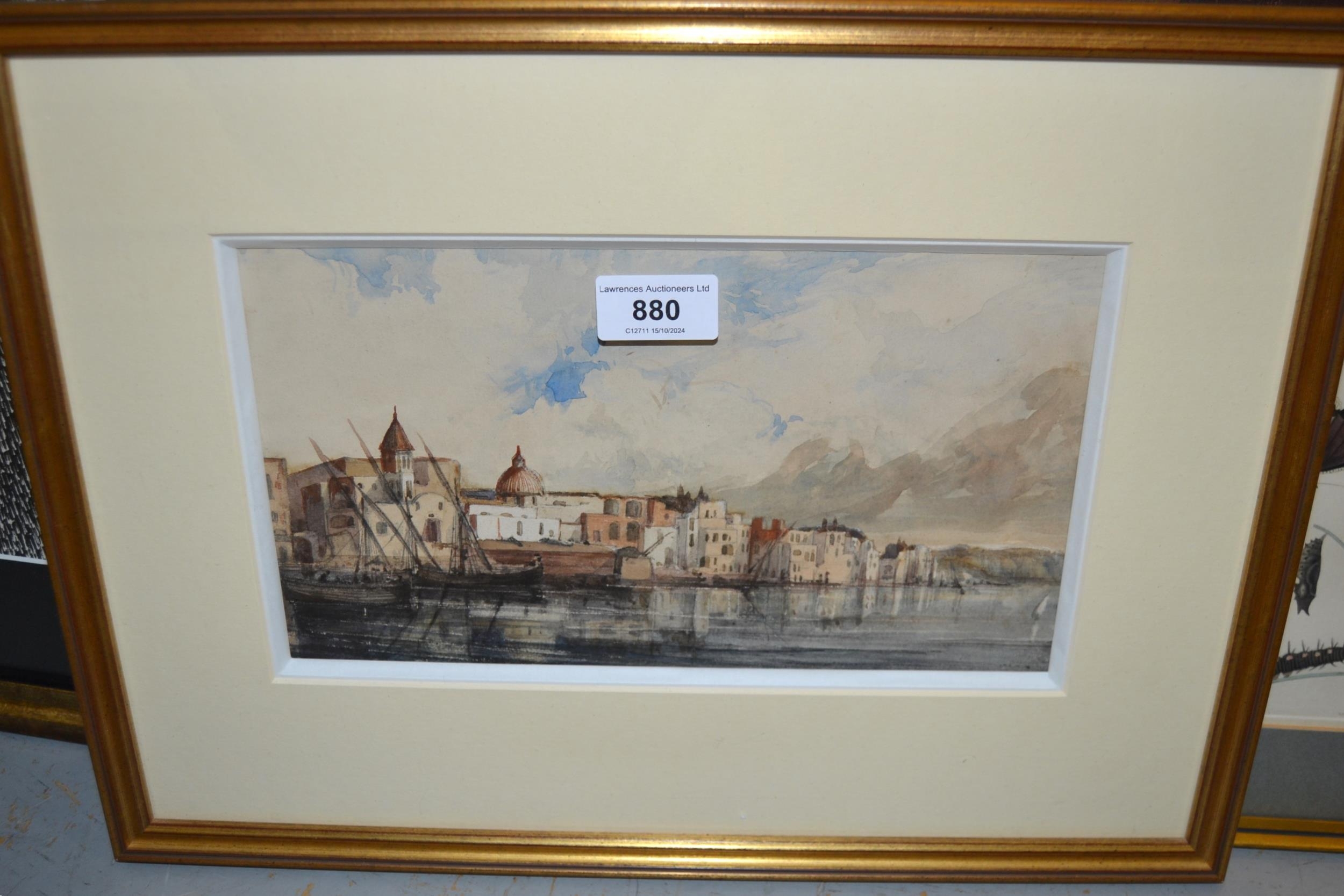 Attributed to Francis Seymour Haden, watercolour, coastal scene at Leghorn (Livorno), unsigned, labelled verso, 15 x 27cm, gilt framed