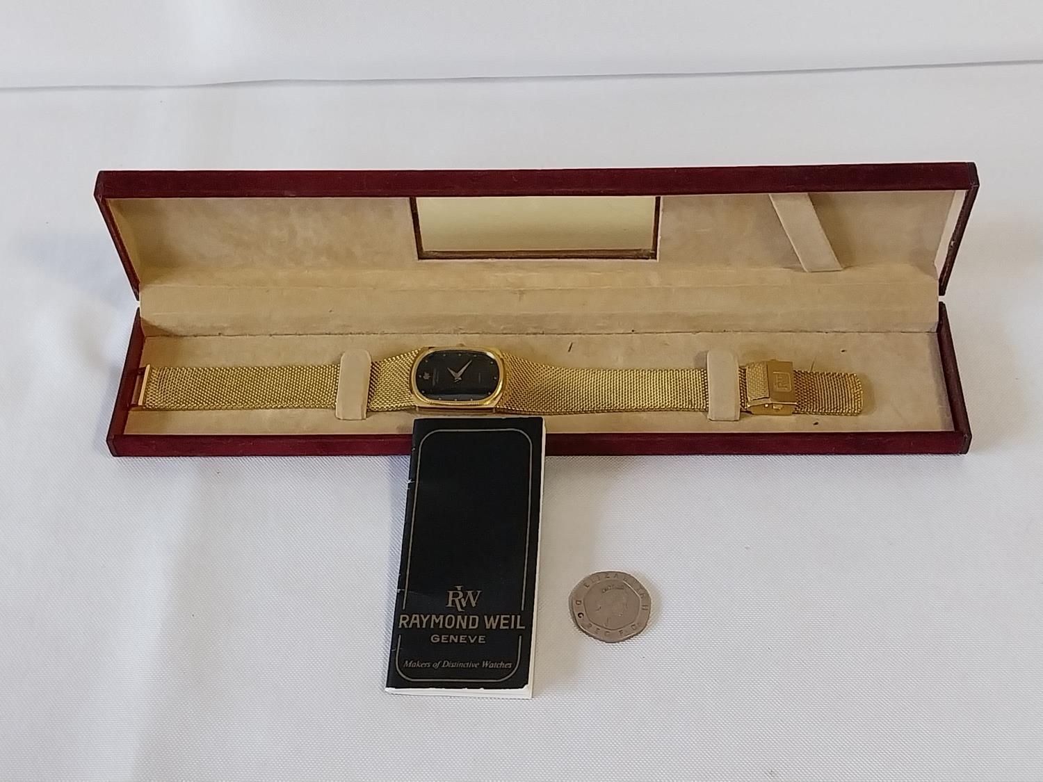 genuine gold plated Raymond Weil watch box & paperwork