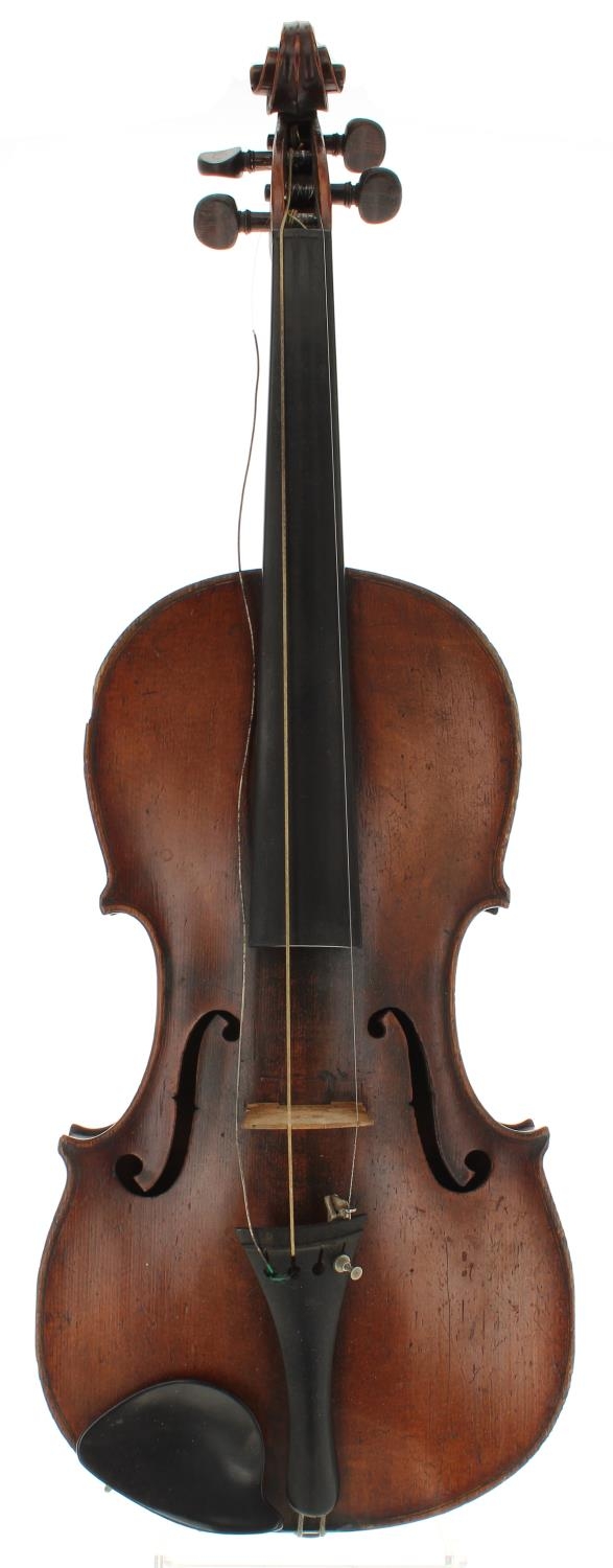 Late 19th century German violin, 14 1/16", 35.70cm, bow, case