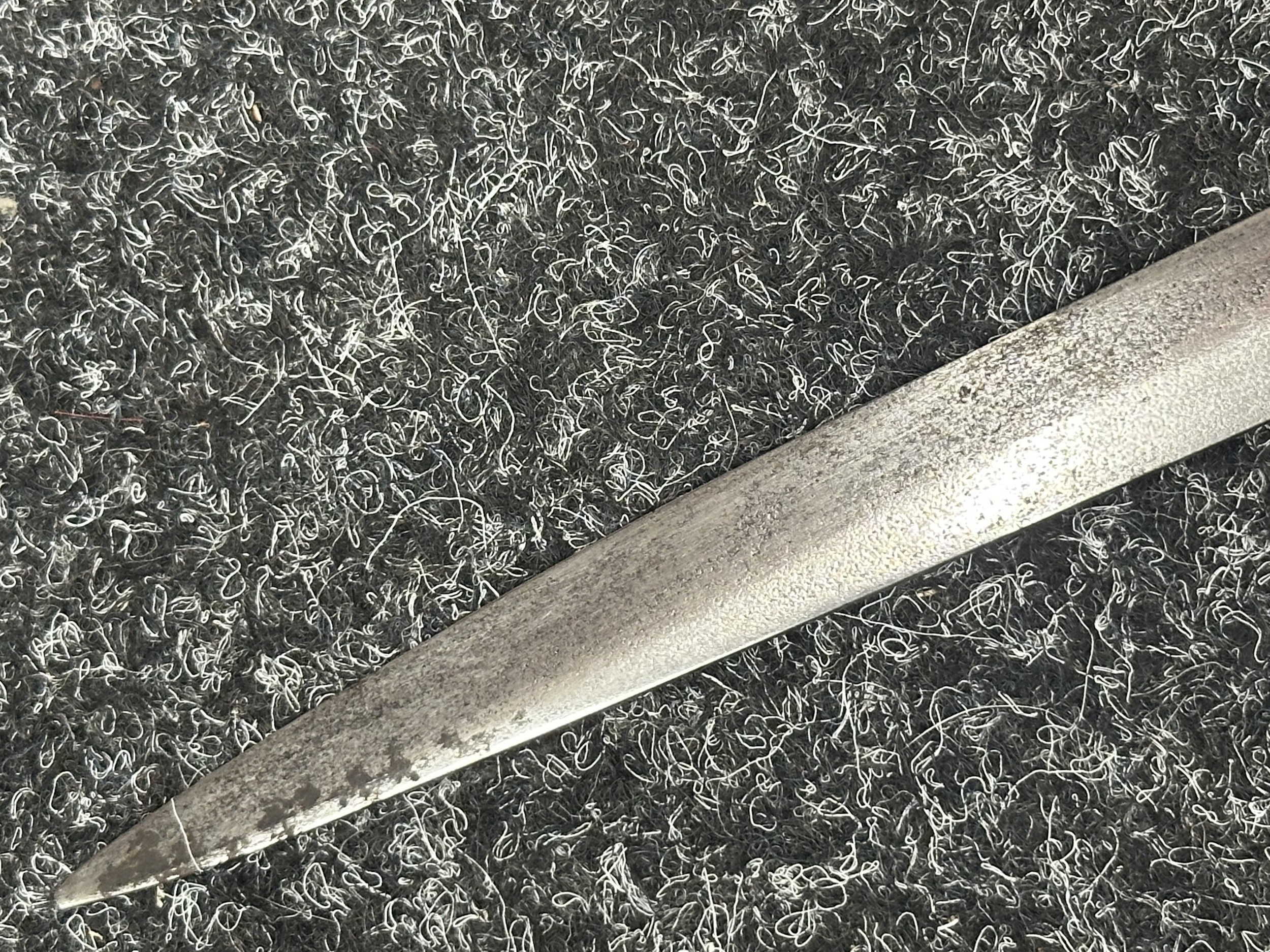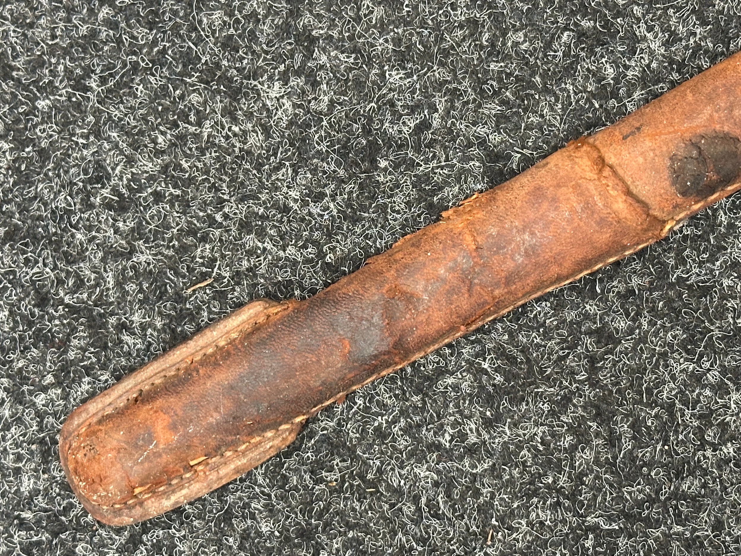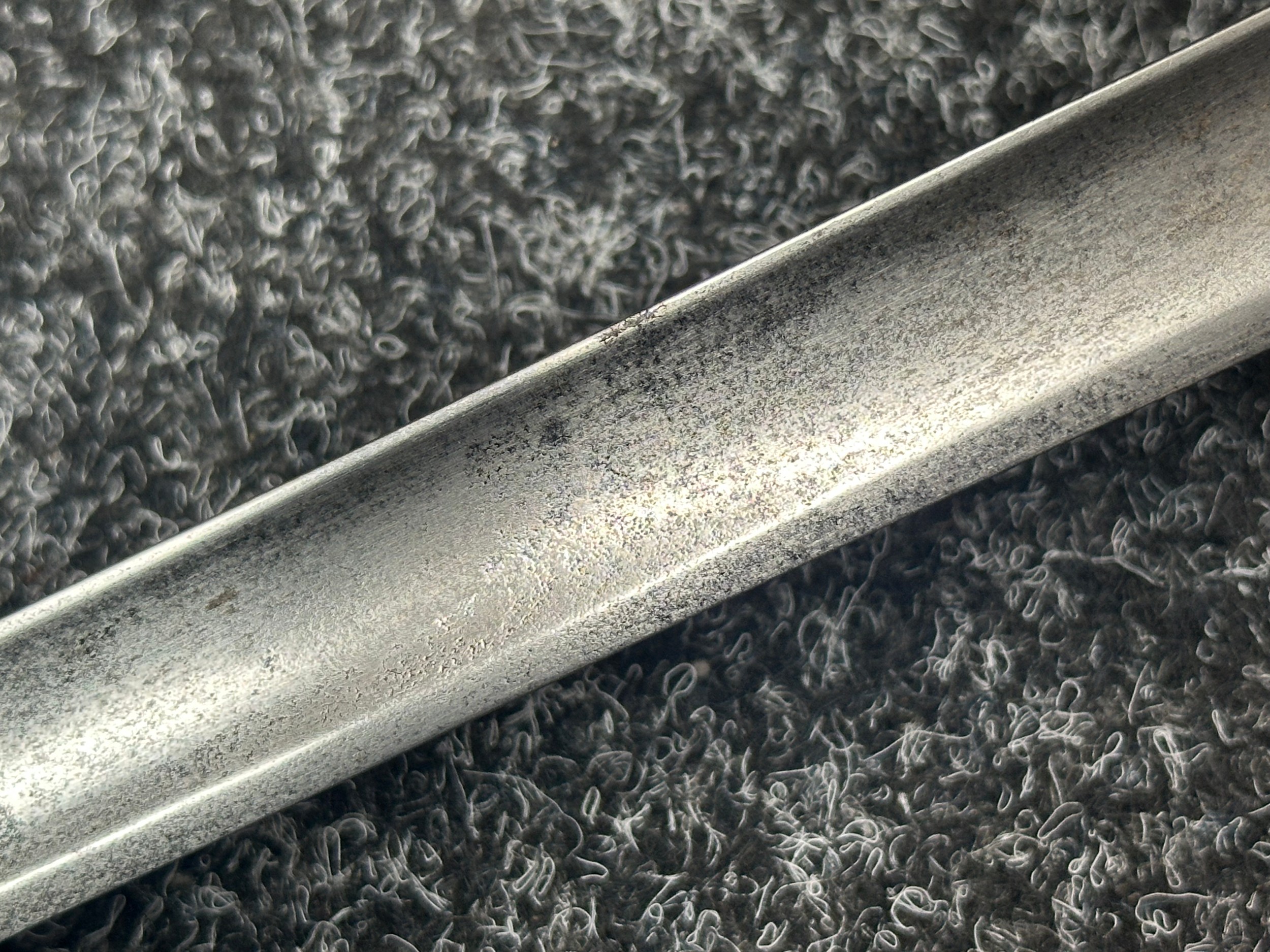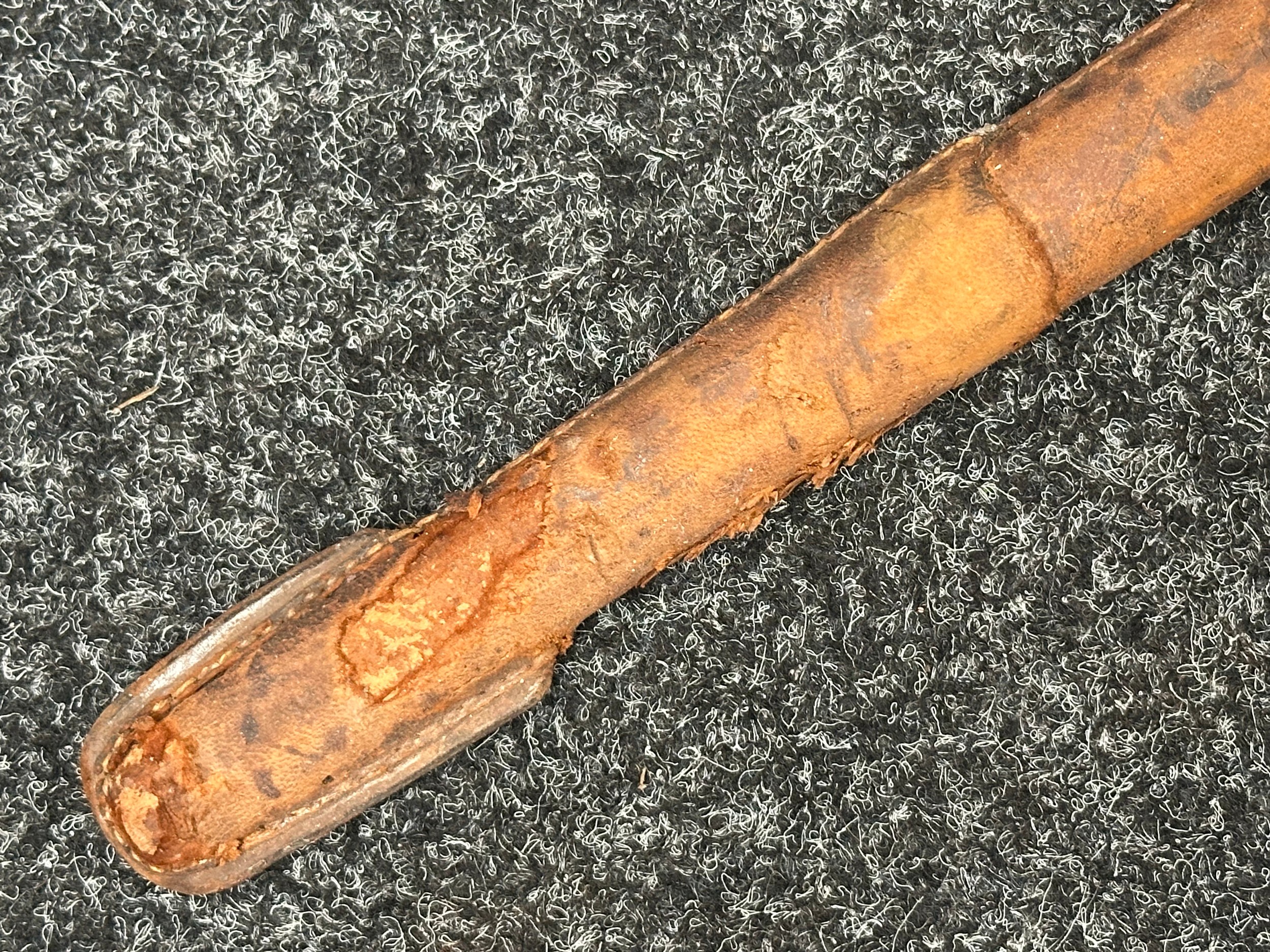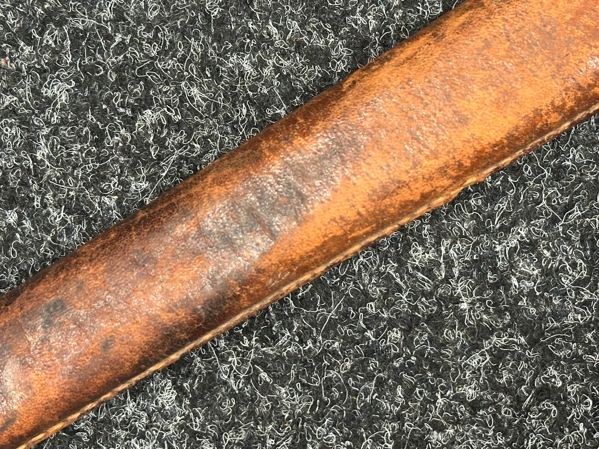 WW1 British GR V Officers 1897 Pattern Sword with plain single edged fullered blade 815mm in length, maker marked "Enfield". Spine of blade stamped "1315". Leather washer to blade. Guard marked "GRV" cypher. Wire bound Shagreen grip. Overall length 98cm. Complete with scabbard.