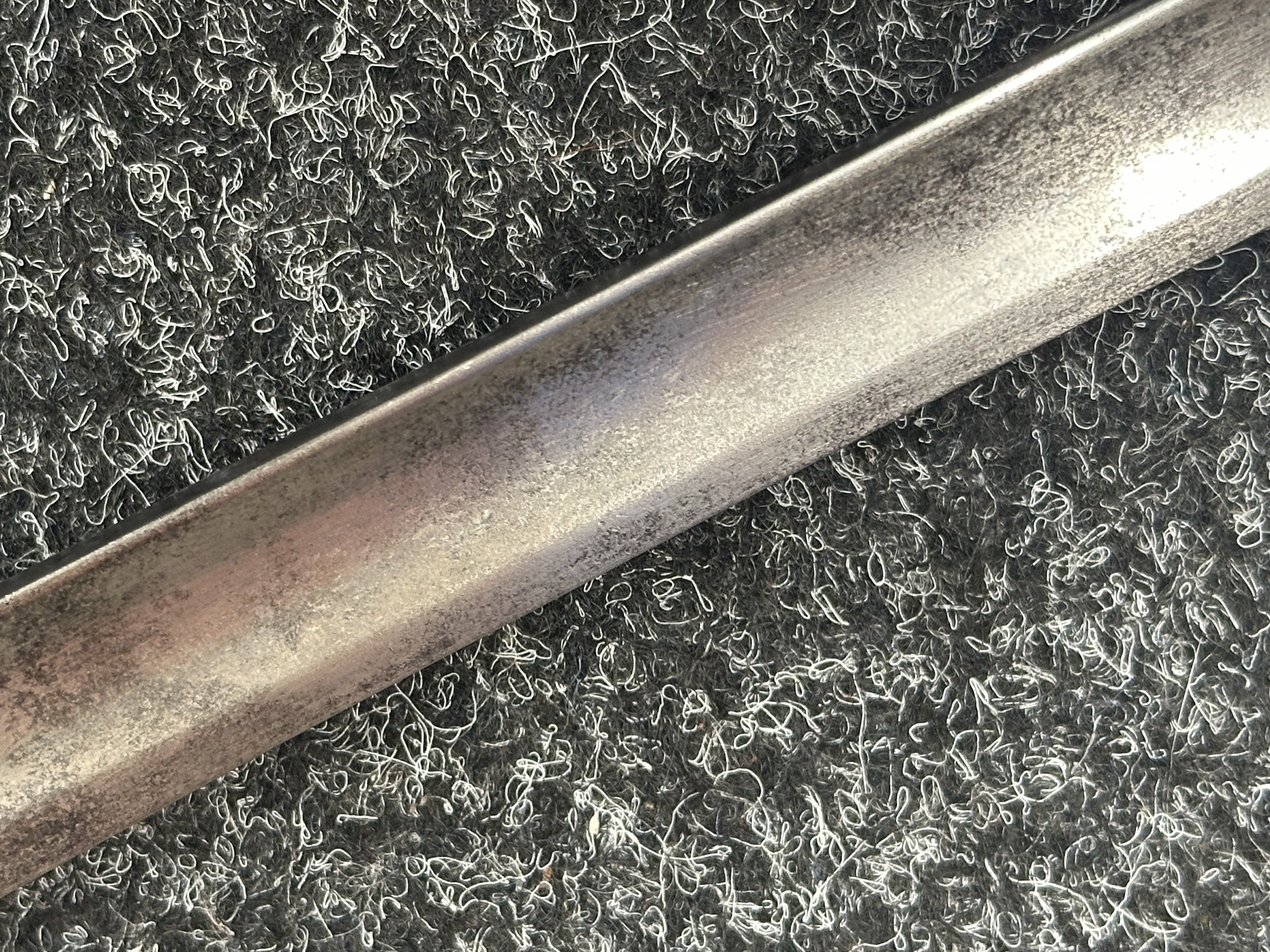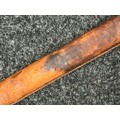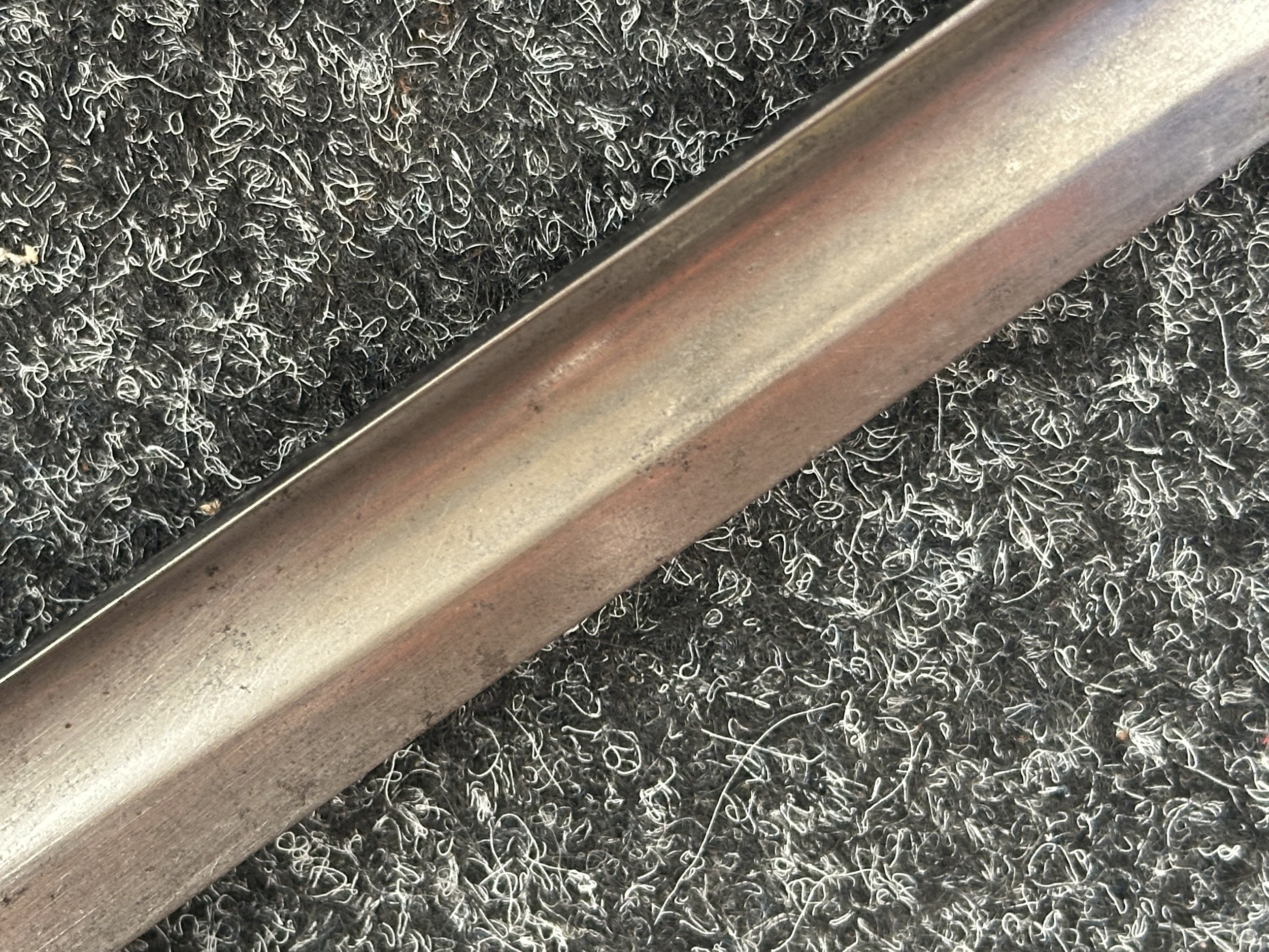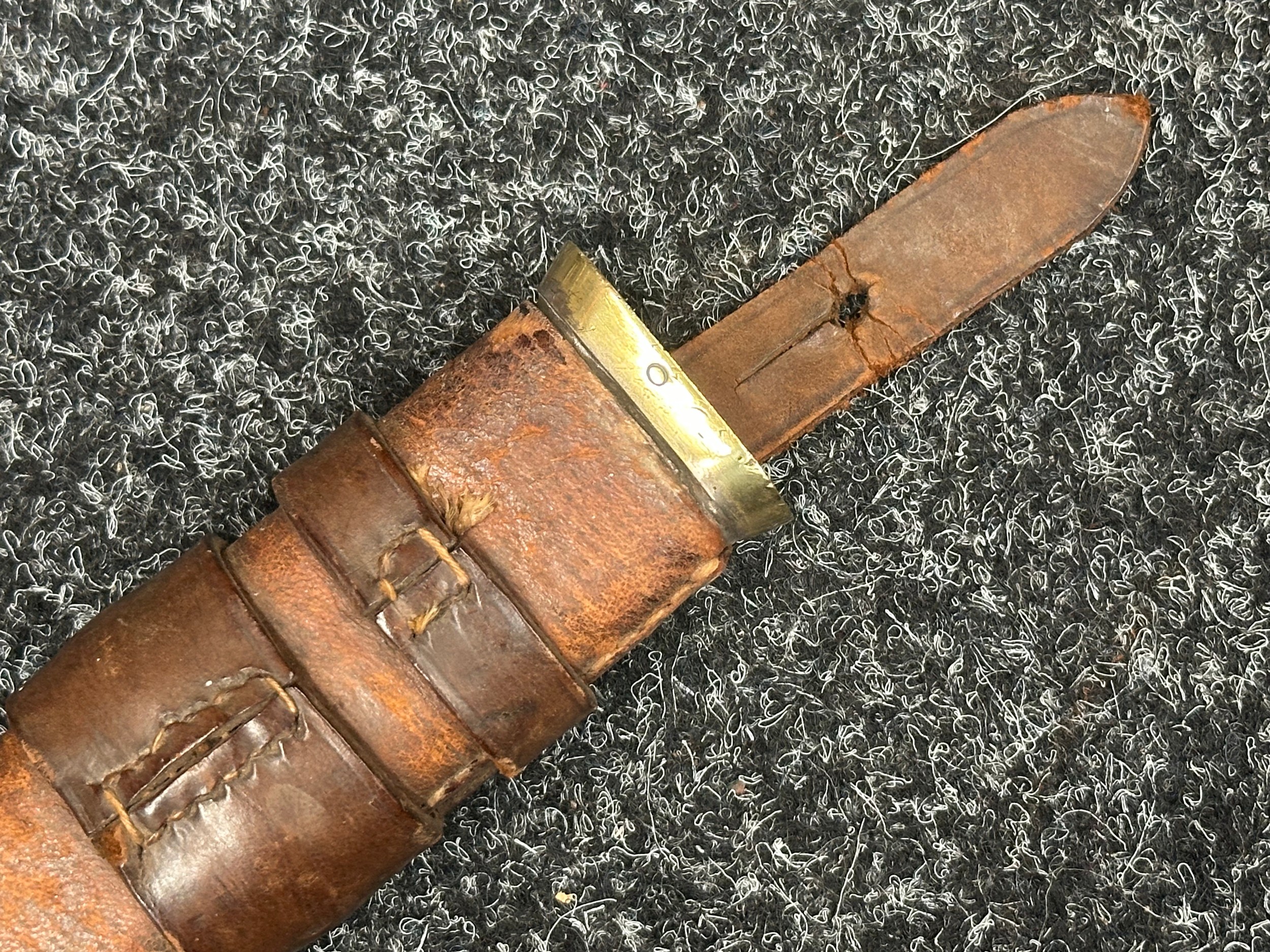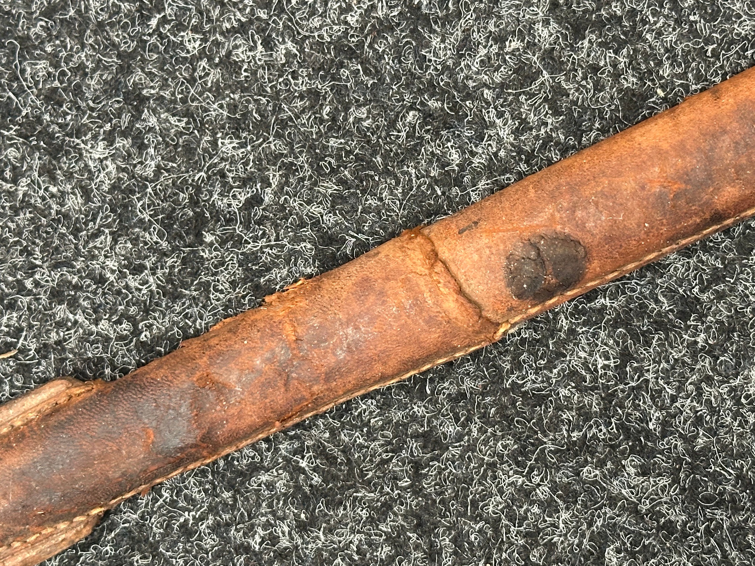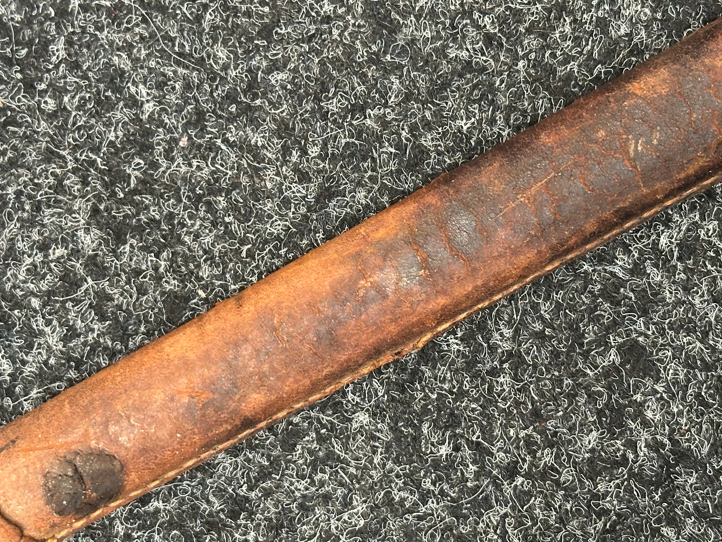 WW1 British GR V Officers 1897 Pattern Sword with plain single edged fullered blade 815mm in length, maker marked "Enfield". Spine of blade stamped "1315". Leather washer to blade. Guard marked "GRV" cypher. Wire bound Shagreen grip. Overall length 98cm. Complete with scabbard.