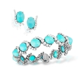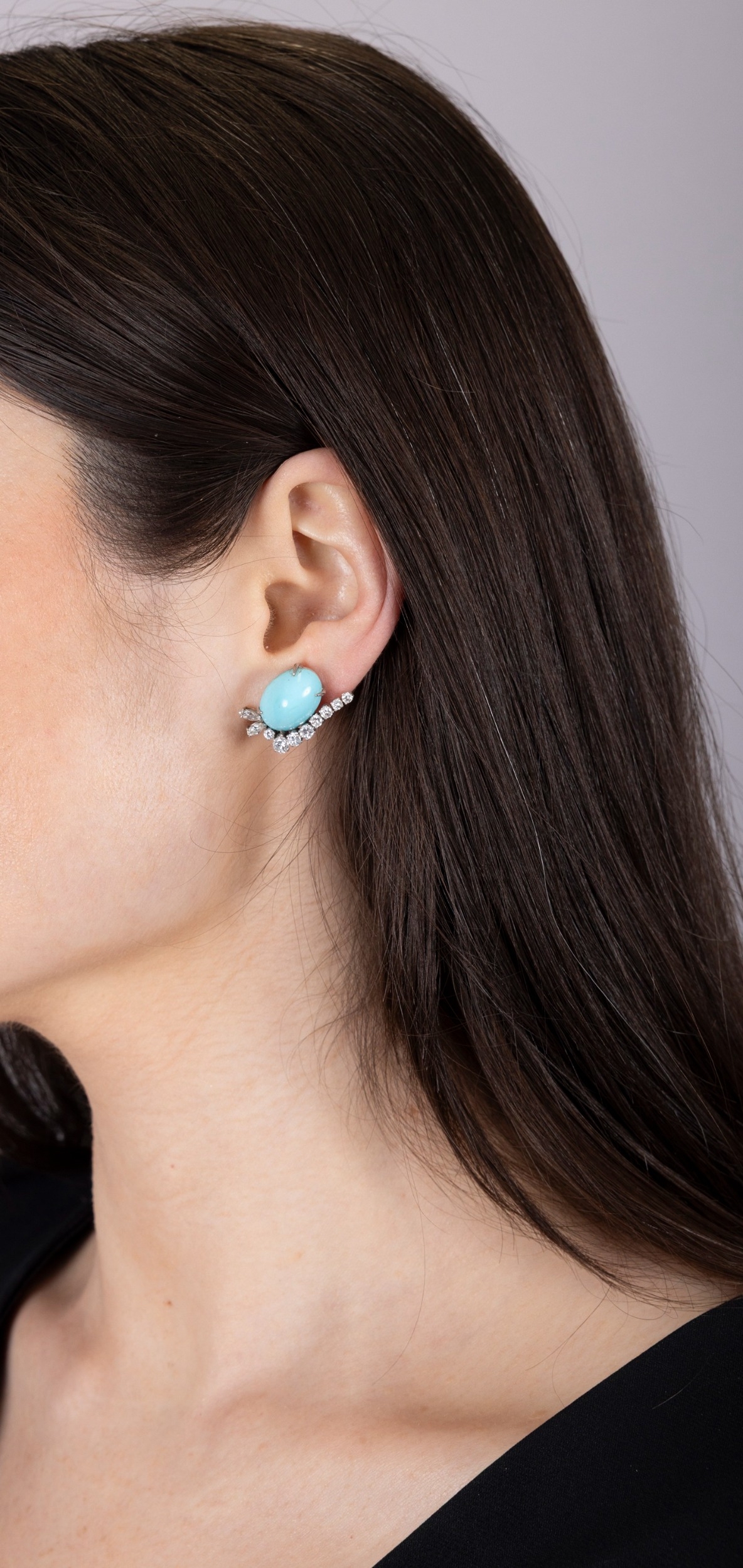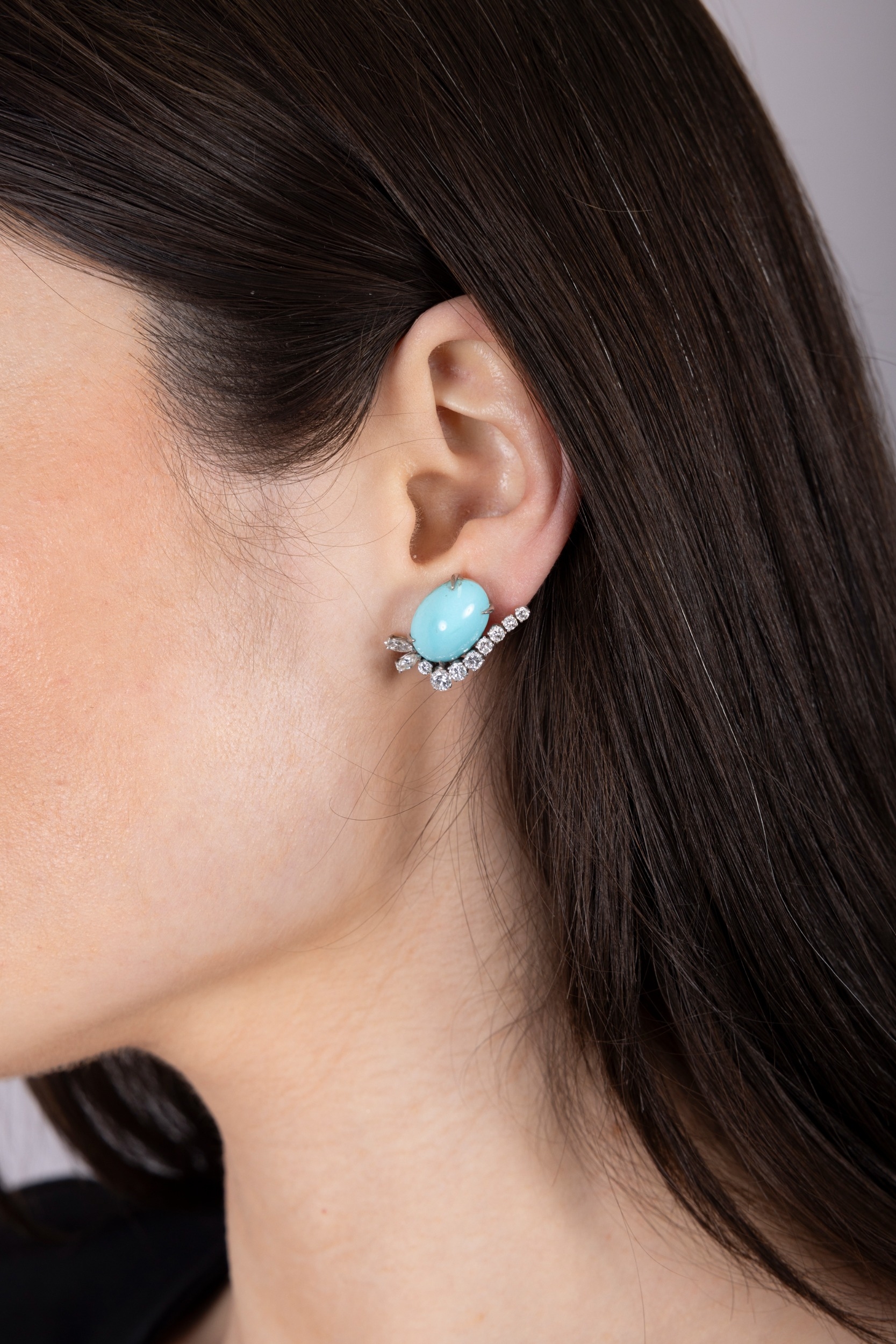 Turquoise: natural matrix visible on their reverse, typical turquoise blue, overall well matched in colour Diamonds: approx. 6.00cts total on bracelet and 1.20cts total - estimated colour G/H, estimated clarity VS with a couple of good SI Clasp slightly loose but has a safety catch as well, safe to wear Earclips for non pierced ears with good tension Owl marks for 18K gold imported in France Normal signs of wear, overall in good condition Total gross weight approx. 43.8g