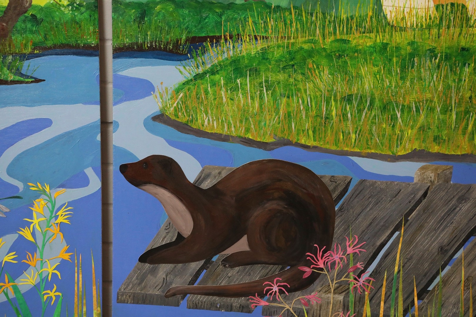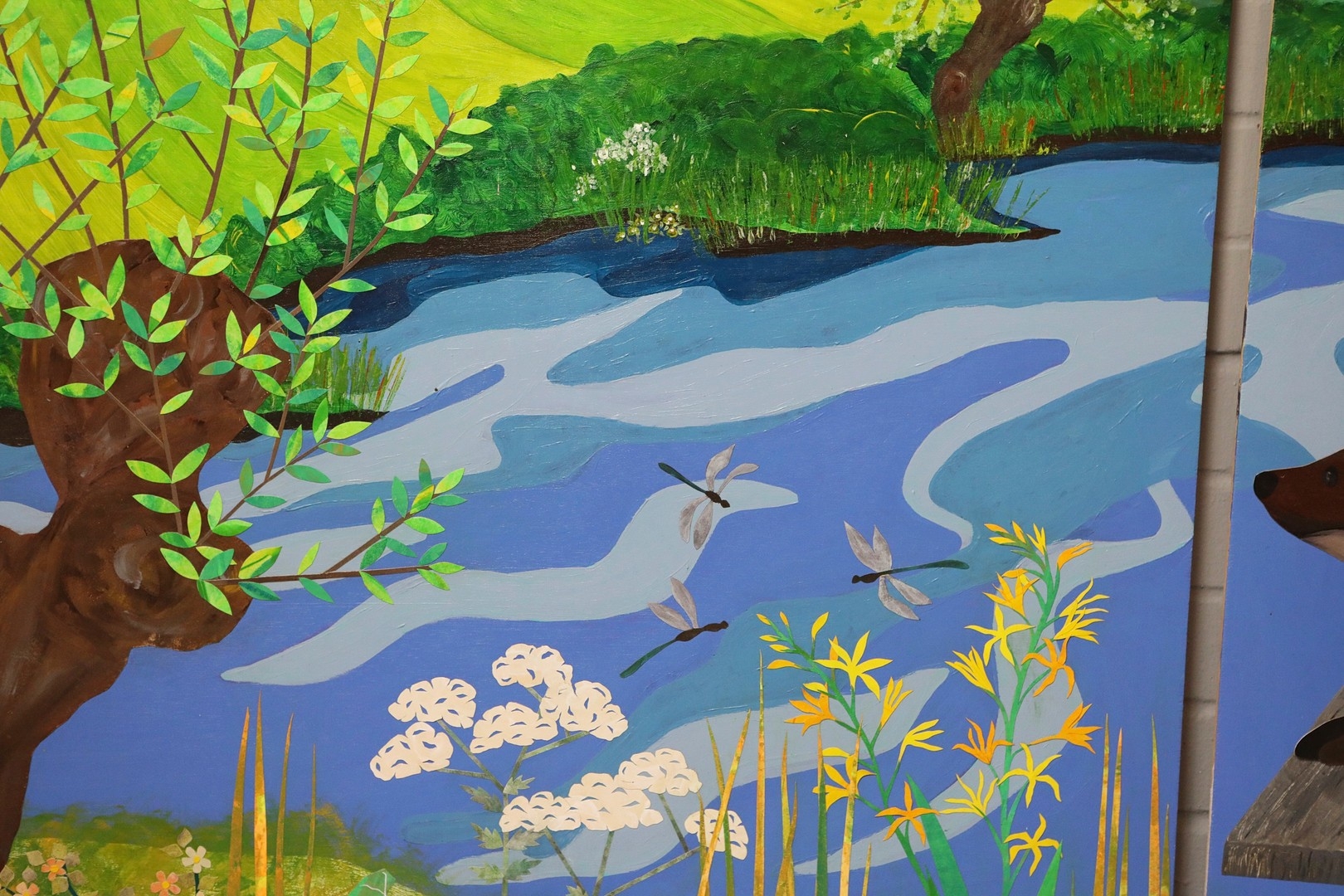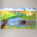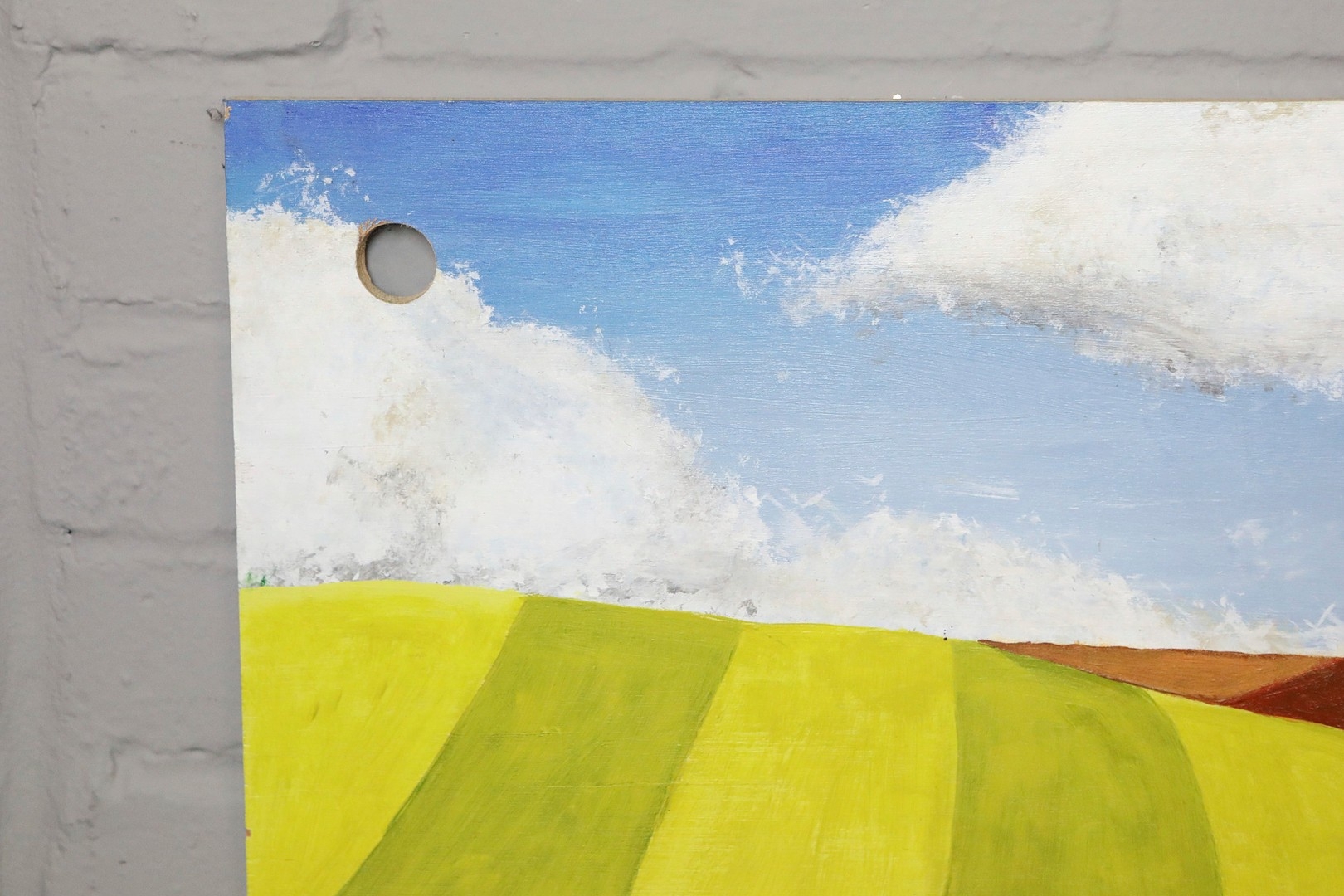 LAURA BURNS (20TH CENTURY BRITISH). NORFOLK LANDSCAPE (2). diptych, mixed media on board, each panel 102x122cm (204x244cm complete). Artist in residence at the Chelsea Flower show.