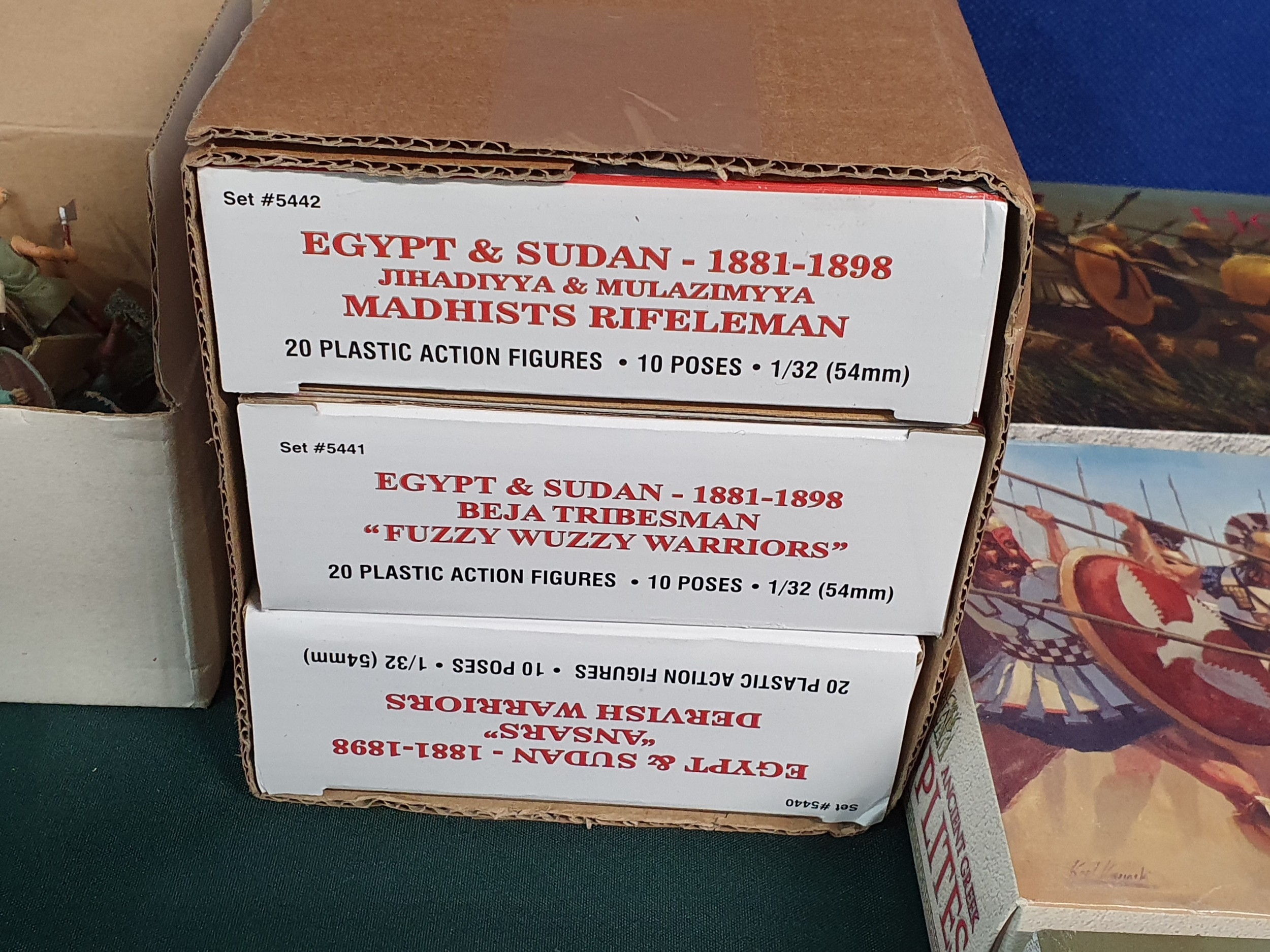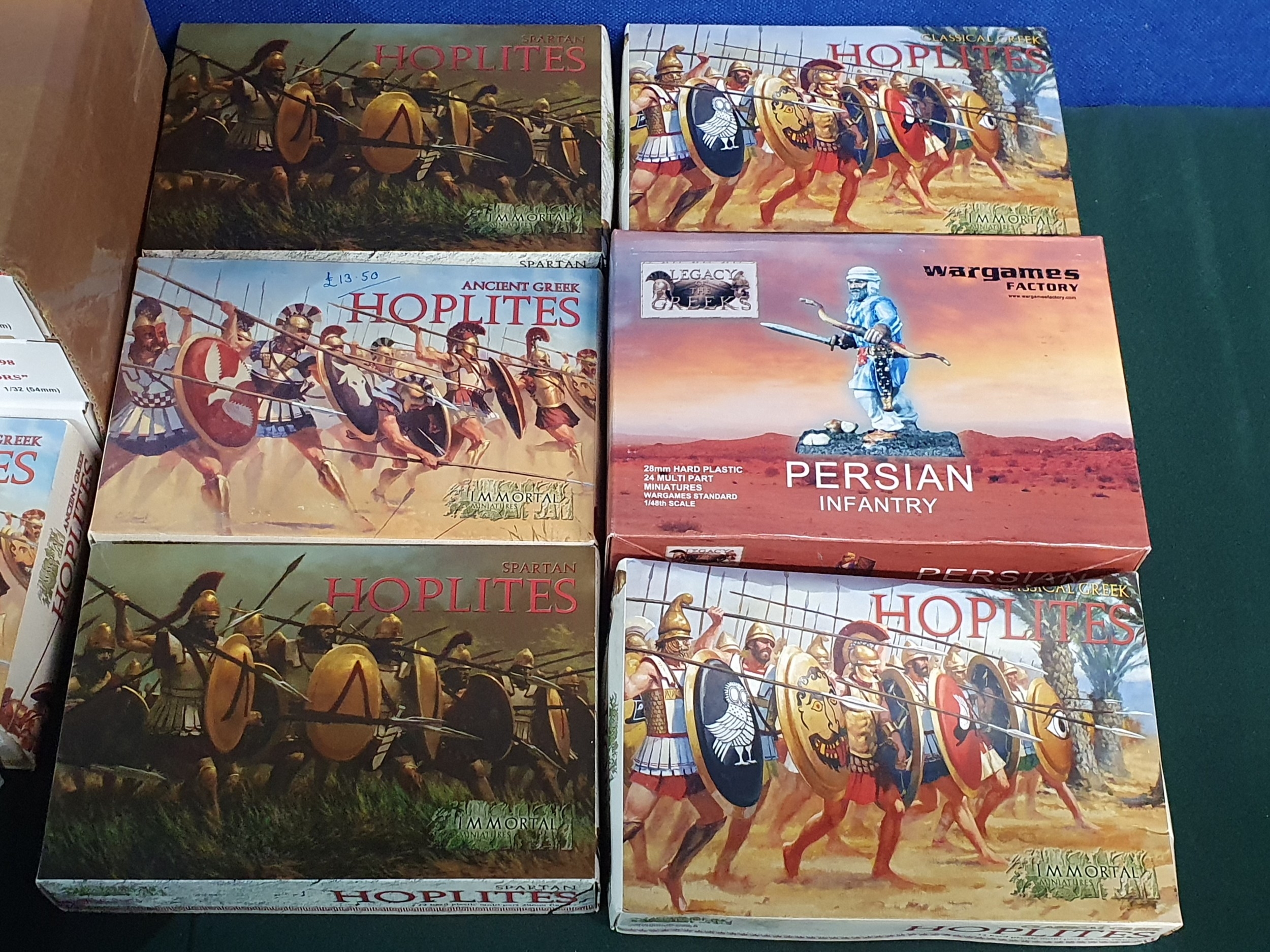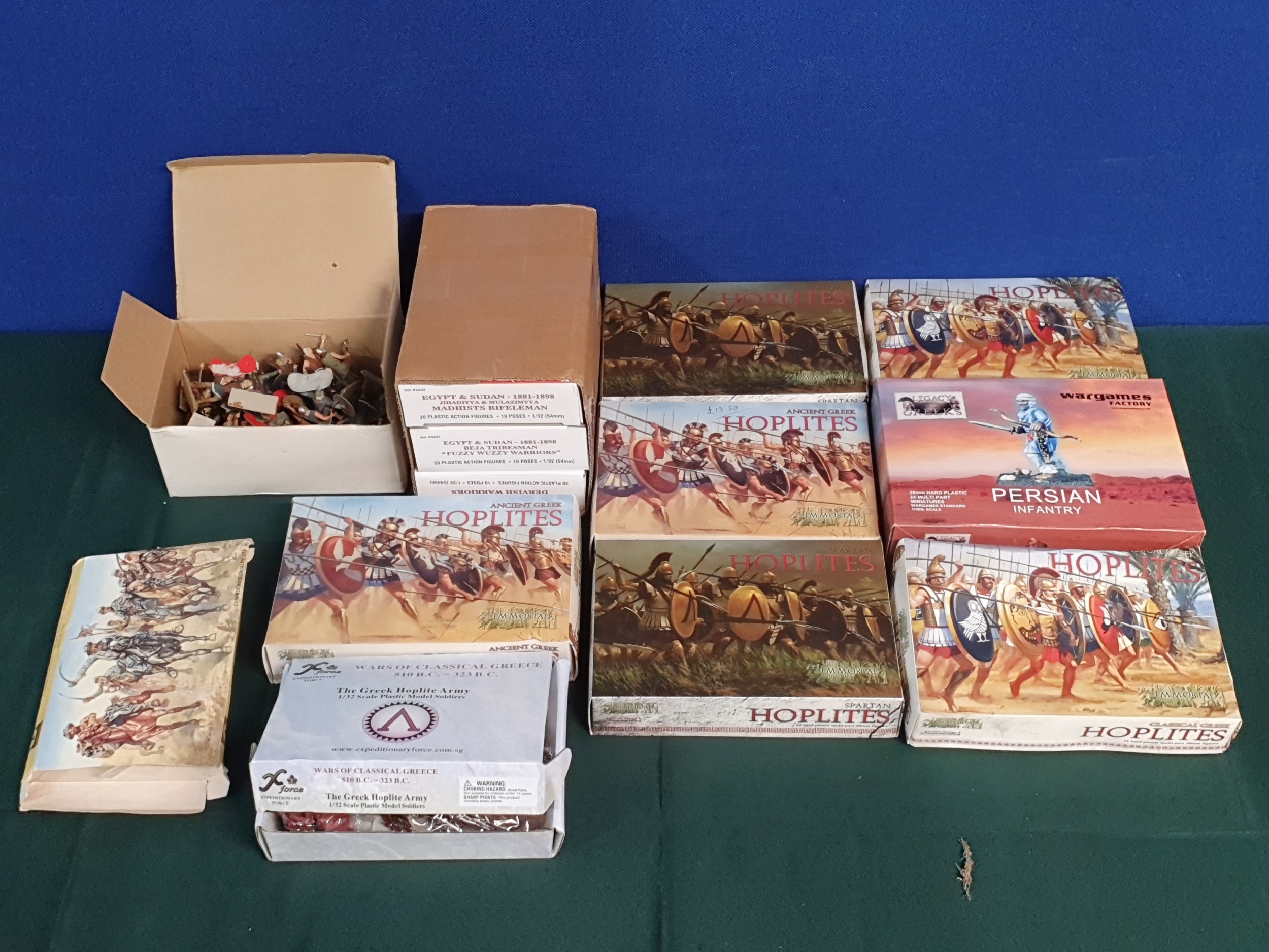 A collection of boxed plastic Wargaming Figures including Wargames Factory Persian Infantry, Immortal Miniatures Hoplites, Armies in Plastic Mahdists Rifleman, etc., some as new, others have been opened and may not be complete