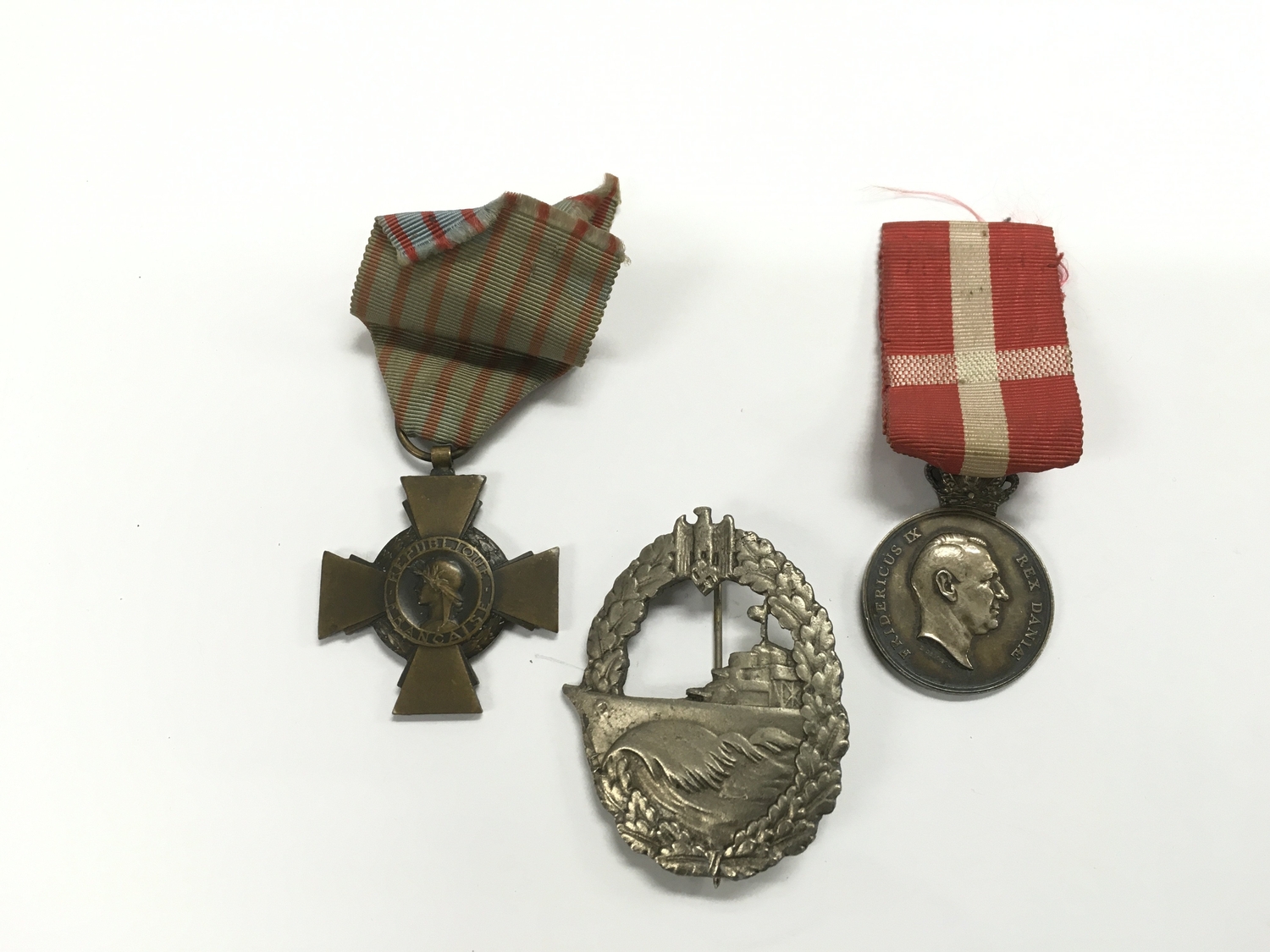 Three medals comprising a Danish example, one French and a Third Reich naval example.