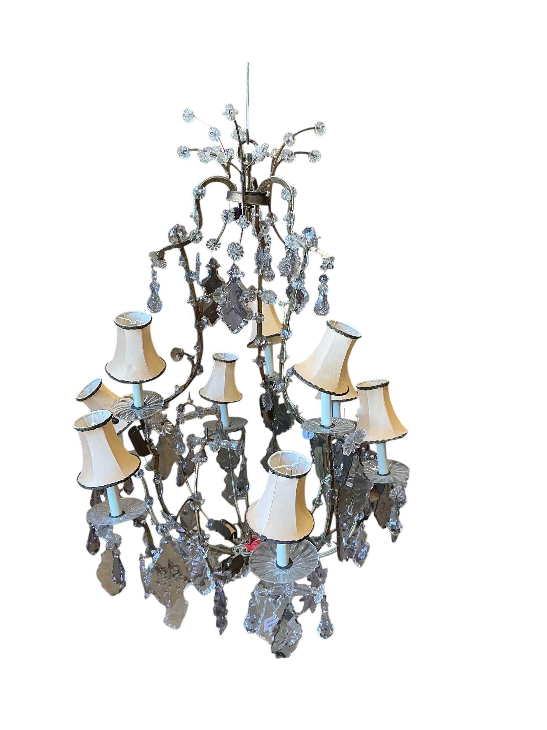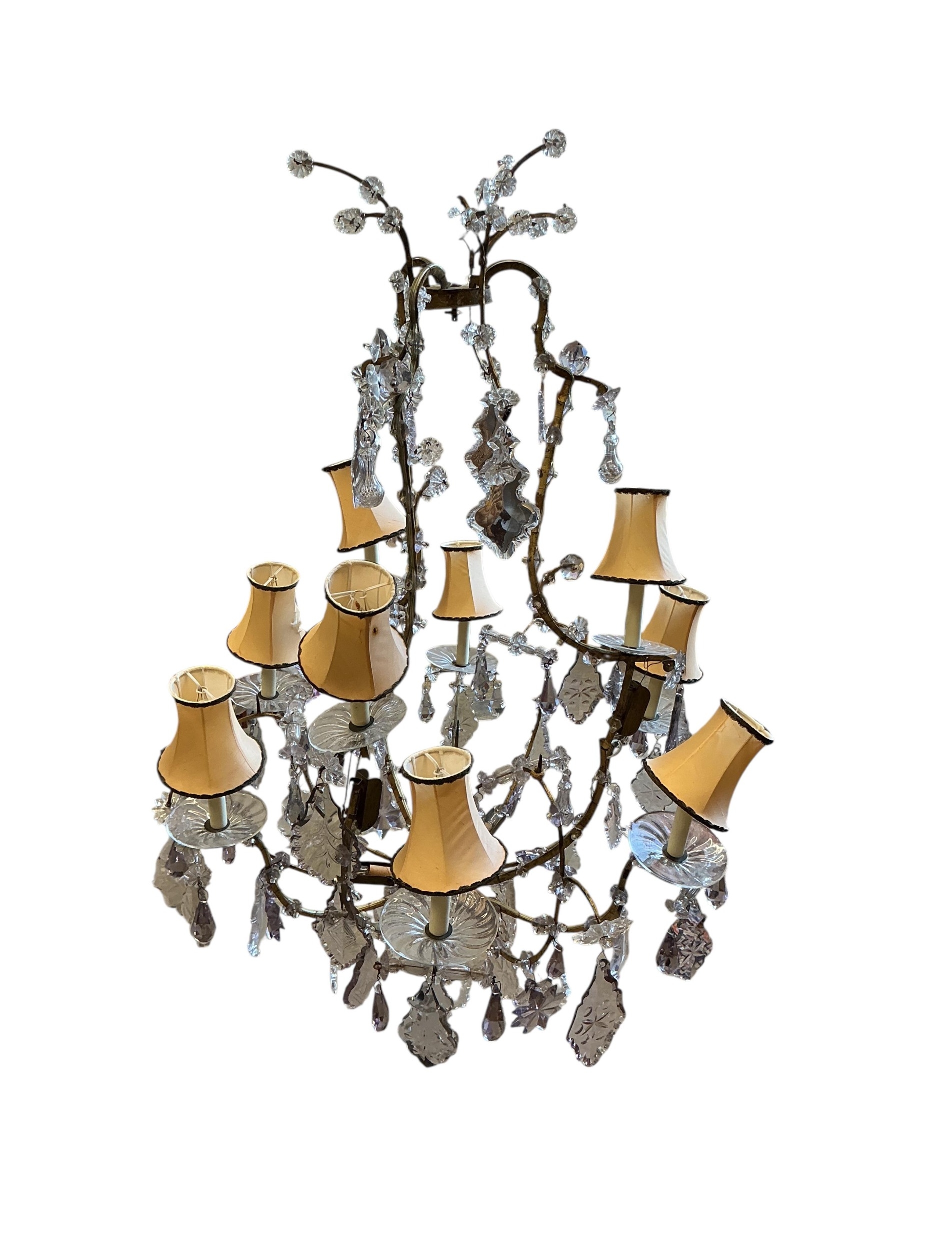 A 19th century French gilt metal and cut glass 12 branch chandelier, converted to electricity, height 108cm