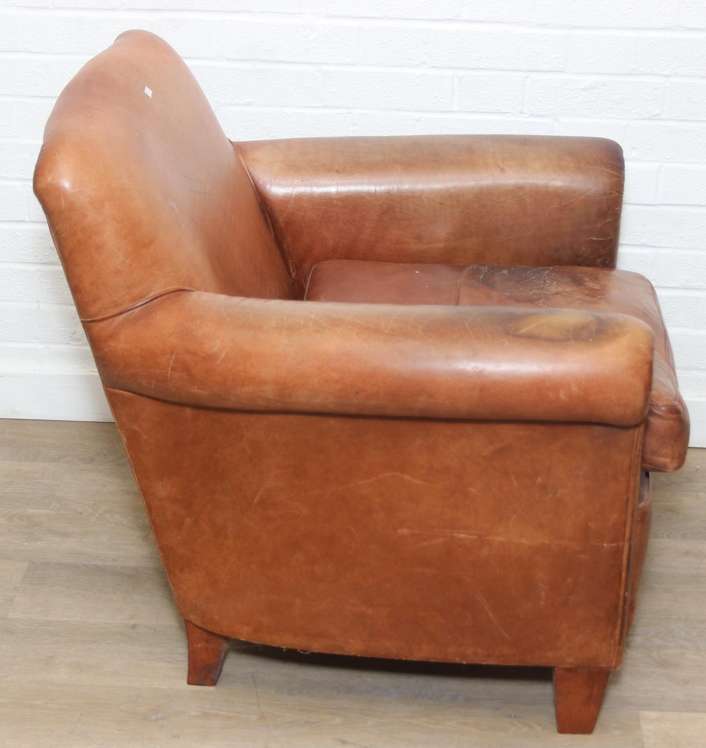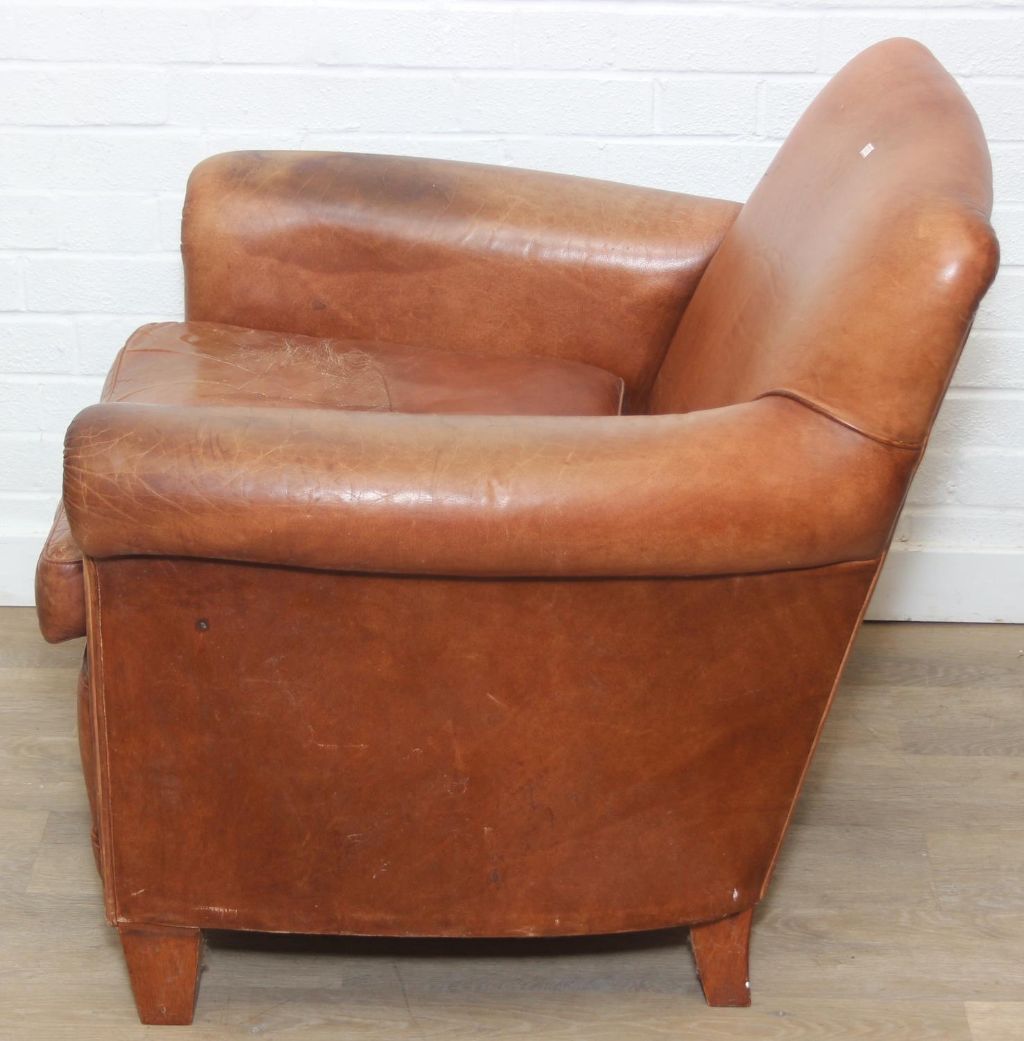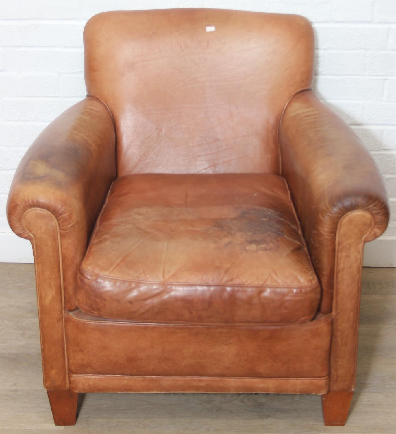 A vintage tan brown leather armchair, 79cm wide x 80cm tall