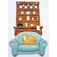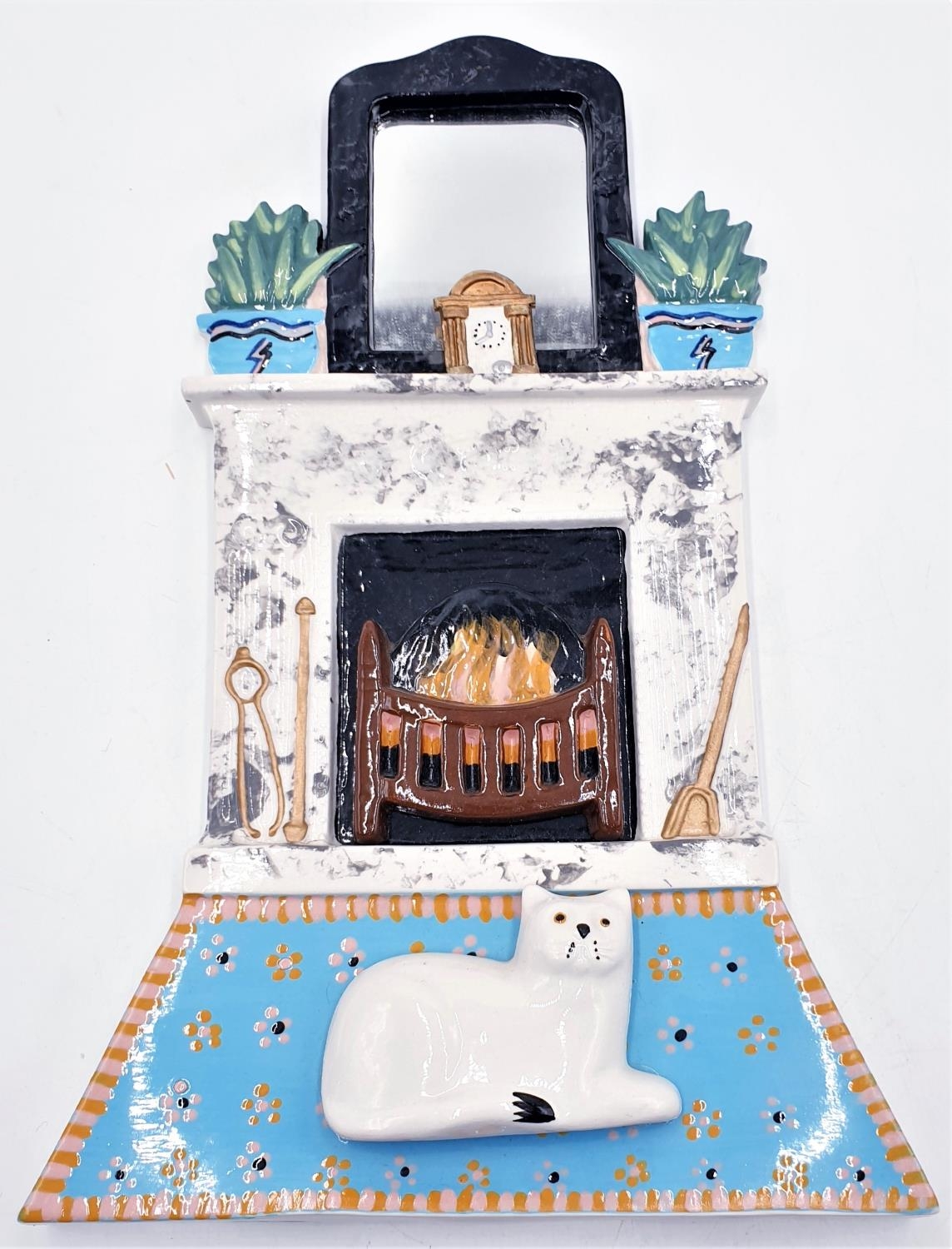 KATZ & Co (Made In Scotland) 37cm x 24cm WALL PLAQUE Featuring A CAT IN FRONT OF FIRE.