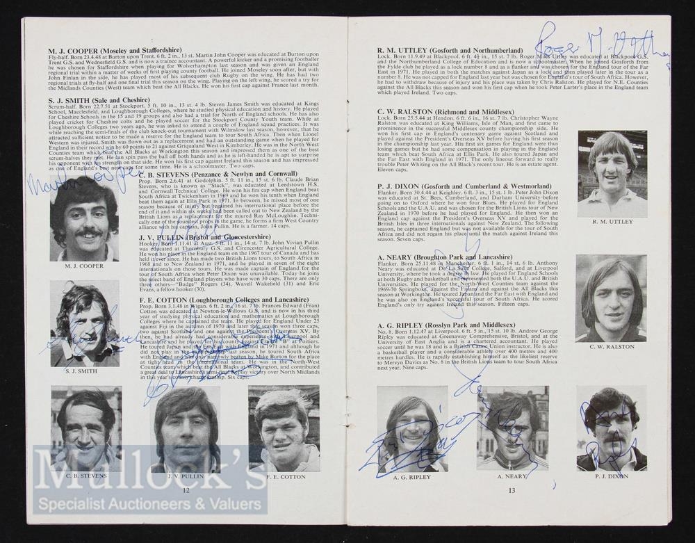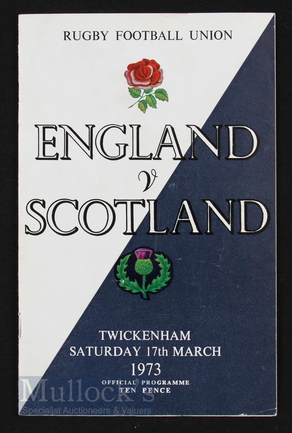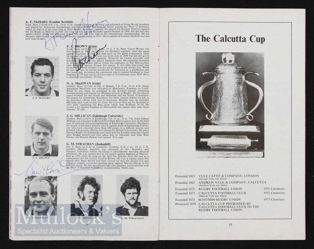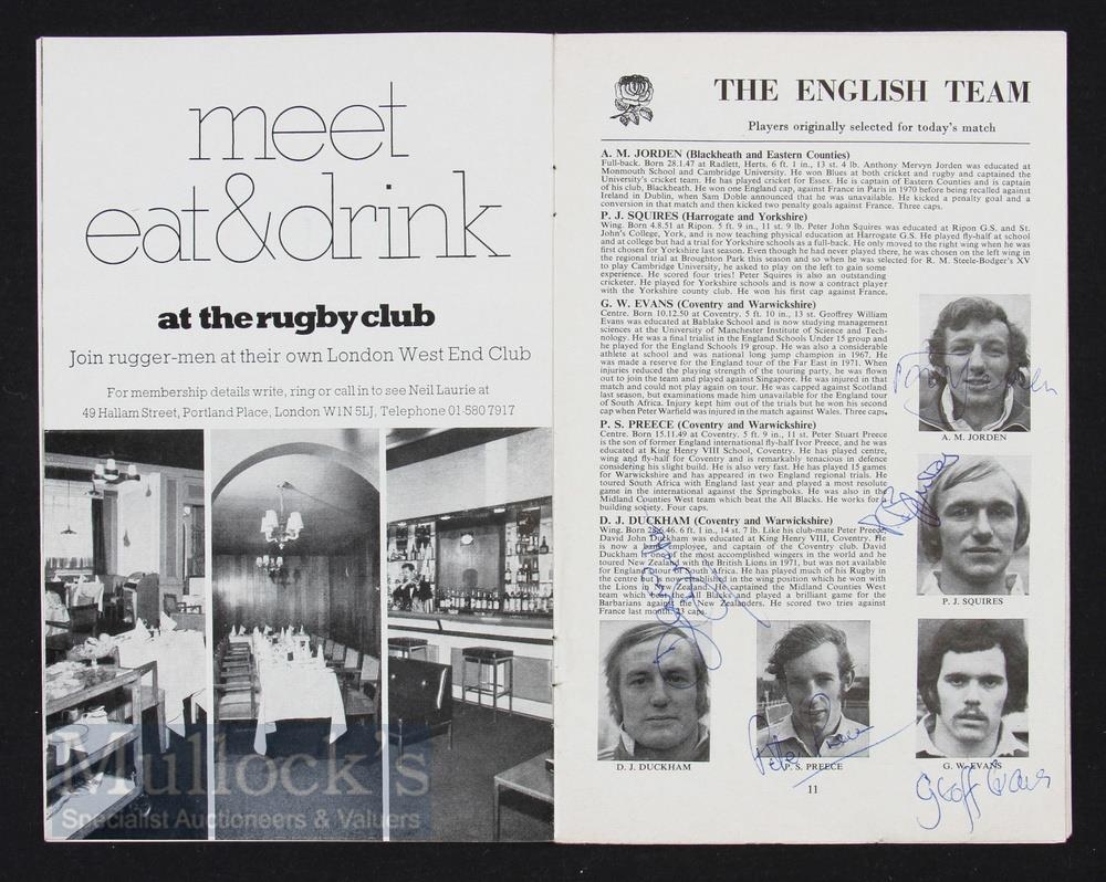 Autographs, 1973 England v Scotland Rugby Teams (23): the item signed by all the English XV and eight Scots, packed with famous names. VG