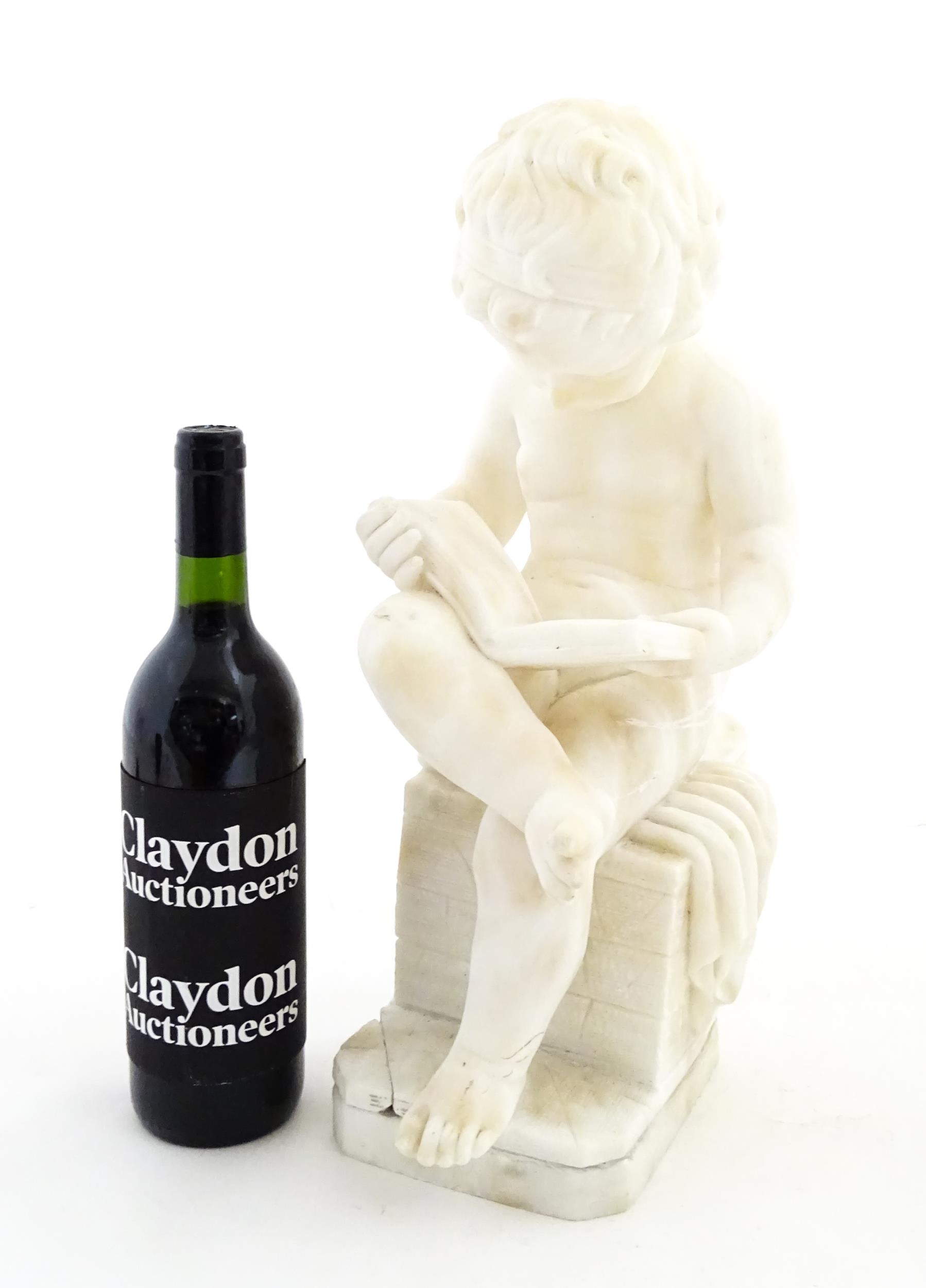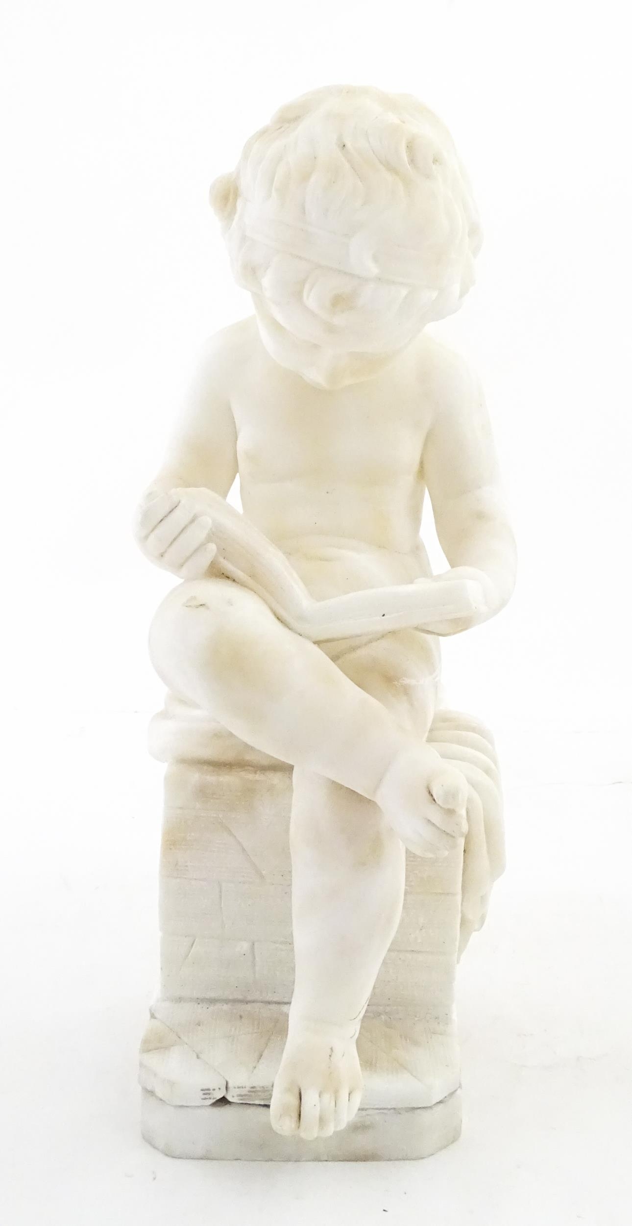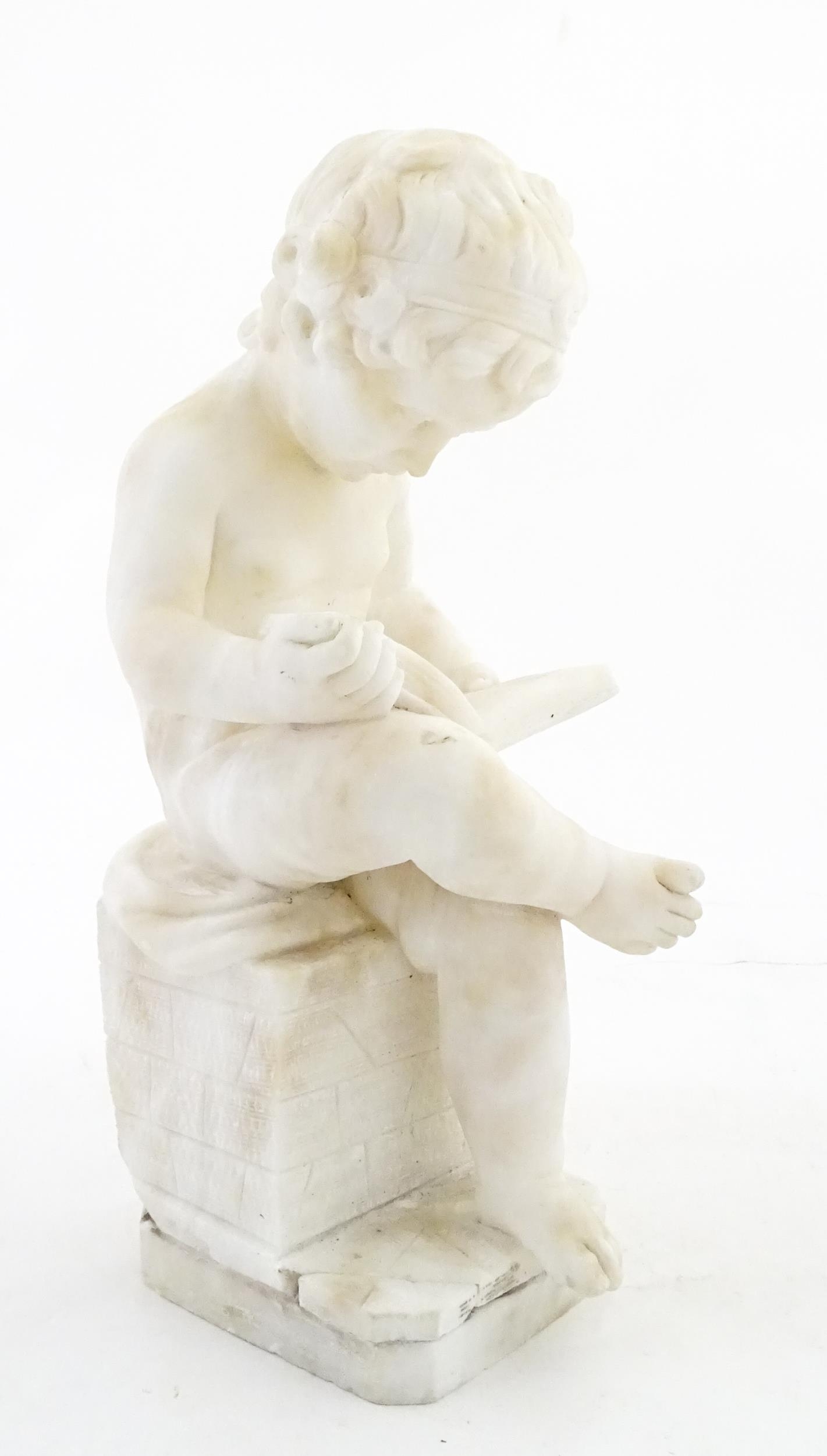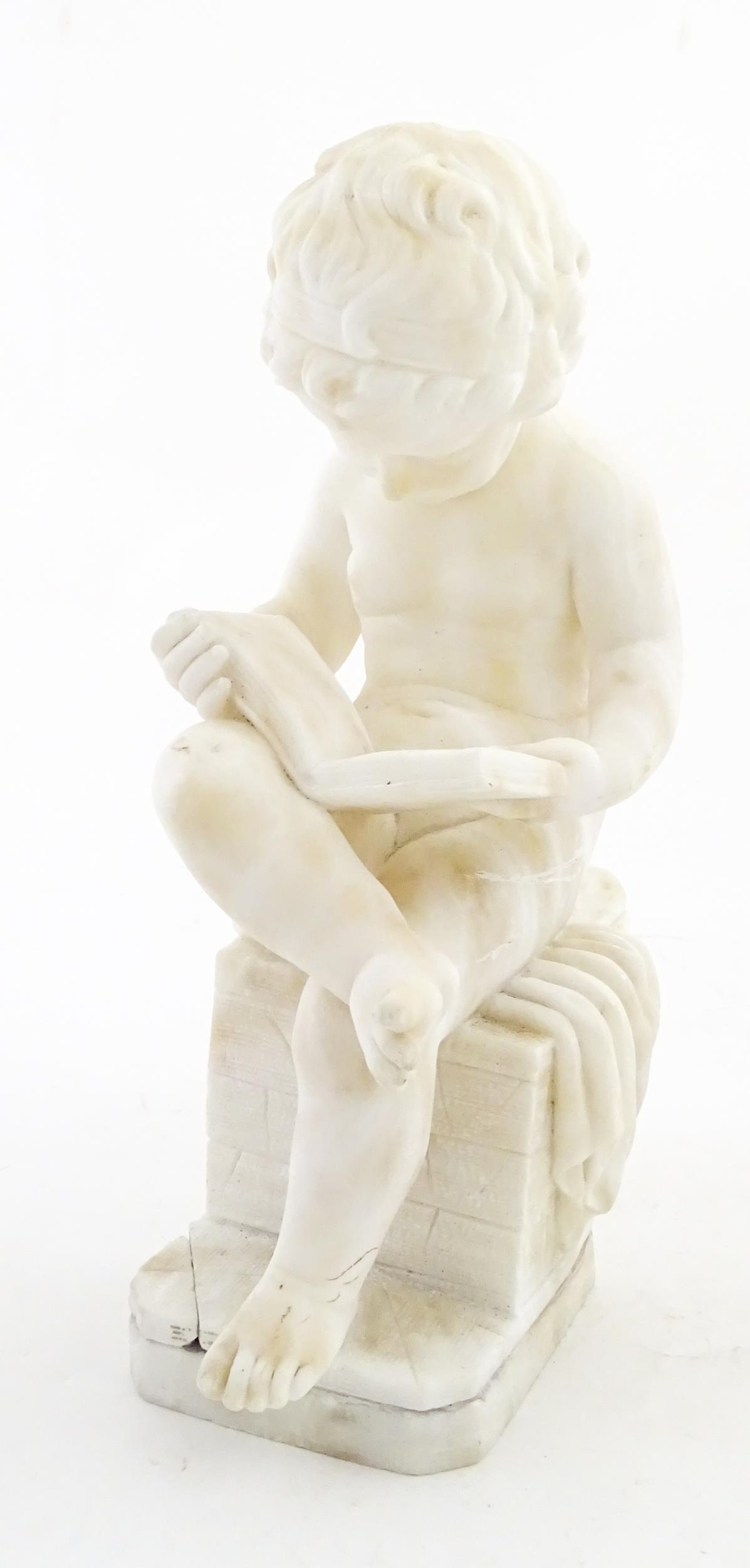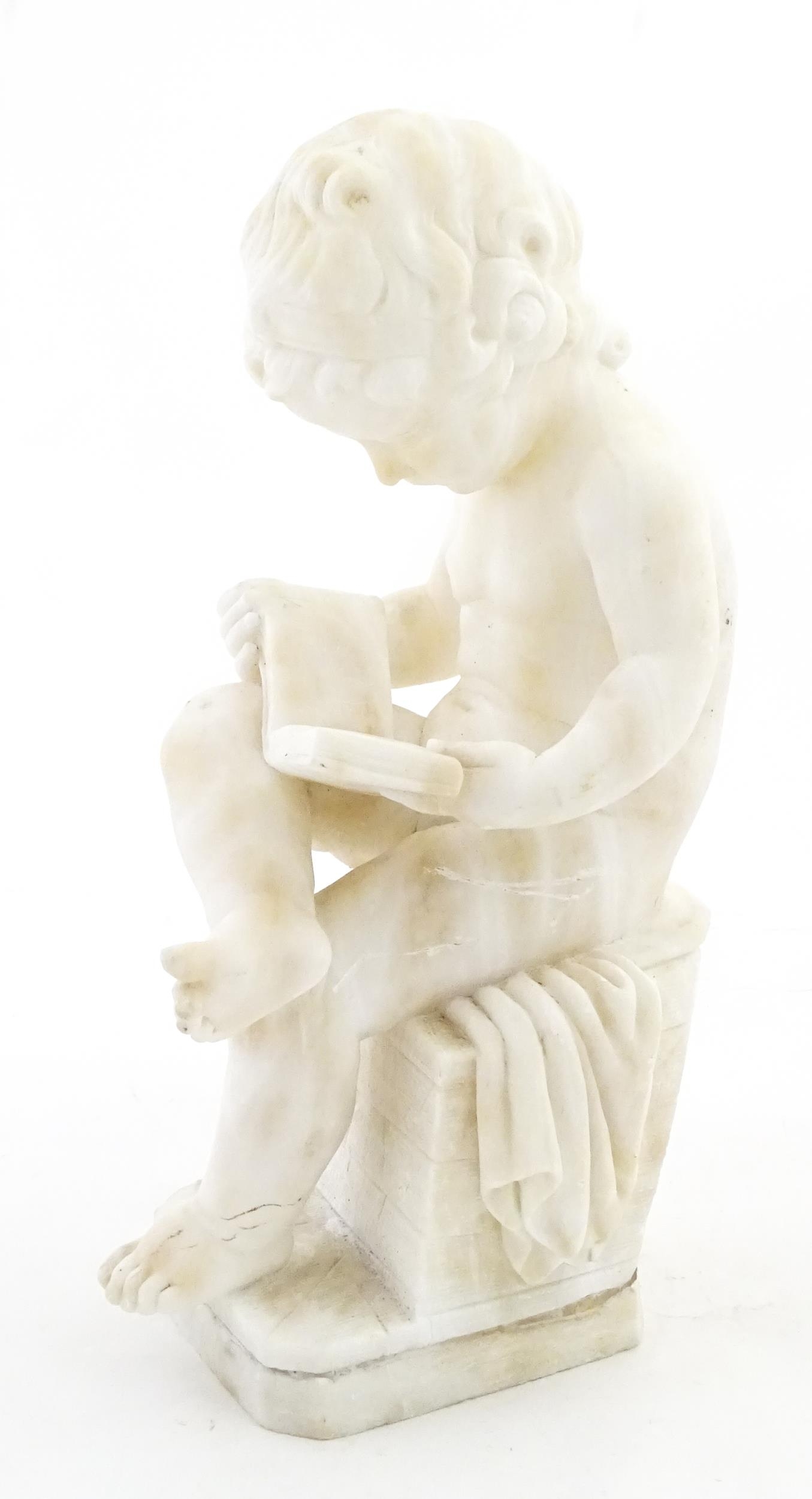 An Italian alabaster sculpture modelled as a seated child reading a book, after C. Ghilli. Approx. 17" high