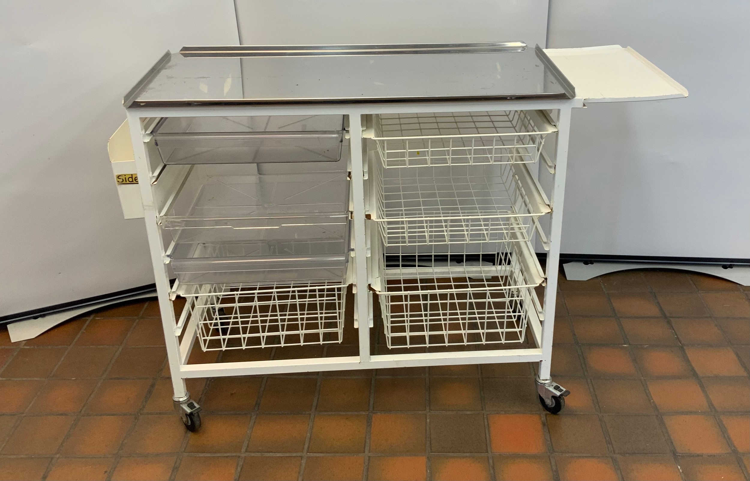 MEDICAL TROLLEY WITH STORAGE TRAYS, SS TOP
